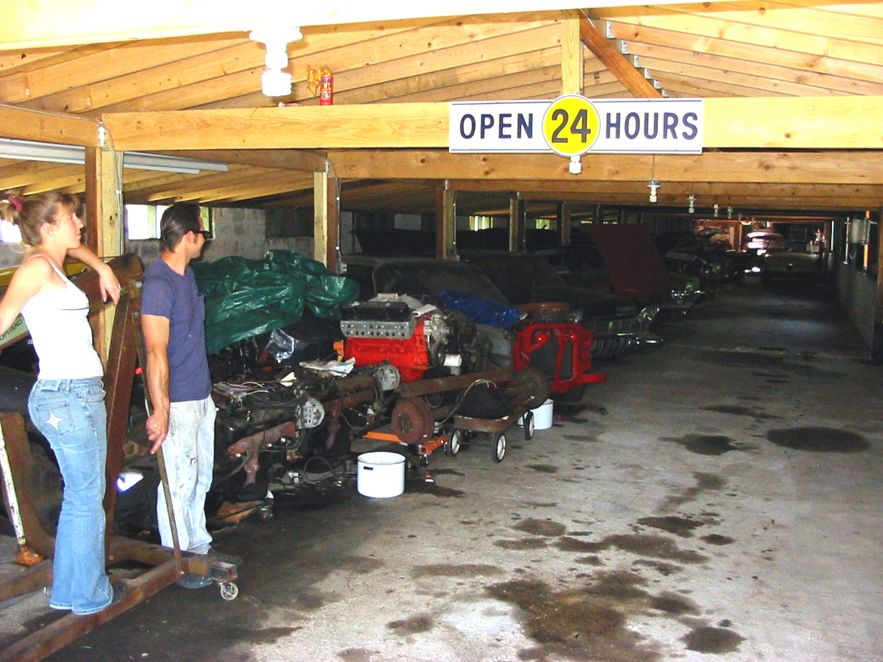 Jim is a true Renaissance man. Coming from a Biomedical Engineering background – a story in itself – Jim does it all, from welding to painting to engine rebuilds to interior work to tranny rebuilds. But it doesn’t just stop with cars. Jim recently purchased a former chicken ranch in South Jersey, and is in the process of redoing all the major systems in the house himself. He cleared the land of scrub timber – the land you see the 4 Plymouths parked on (below) – and restored the chicken house as a 275 foot long garage for his 40+ cars.