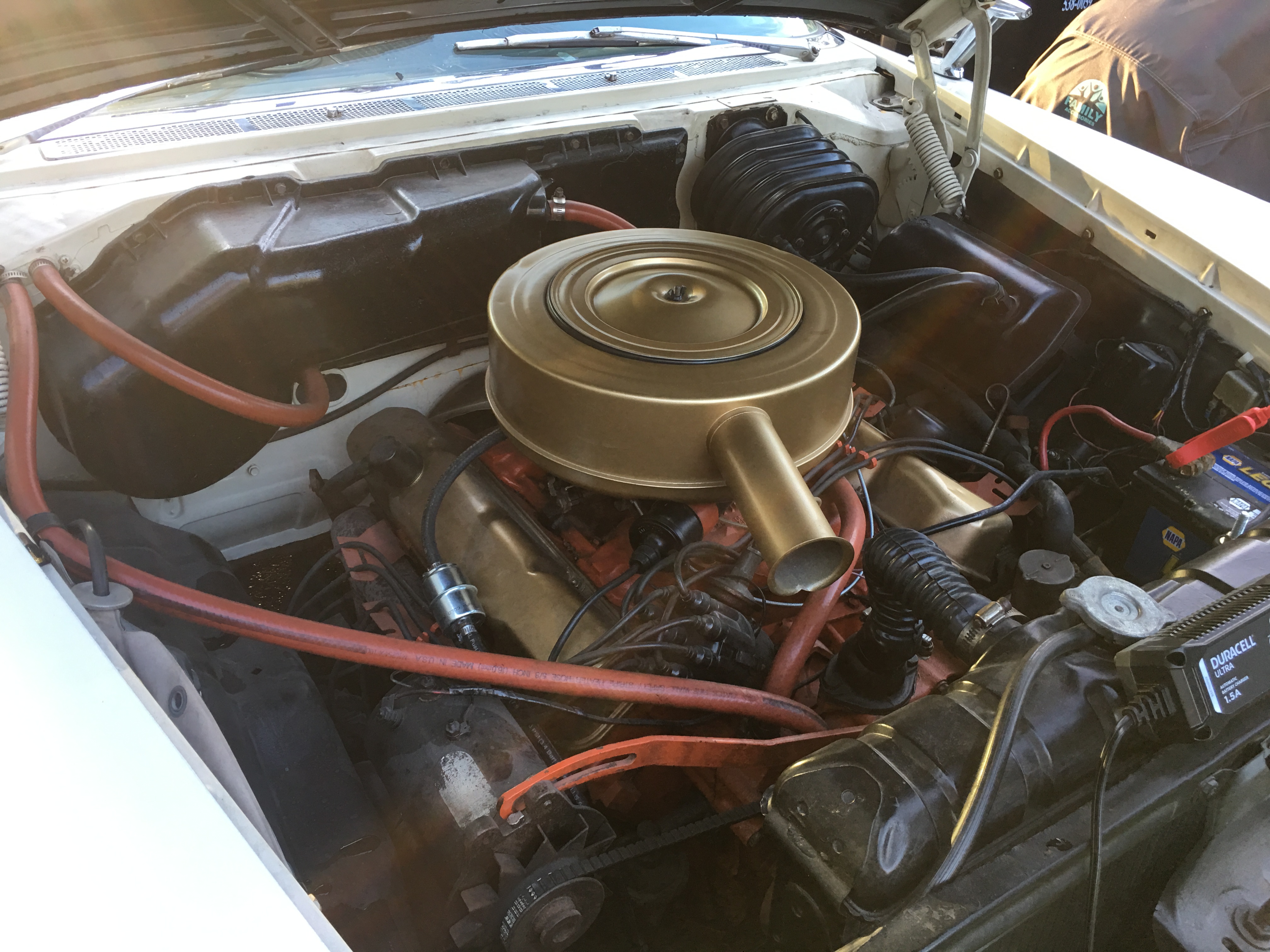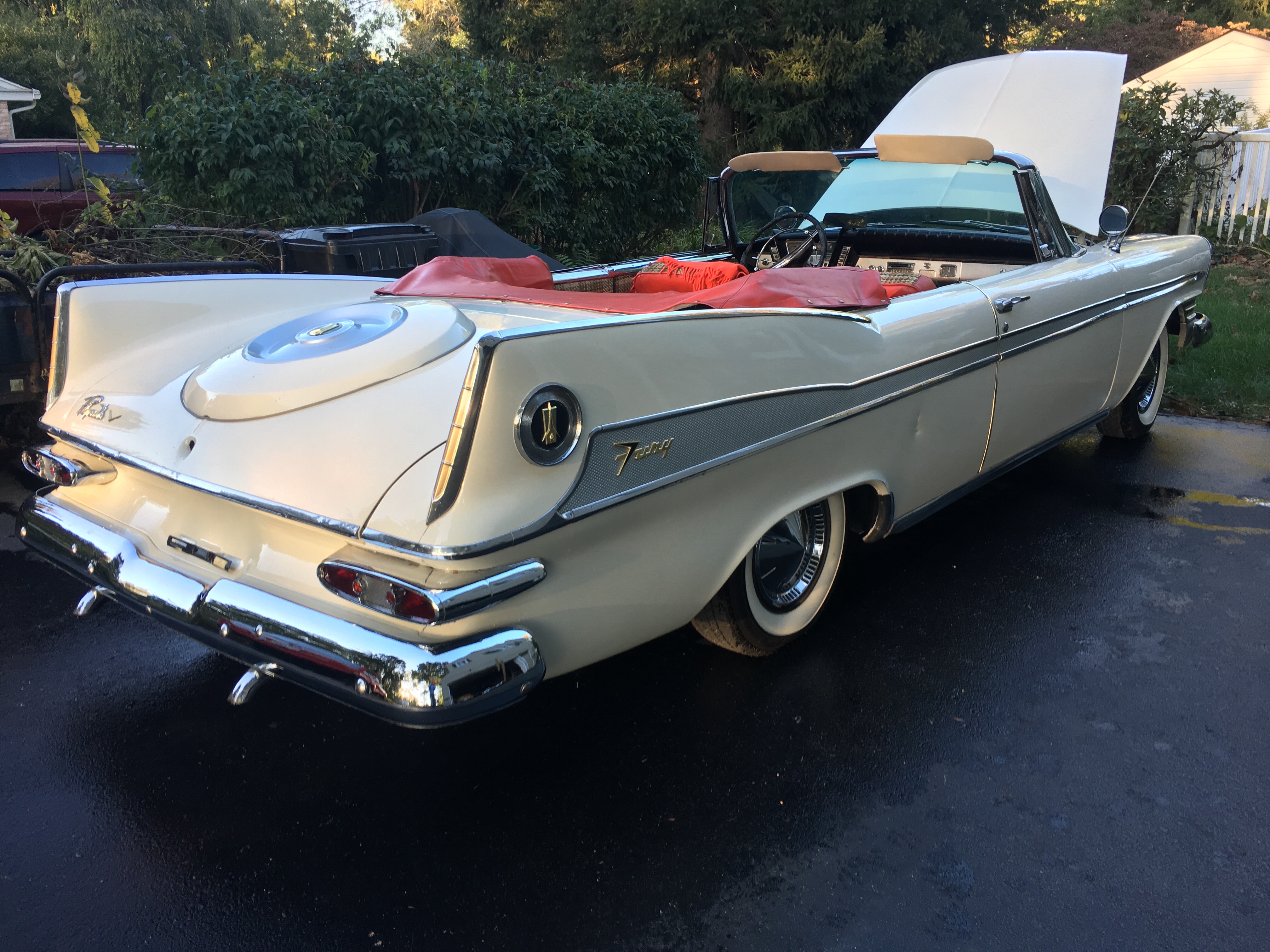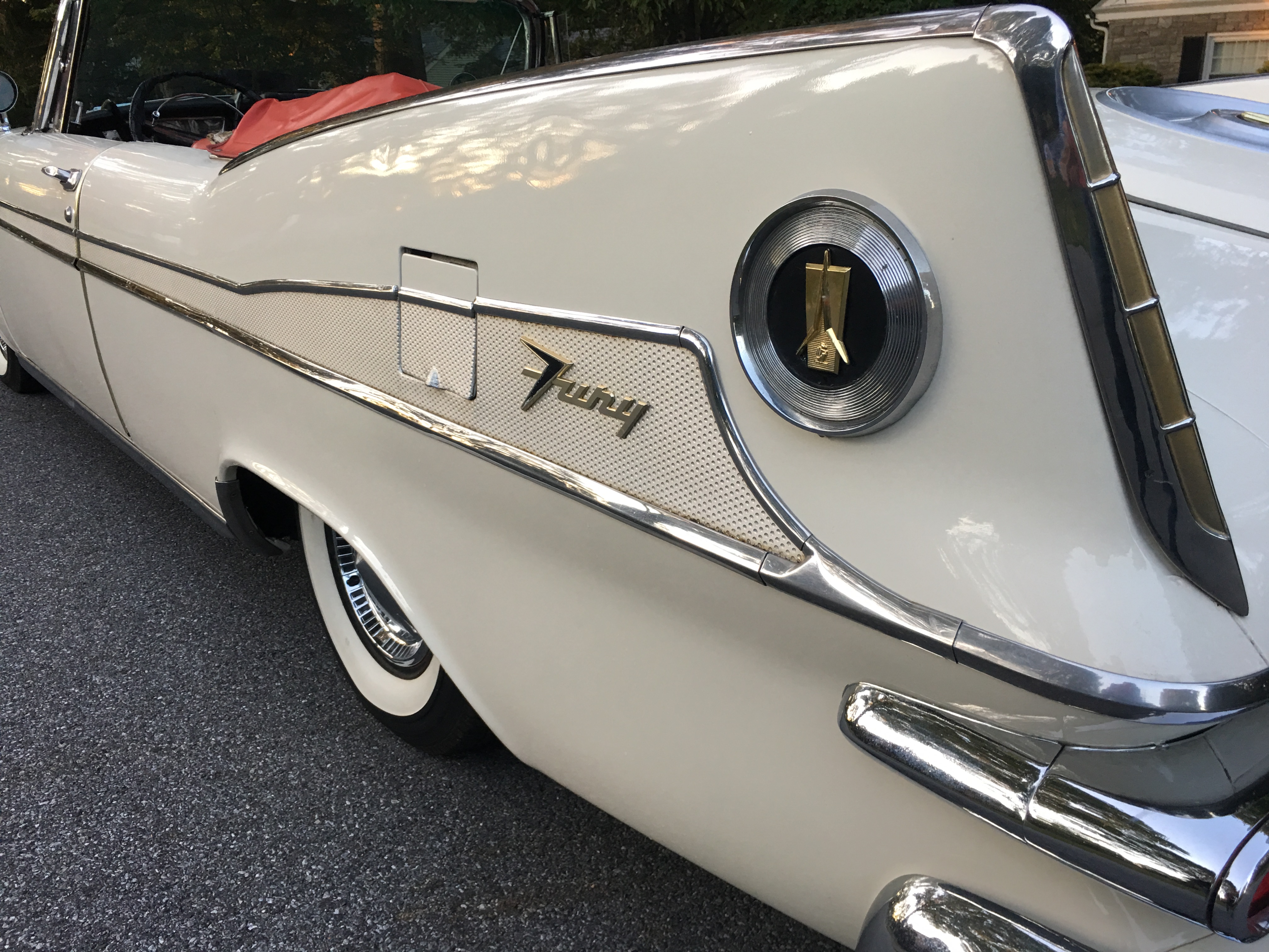 Today allowed some time to really look the new addition over closely while doing some detail work. After recharging the battery overnight and filling the tank with ethanol free gas, she fired right up after adding a little gas to the carb. A few coolant leaks developed pretty quickly, most of which were loose hose clamps. Another may be a freeze plug, although it stopped leaking after driving. I took the car to the notary to get some plates and was promptly surrounded in the parking lot by several gents curious the year while drooling over an Exner masterpiece. There was one fellow that wanted to buy the car as I was putting the plates on it!