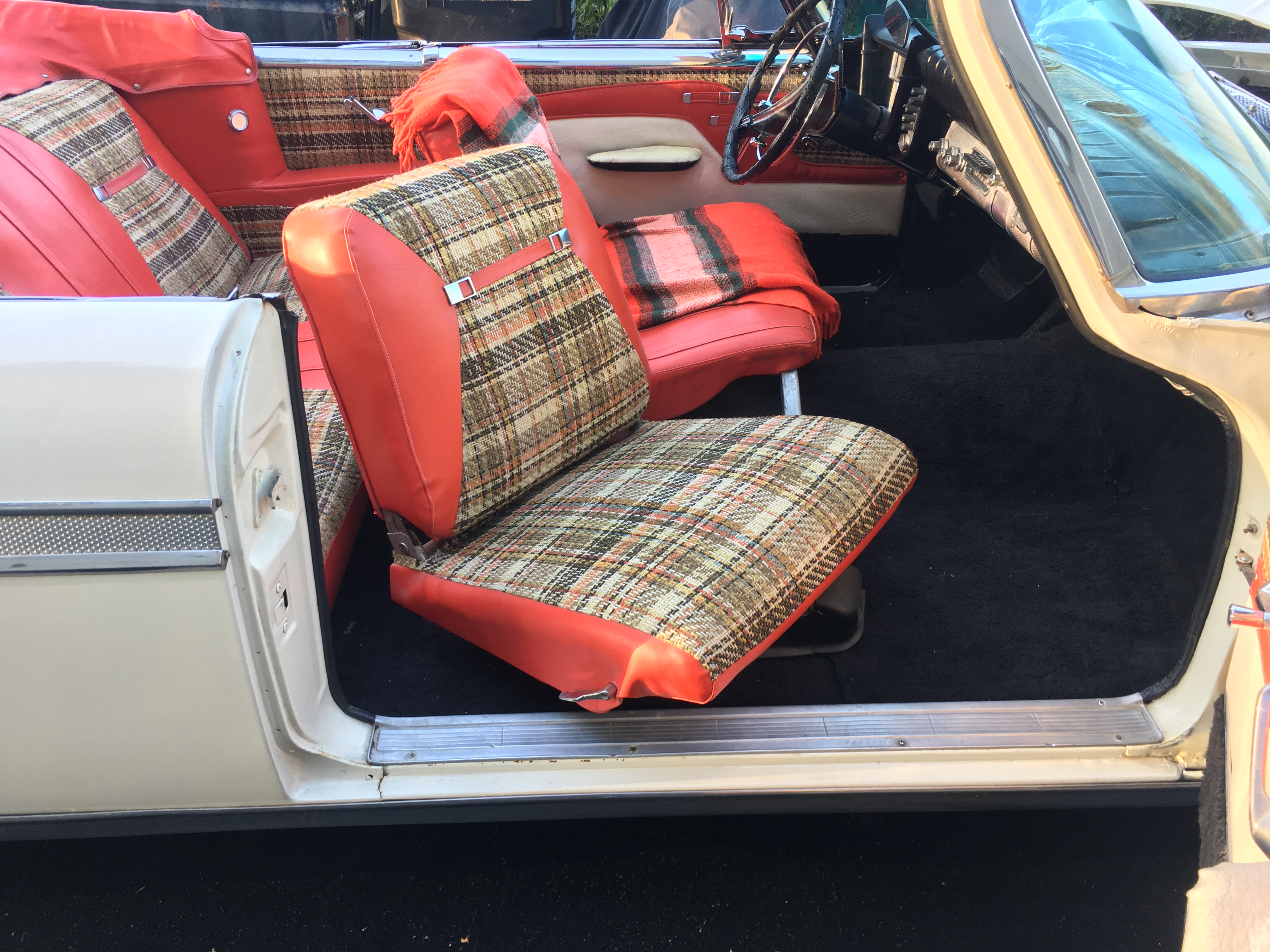 Plenty to do on her but can drive as is while I’m working on it. The plaid has got to go. Need a trunk lock, some issues with horns and turn signals. But a real issue is I can’t get the top to go back up!!! Any suggestions?