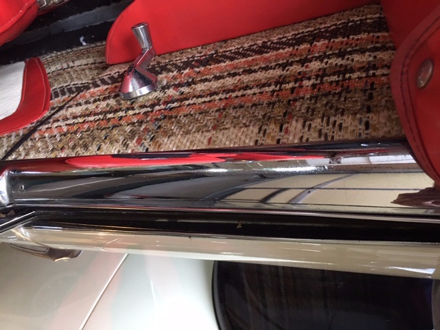 A closer inspection under the sporty '59 revealed previous cancer repairs, some yet to be repaired, as well as missing frame to body mounts. Curiously the worst of the rust is on the drivers side. I’m counting on some input from Matt and Ron for proper mounts before enlisting a body shop. I’ve got to get this repaired before too must driving. Frame is super solid. Body has been massaged in places including the trunk so it’s strange the body mounts weren’t dealt with at the same time. The driver quality paint cleaned up very nicely, but I am most pleased with several of the chrome pieces. The window frames and bumpers must have been rechromed at some point as they are in incredible shape. The inside window sill chrome has not been rechromed but polished very nicely. Much of the body aluminum has small dents as is not unusual for a 60 year old car, the trunk piece is in the worse shape and would be best to replace…if I can find one!