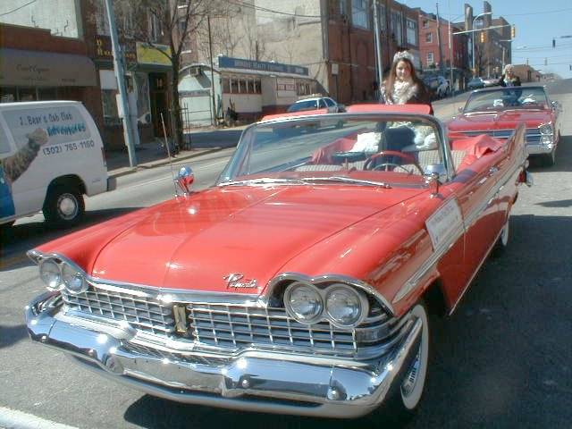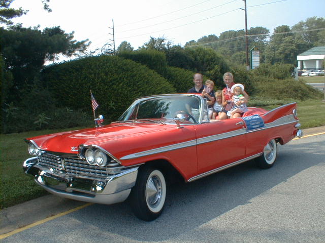 Kathy says, “As you can see, we are ‘used’ frequently for parades, and the fin car is always a big hit. We’ve been in the Miss America parade down the boardwalk for the last 7 years or so (except for 2001 of course, when the parade was cancelled) – one of the shots was taken in the lot as we awaited dusk and the start of the parade.”