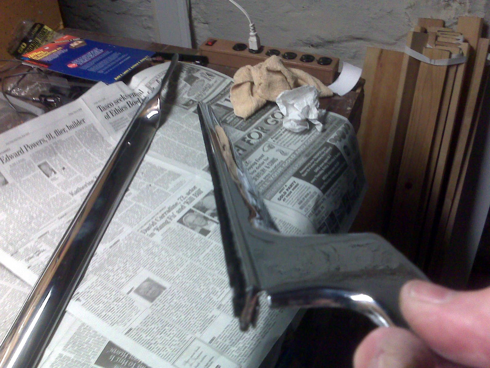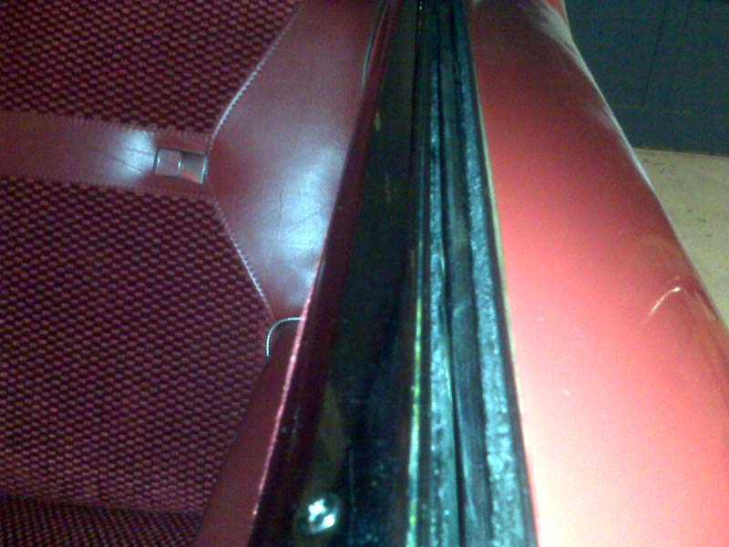 Before I put the inner chrome moldings in the back on, it occurred to me I should replace the outer belt weatherstripping – there will be more room for the glass to flop around, and make room for dropping the strip into the channel before snapping it in.
