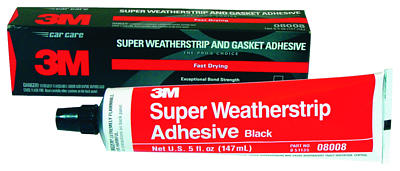 3M ™ Super Weatherstrip Adhesive is a strong, flexible, rubbery adhesive that can withstand vibration, oil, grease, and extreme temperature variations. It can be used to bond weatherstripping to car doors, trunks, T-tops, moon roofs and sun roofs. It is an excellent adhesive for holding paper, cork, or rubber gaskets in place during installation. It provides the strength and rapid setting