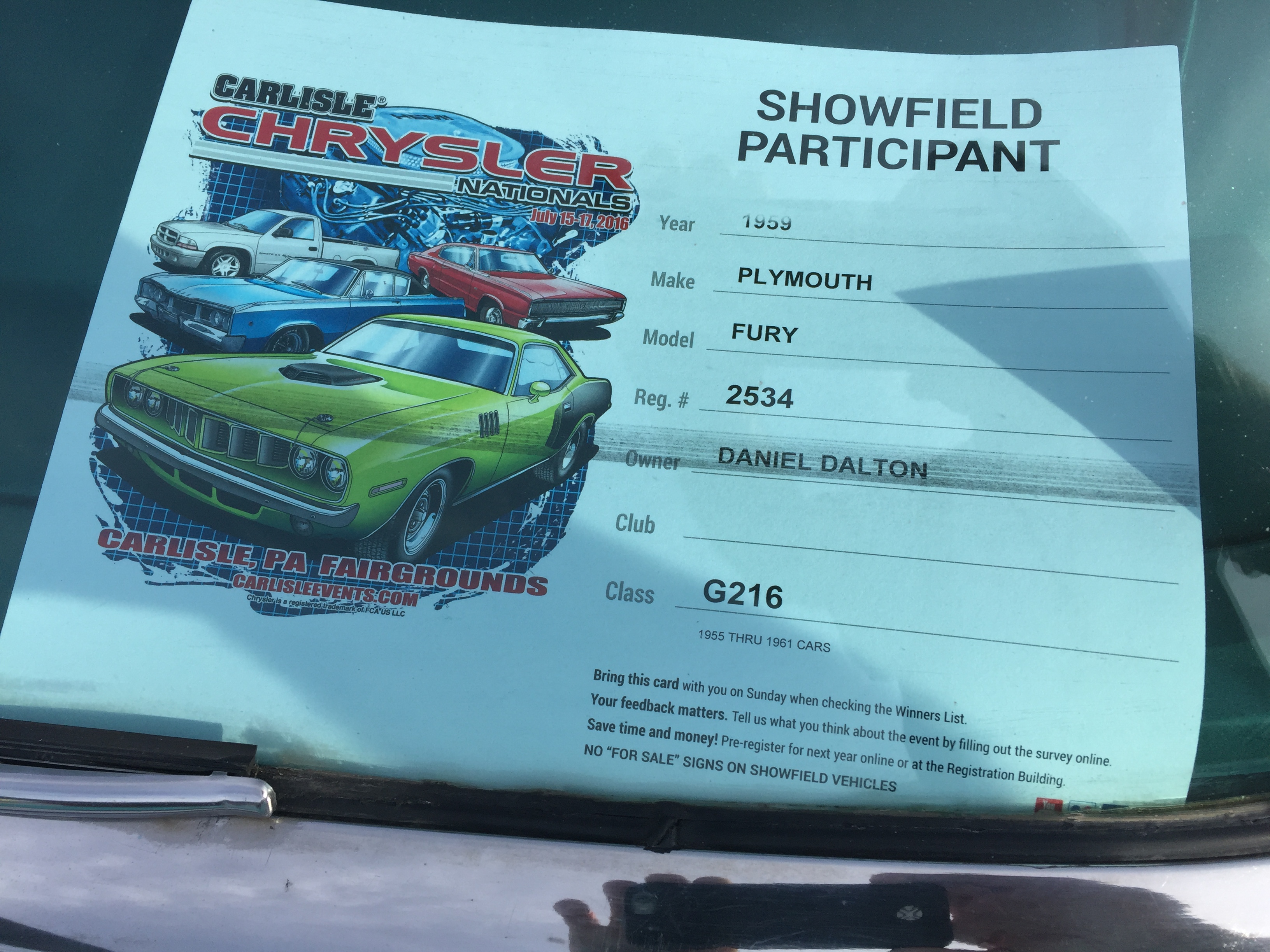 Here’s my pix! Matthew was clever enough to rent a MoPar, so we were able to register and park on the showfield. Ain’t it a looker!