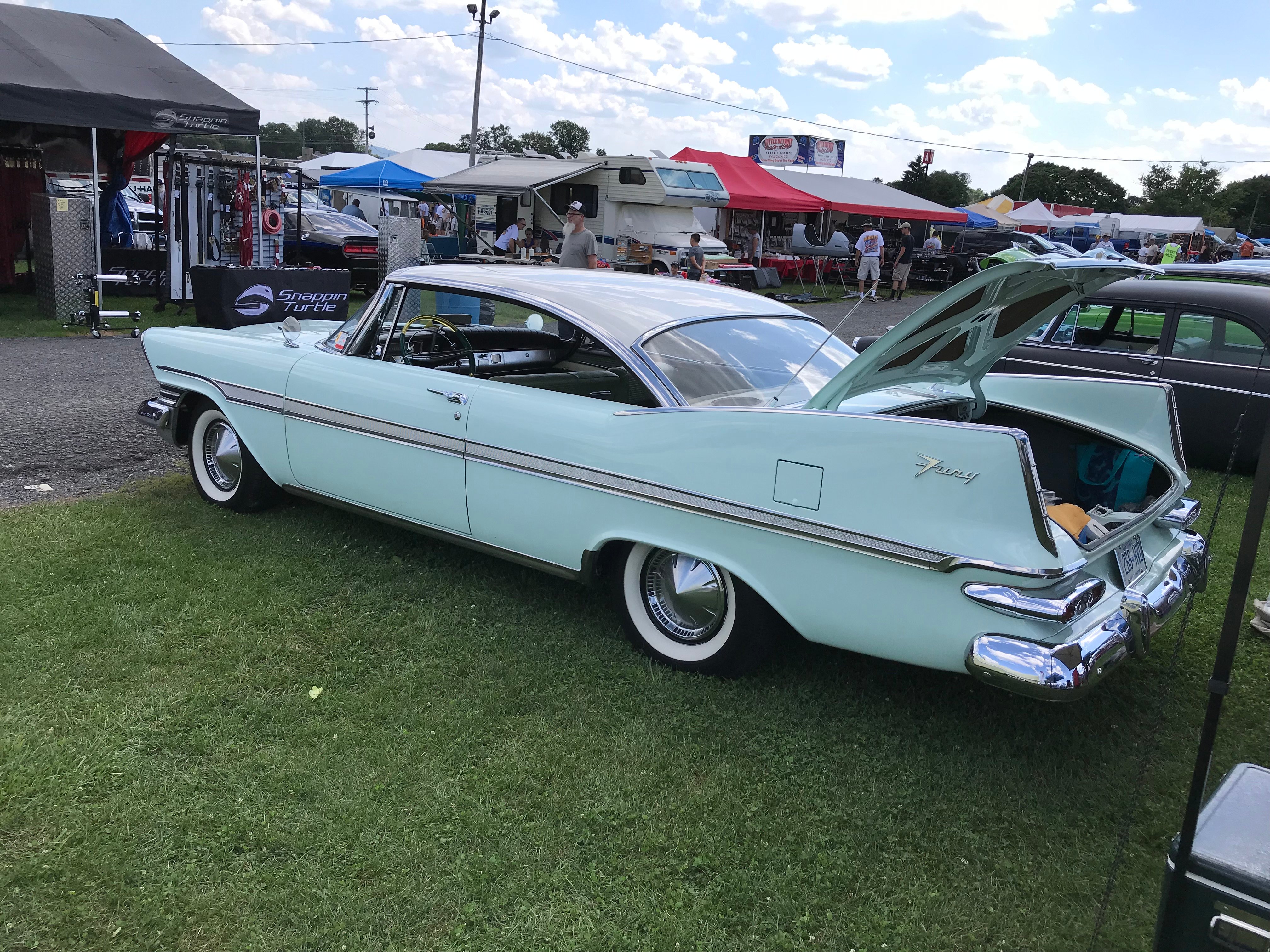 Met up with Dieter Bauer and his gorgeous Fury. Then, the heavens opened and it rained like hell for a good 45 minutes. Dick’s Belvy was sidelined at the Motel 6 with a bad fuel pump, but he found one and we picked it up - and Bertha Irene is ready for her debut tomorrow at Carlisle!