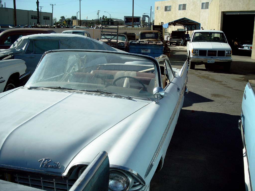 “The 59 is pretty solid with a little rust thru on the lower quarters. It came with the 318 power pack, powerflite, power swivel seat and power steering. Planned upgrades are: Torqueflite, power brakes, rear antennas, remote outside mirror and AP-1 underdash record player (I know it didn’t come out until '60 but you could take your car in & have the dealer install it so I think it’s legitimate). It was built at the Newark plant & was originally white. I’m going to paint it the Bronze Metallic color that was available that year. White just isn’t dramatic enough for a car of this stunning beauty. Getting the major body work done now. Will eventually rotisserie the body and do a frame off, complete restoration.”