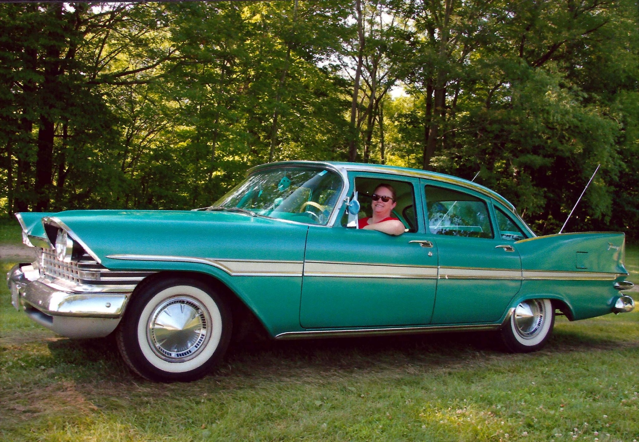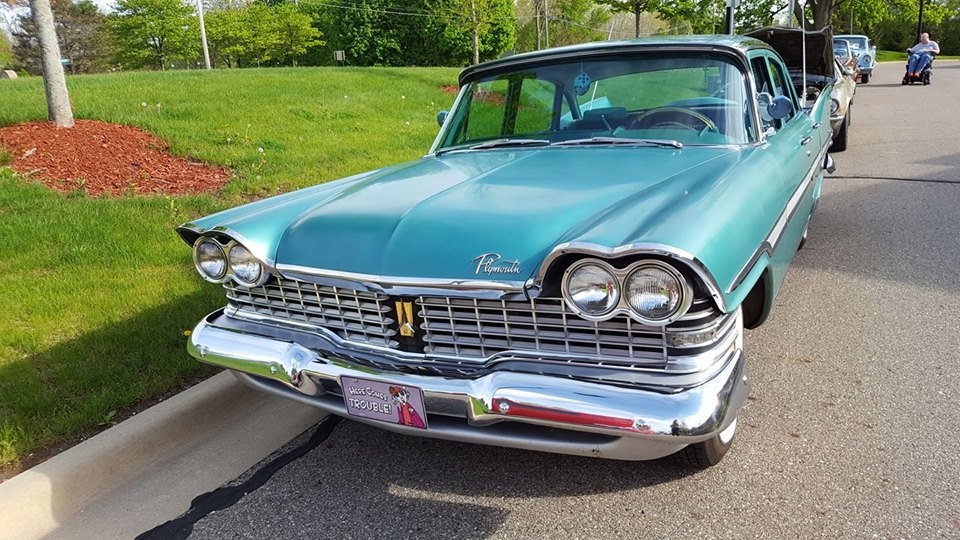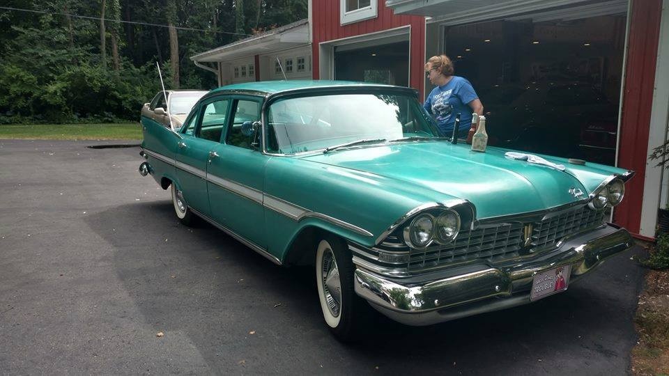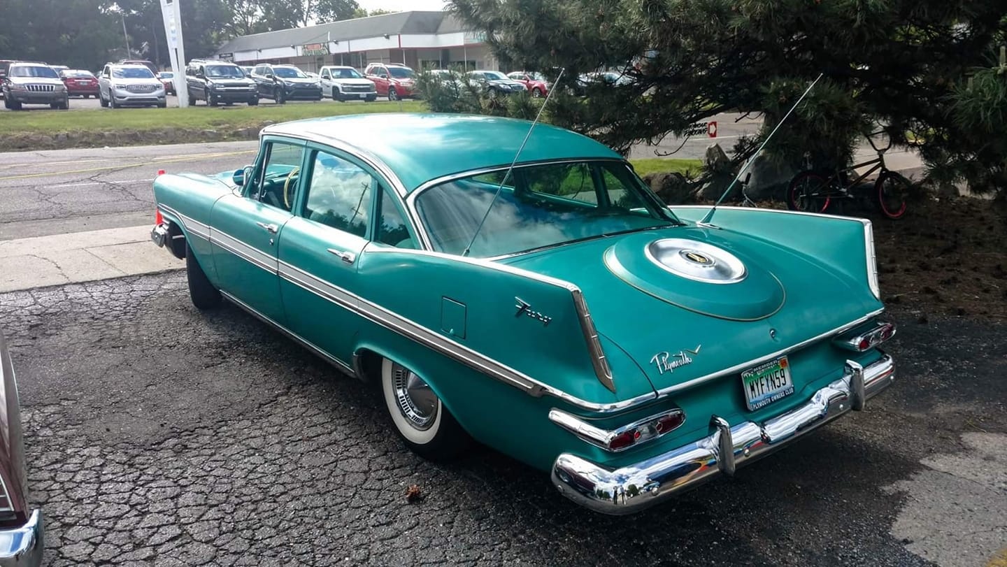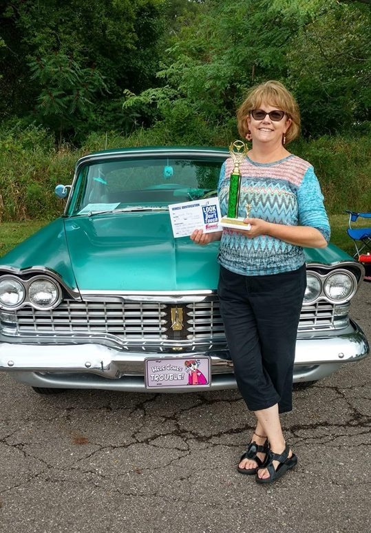 “I’ve loved anything Mid-century”, Claudia writes, “especially cars with fins, all my life, and I’ve always wanted a late ‘50s MOPAR. In 2017, I finally decided I wasn’t getting any younger, and I checked that item off my bucket list. ‘Mean Green Maxine’ is a 1959 Plymouth Fury four door that I found on Ebay Motors. The car came out of Littitz, Pennsylvania. The previous owner had passed away a number of years ago, leaving a large farm with many outbuildings. When the property changed hands, the new owners discovered a collection of cars in one of the barns, including my Plymouth. When I found the car, it was listed for sale at a used car lot in Strasburg, PA. I purchased it having only seen photos (lots and lots of them, luckily), and jumping in essentially knowing nothing, and just trusting my gut that I was making the right move. I wasn’t wrong.”