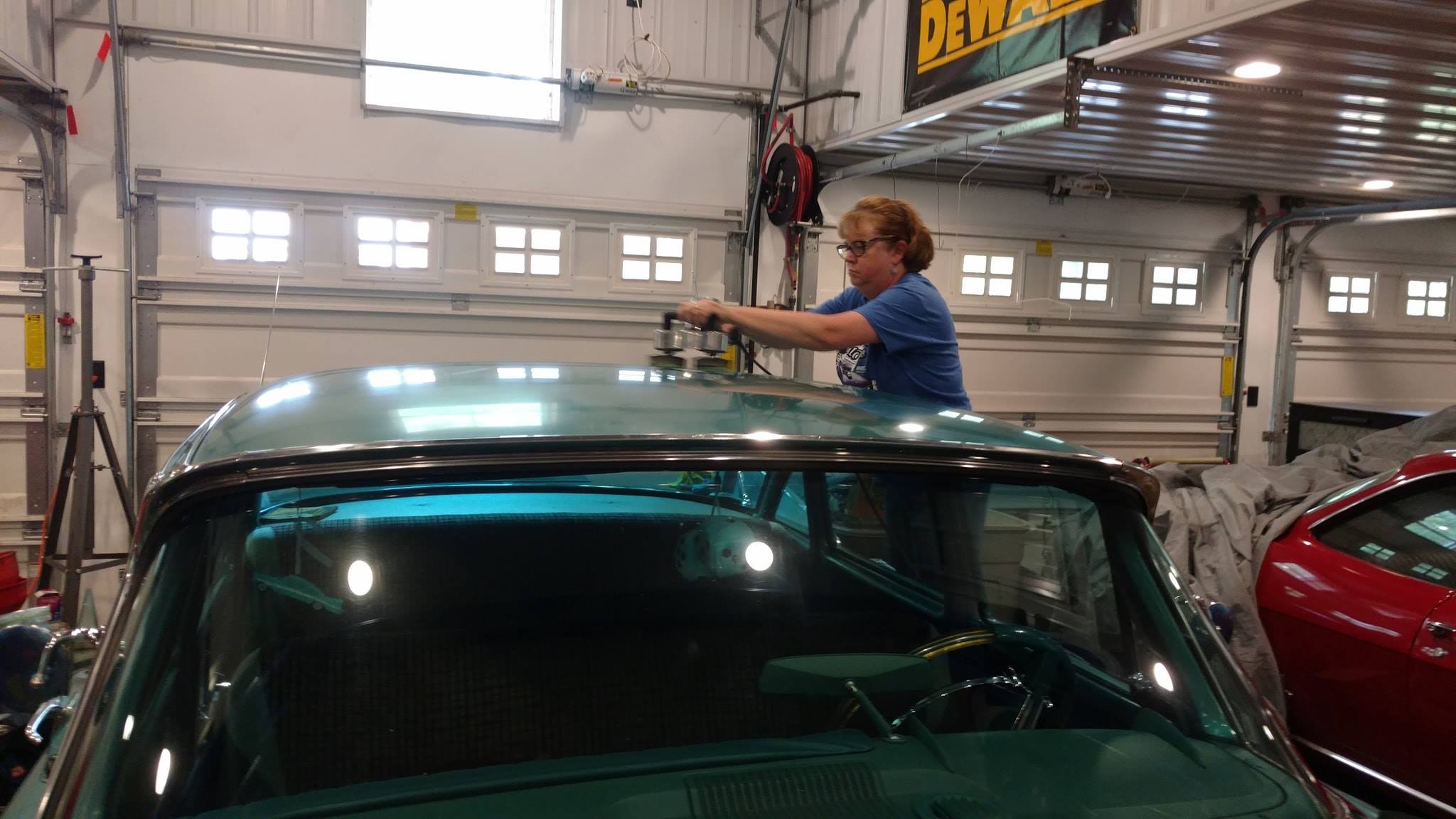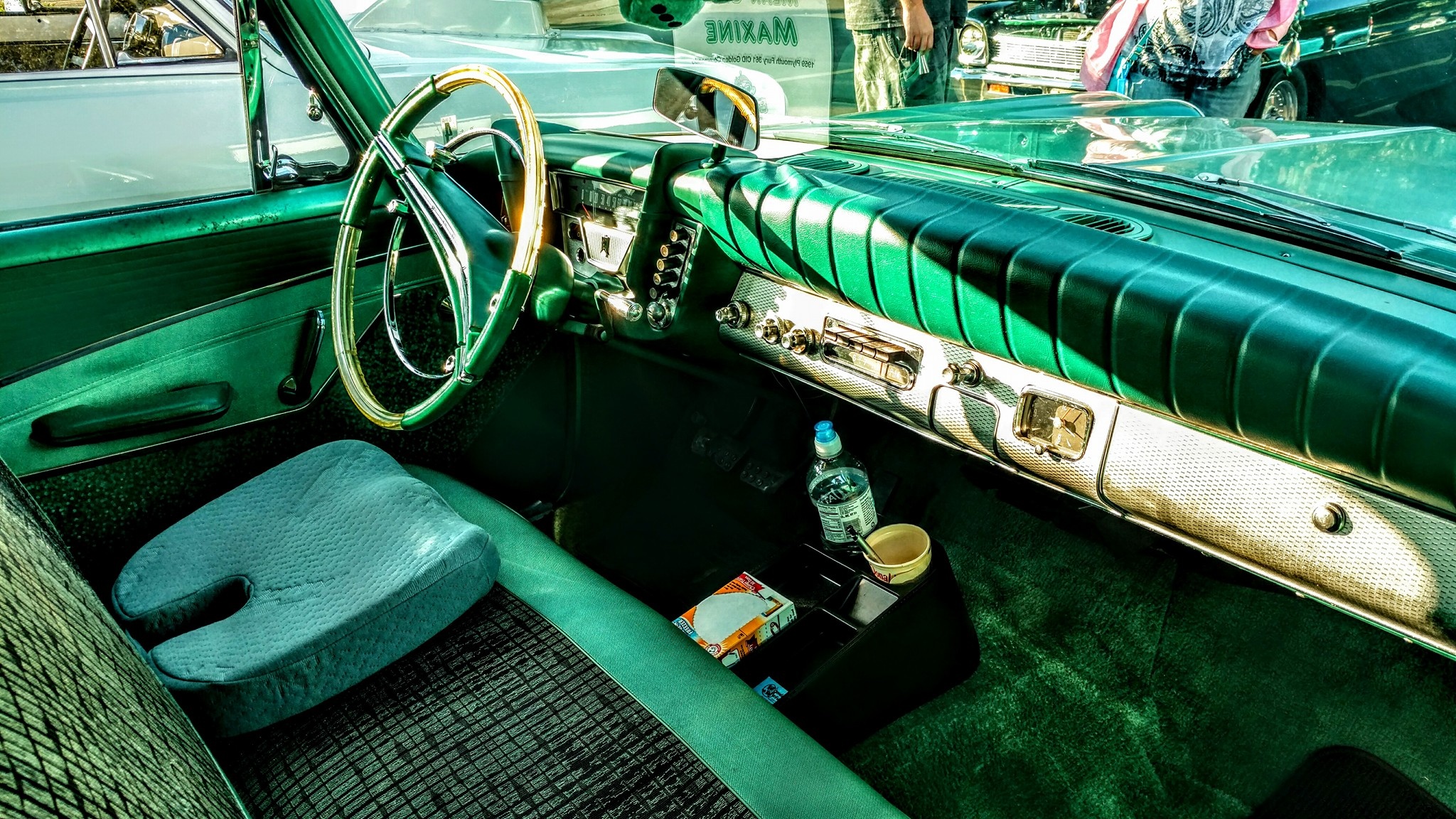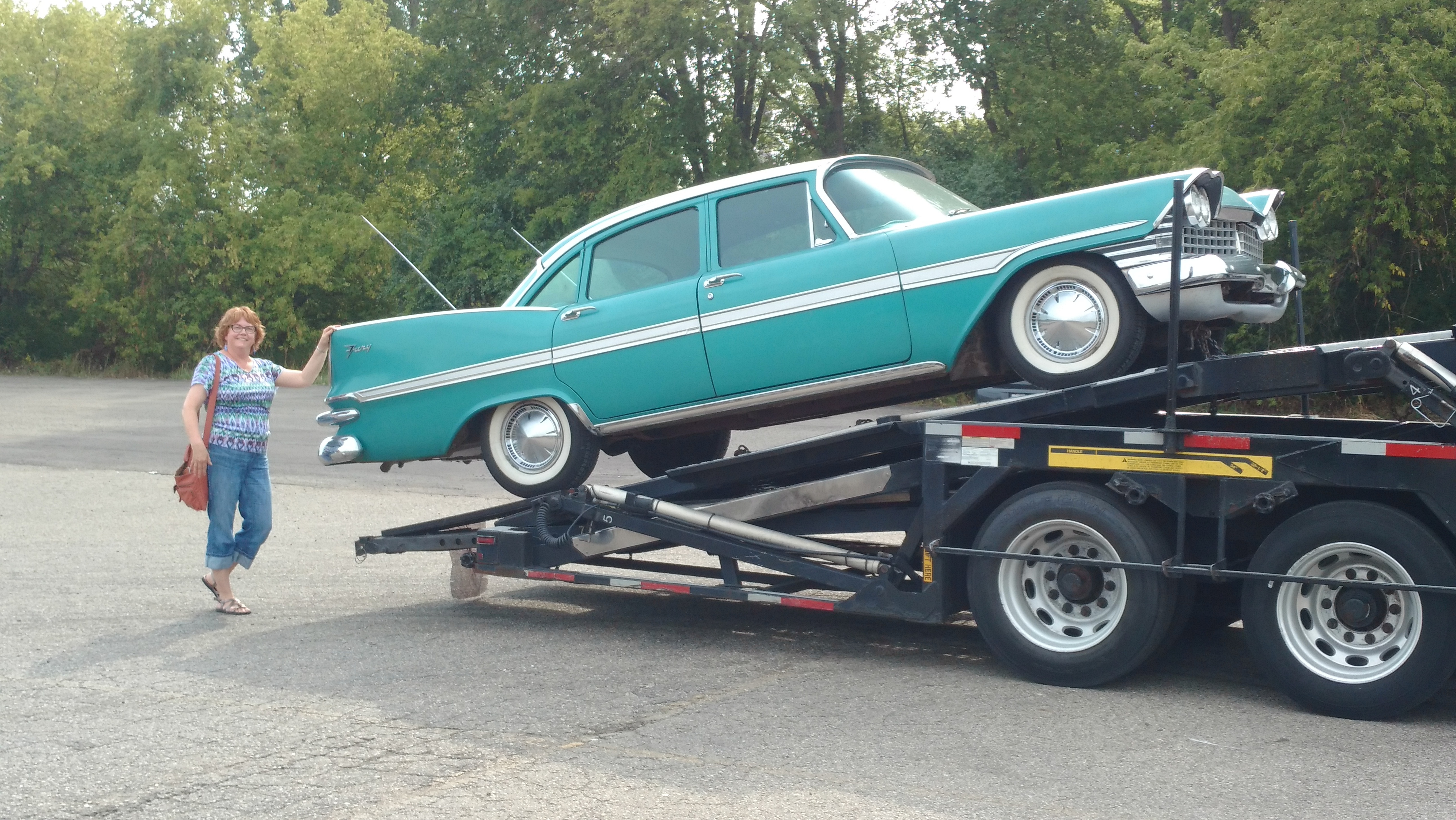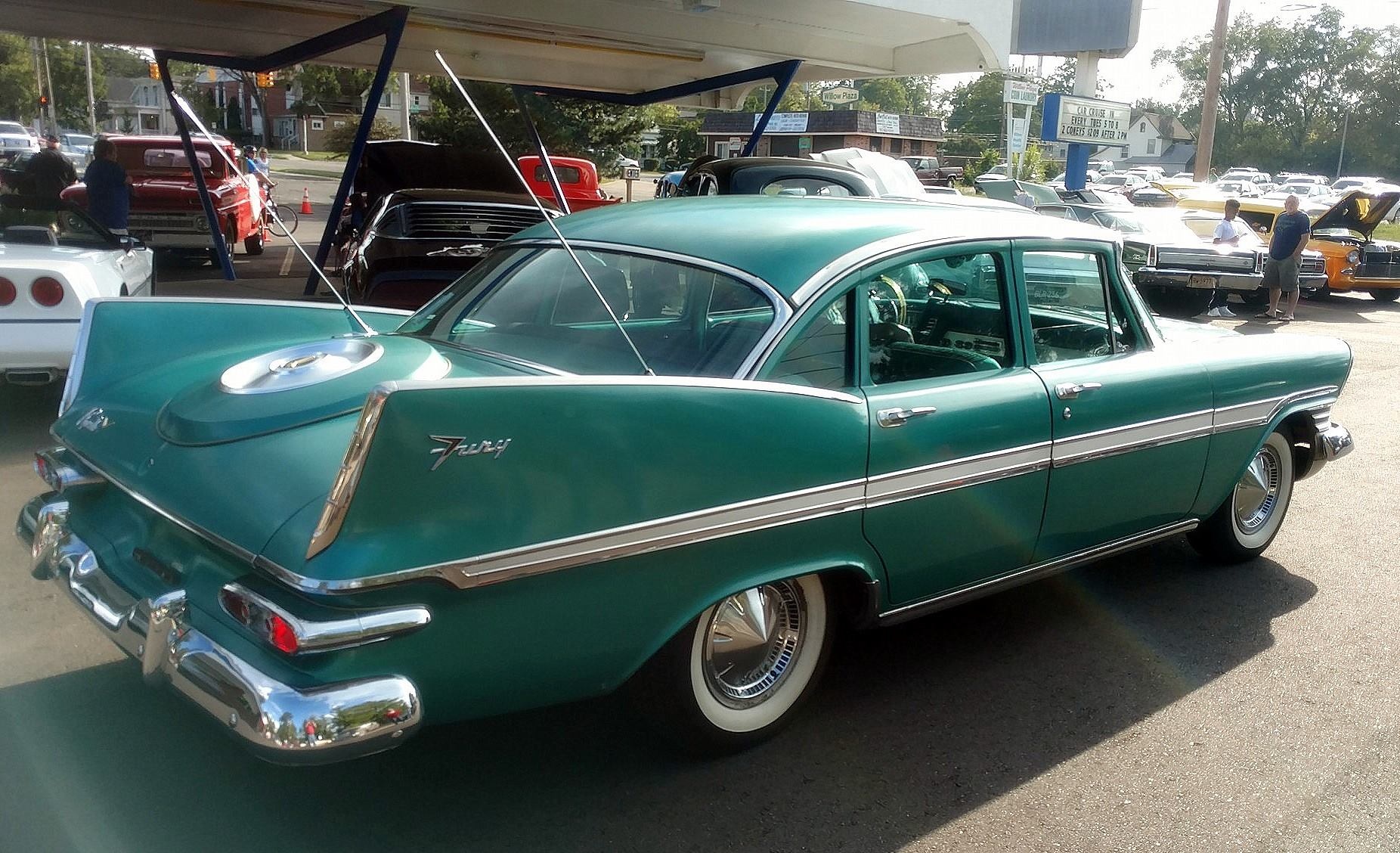 “I’ve loved anything Mid-century”, Claudia writes, “especially cars with fins, all my life, and I’ve always wanted a late ‘50s MOPAR. In 2017, I finally decided I wasn’t getting any younger, and I checked that item off my bucket list. ‘Mean Green Maxine’ is a 1959 Plymouth Fury four door that I found on Ebay Motors. The car came out of Littitz, Pennsylvania. The previous owner had passed away a number of years ago, leaving a large farm with many outbuildings. When the property changed hands, the new owners discovered a collection of cars in one of the barns, including my Plymouth. When I found the car, it was listed for sale at a used car lot in Strasburg, PA. I purchased it having only seen photos (lots and lots of them, luckily), and jumping in essentially knowing nothing, and just trusting my gut that I was making the right move. I wasn’t wrong.”