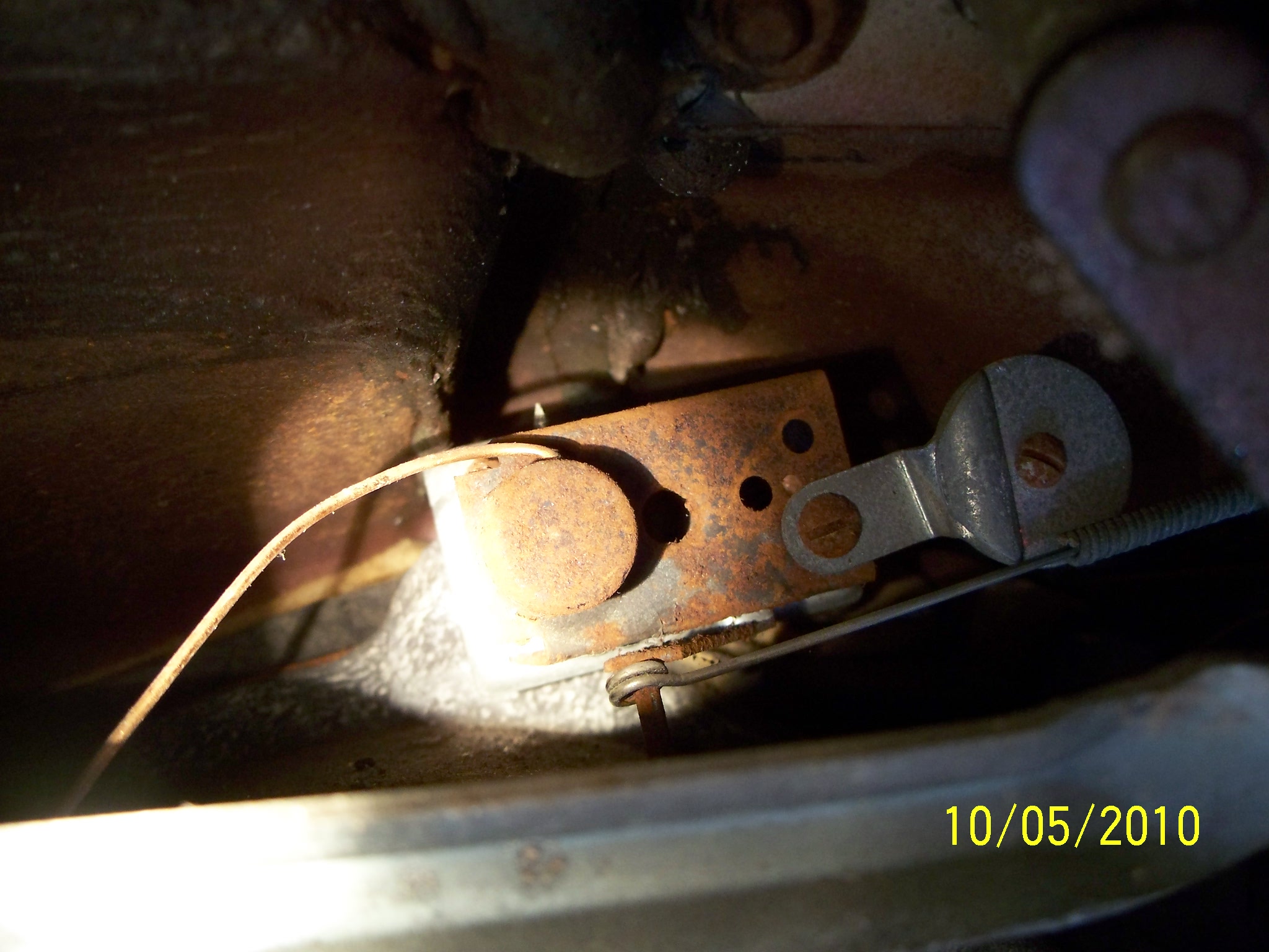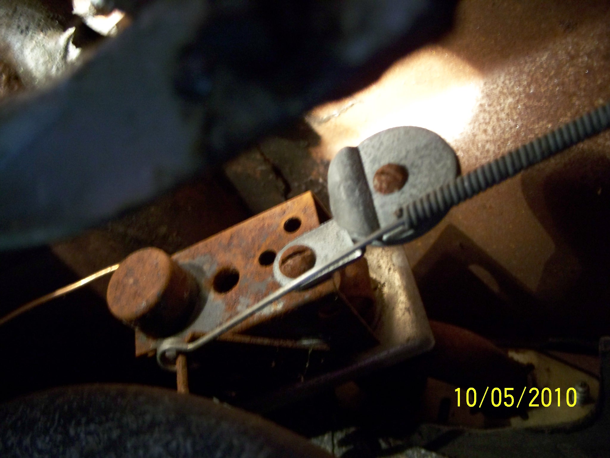 John - Just for you, since the flash on my camera would not work I took a flashlight and got a couple of pictures, these are from a 4 dr. parts car I have. It looks like the valve operating lever is on the bottom and works back and forth horizontally. the cable snakes in from the right hand side and when the lever is all the way up the lever on the valve is to the right.