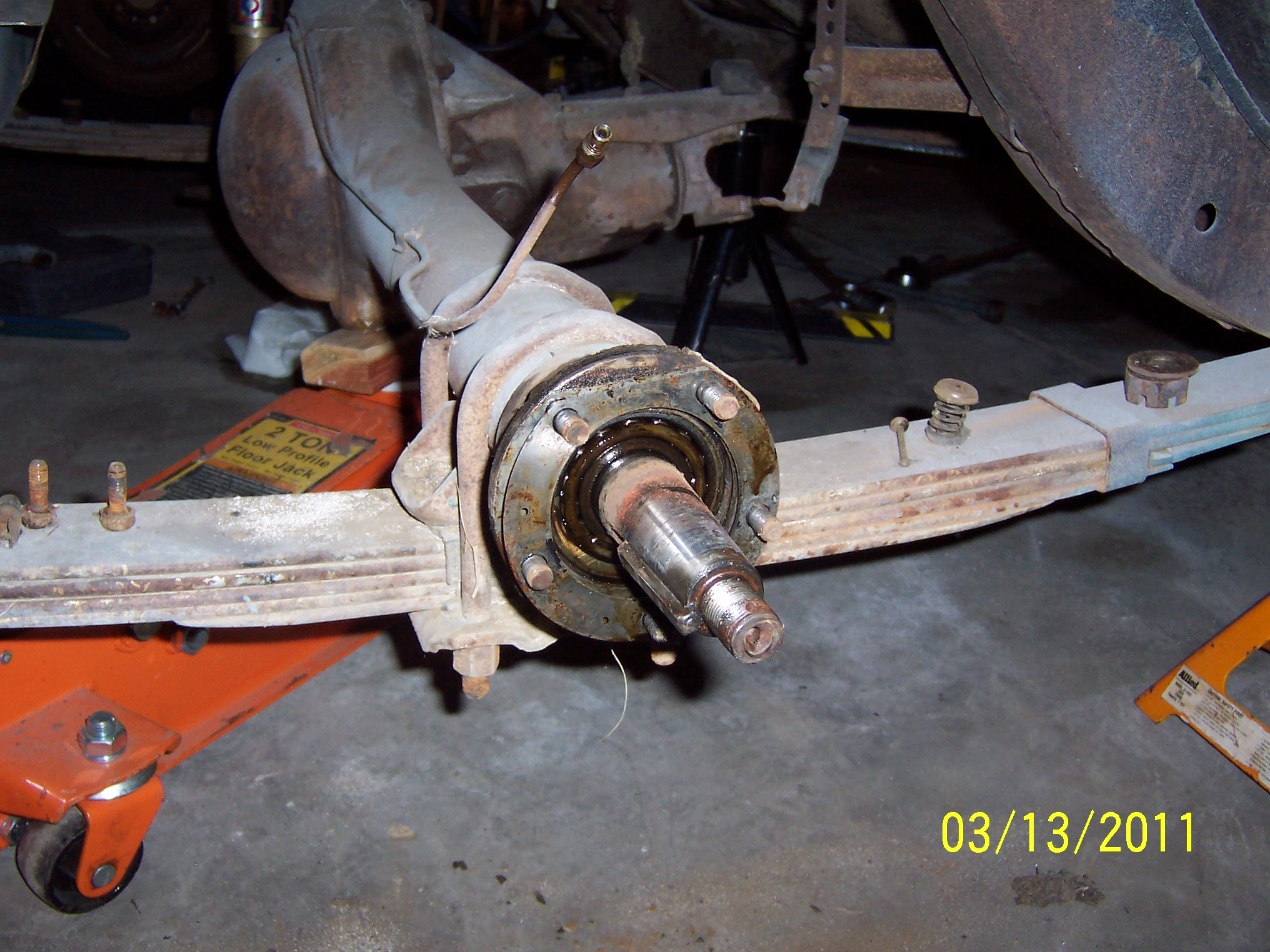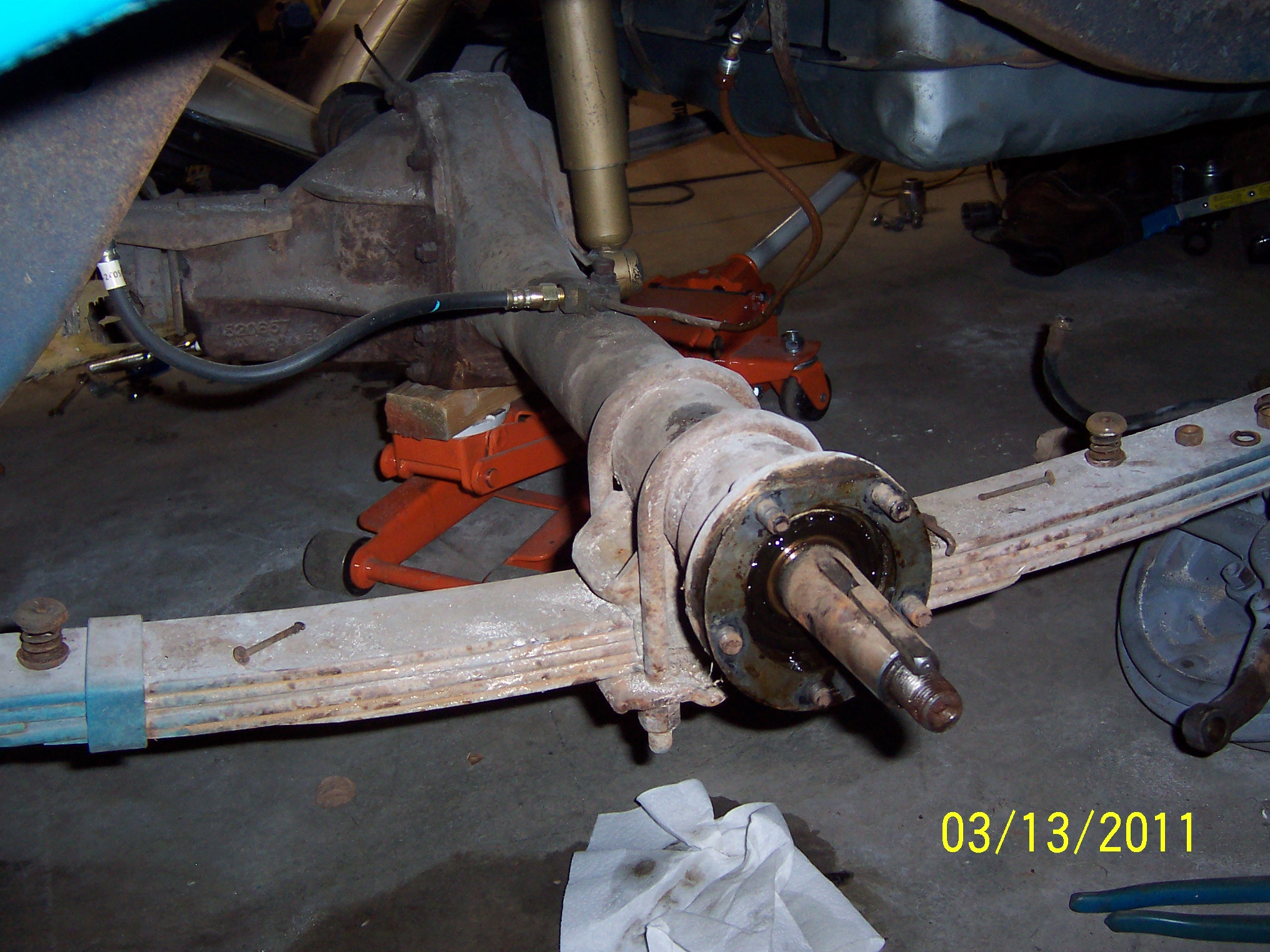 Here is a few pics of the rear axle area all disassembled. I turned up the axle brake lines to keep the fluid from leaking out to much, I only have so much kitty liter you know!