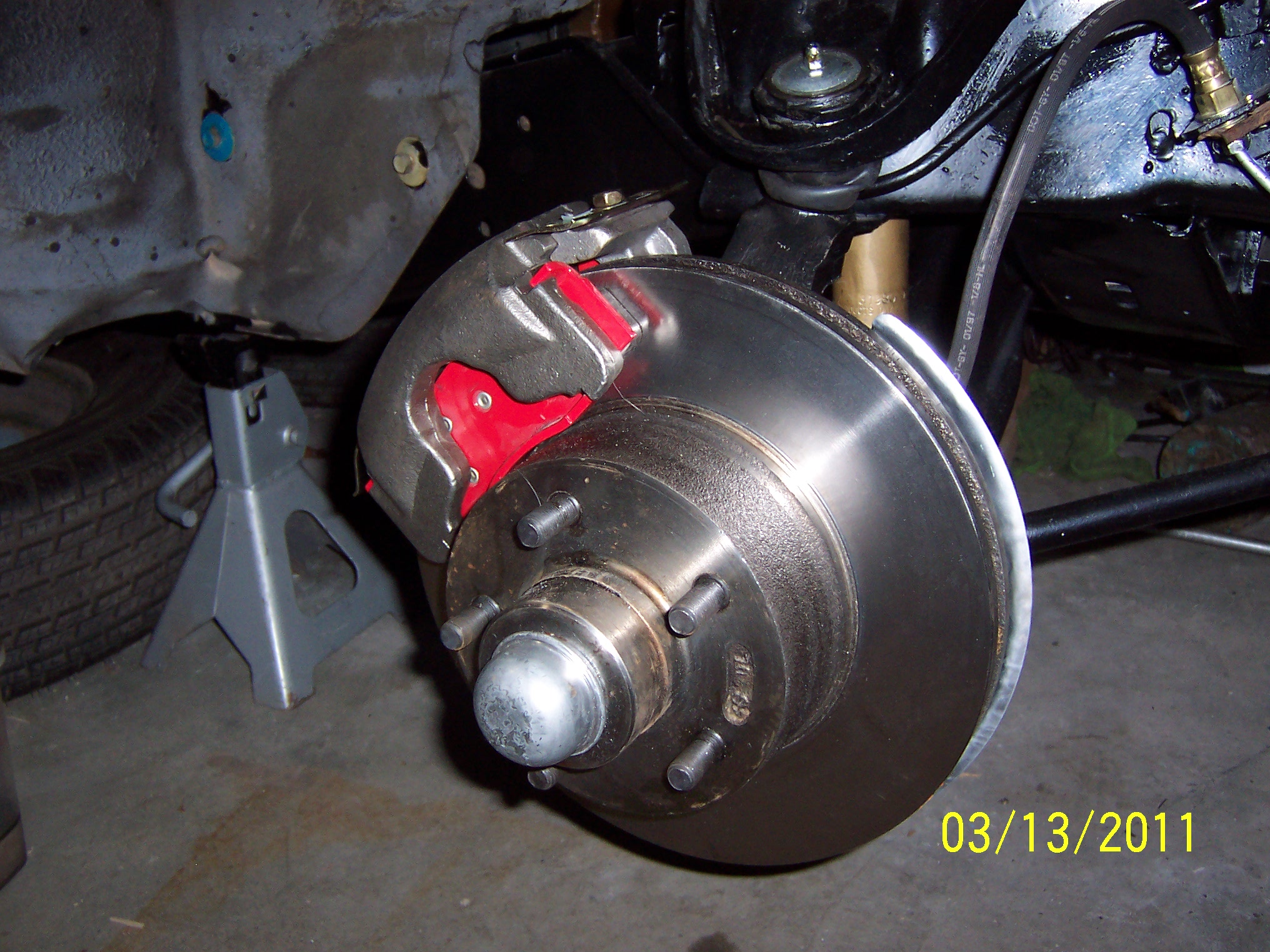 almost done but realise I did not buy brake pads yet, ran to Autozone and picked up some pretty red ones!