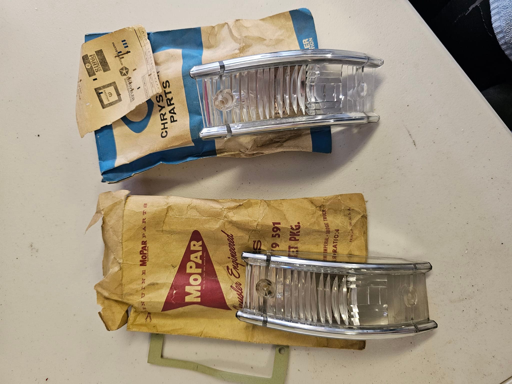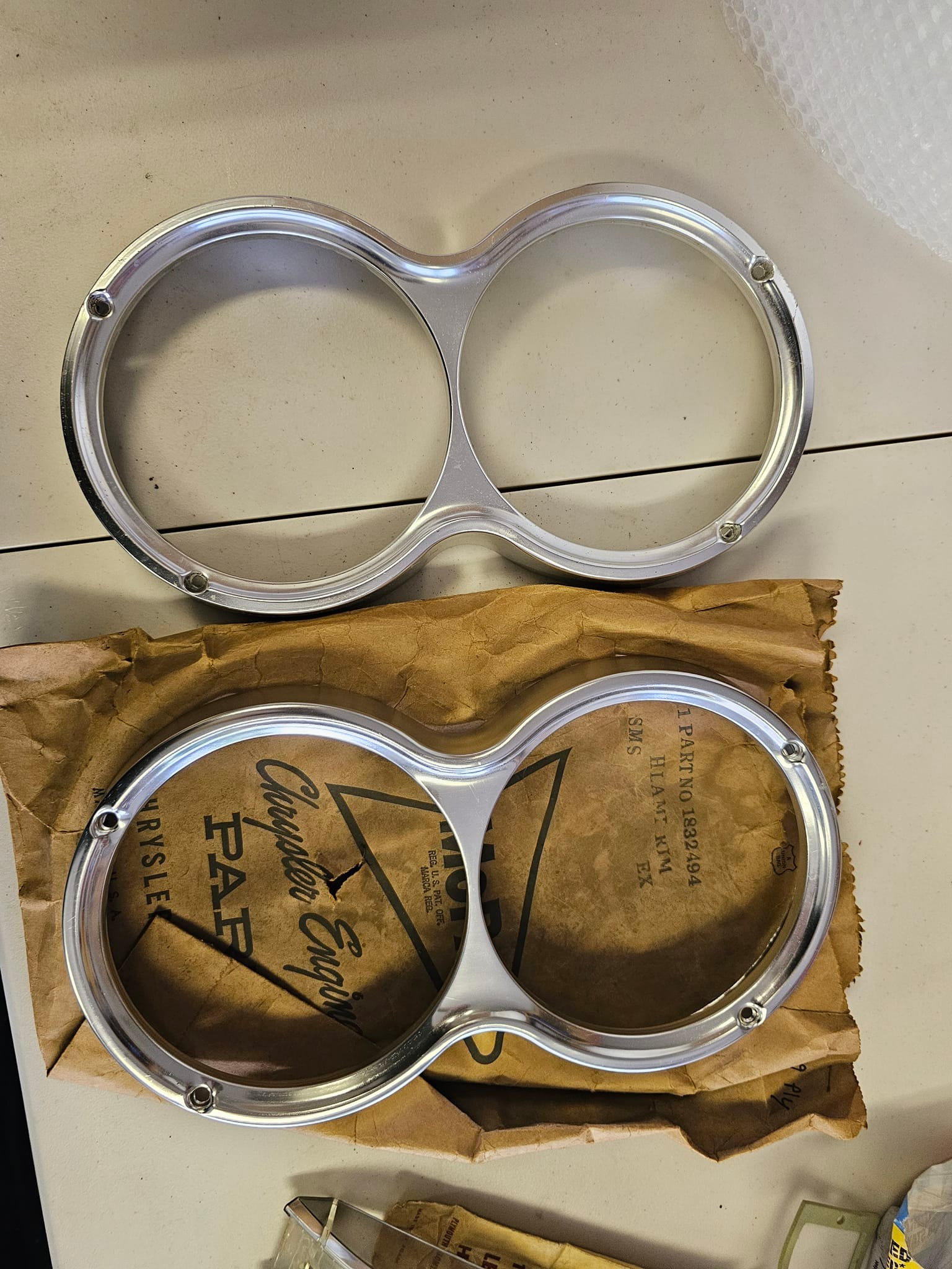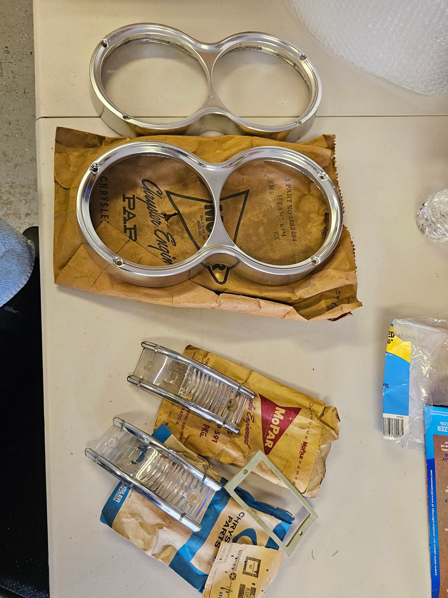 2023-08-06 So, a car guy facebook friend I have never met [Will Walker! You can read all about Will here], flew to Carlisle, PA. for the Mopar show a few weeks ago. While out there, he messages that he found NOS front marker lights and headlight rings for my 59 Plymouth. He buys them with his own money and tells me just to reimburse him after he gets home and mails them to me. Not to mention, he brought them on the plane ride home as a carry on so they wouldn’t get damaged by the potential Neanderthals handling his luggage at the airport. Really thankful for his kindness and the parts are gorgeous.