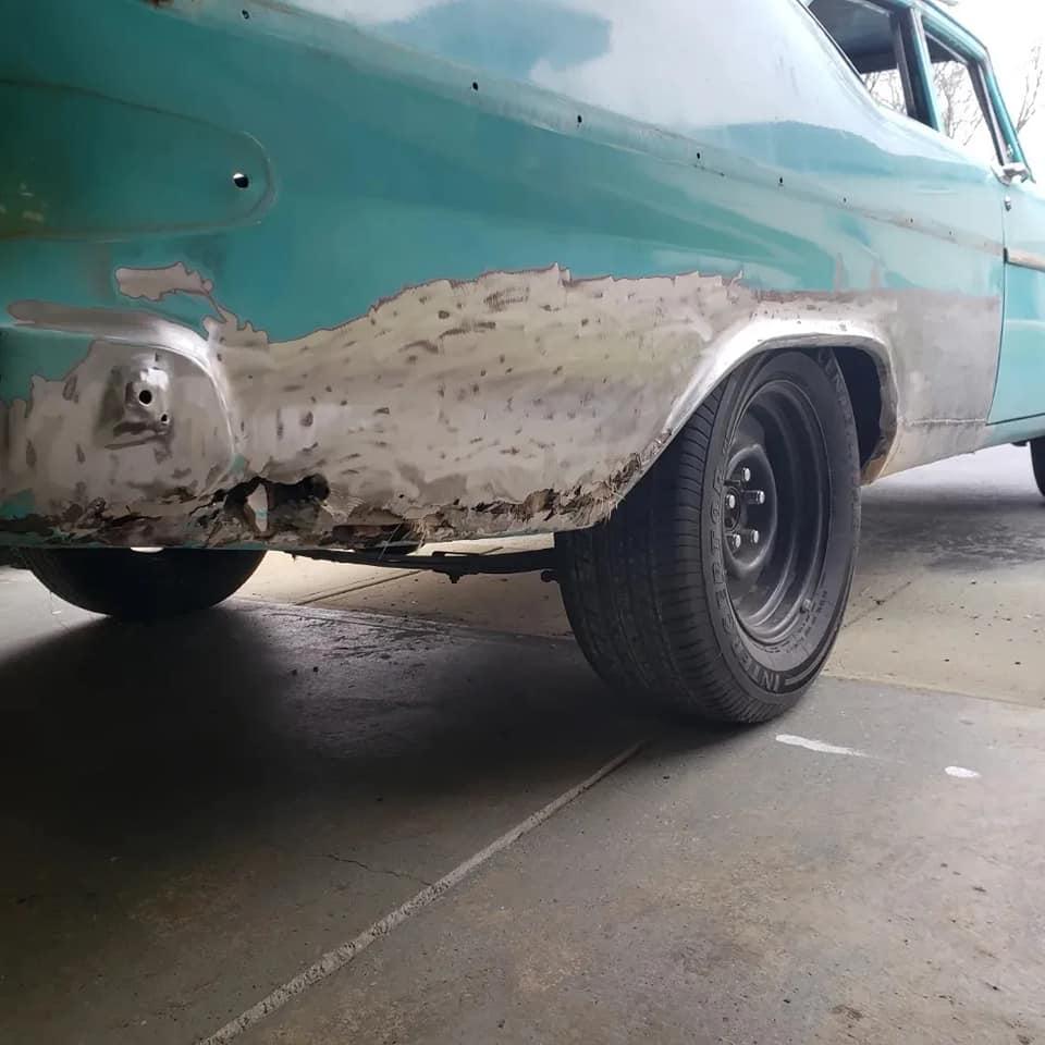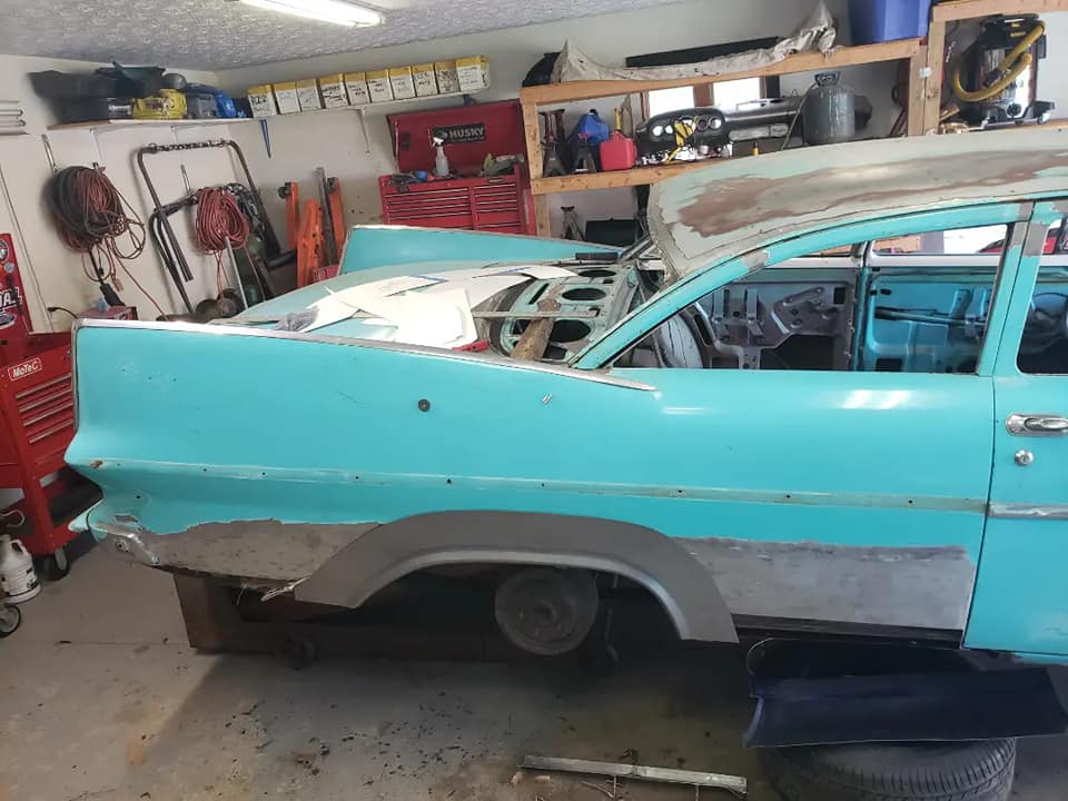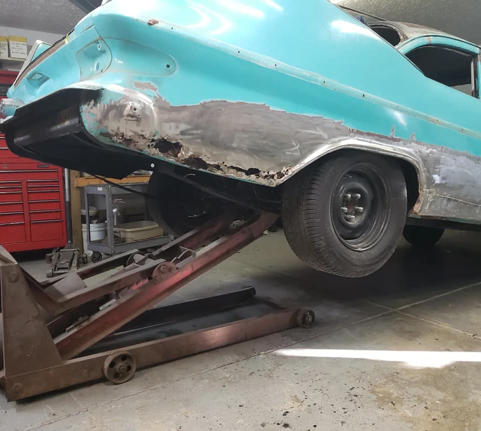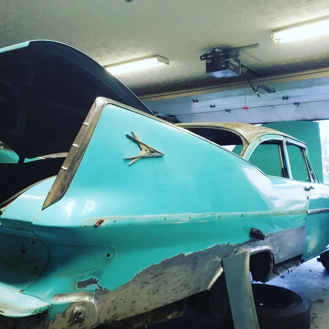 2021-11-07 Pushed it out today to move it to the other side of the garage. Selling the 47 Dodge truck took a lot of time. Then it was selling all the extra parts to the truck I had laying around took time. Then it was rearranging the garage since I had all kinds of new space to utilize. Then traveling this past week to Vegas. Now its home improvements the next couple weeks. Hopefully, Christmas time I will get back on it. Patch the quarters and start prepping for paint is the plan.