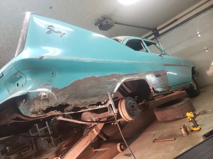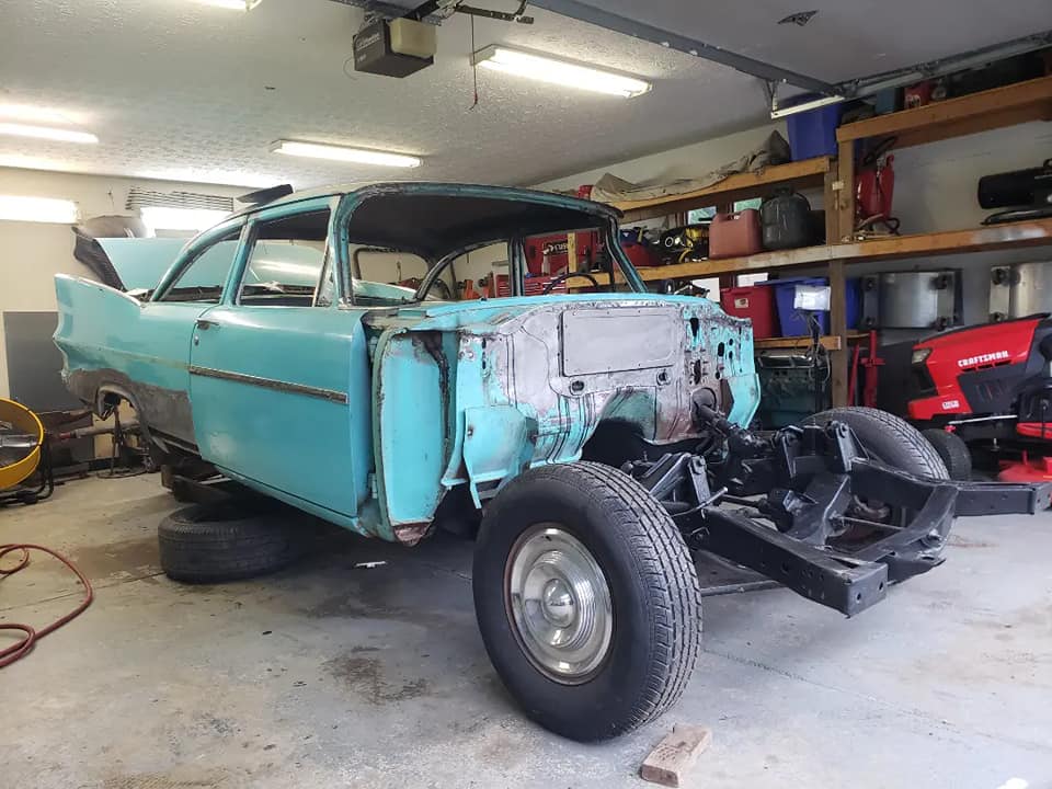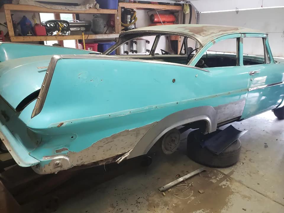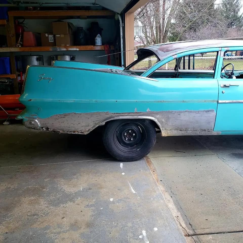 2021-11-07 Pushed it out today to move it to the other side of the garage. Selling the 47 Dodge truck took a lot of time. Then it was selling all the extra parts to the truck I had laying around took time. Then it was rearranging the garage since I had all kinds of new space to utilize. Then traveling this past week to Vegas. Now its home improvements the next couple weeks. Hopefully, Christmas time I will get back on it. Patch the quarters and start prepping for paint is the plan.