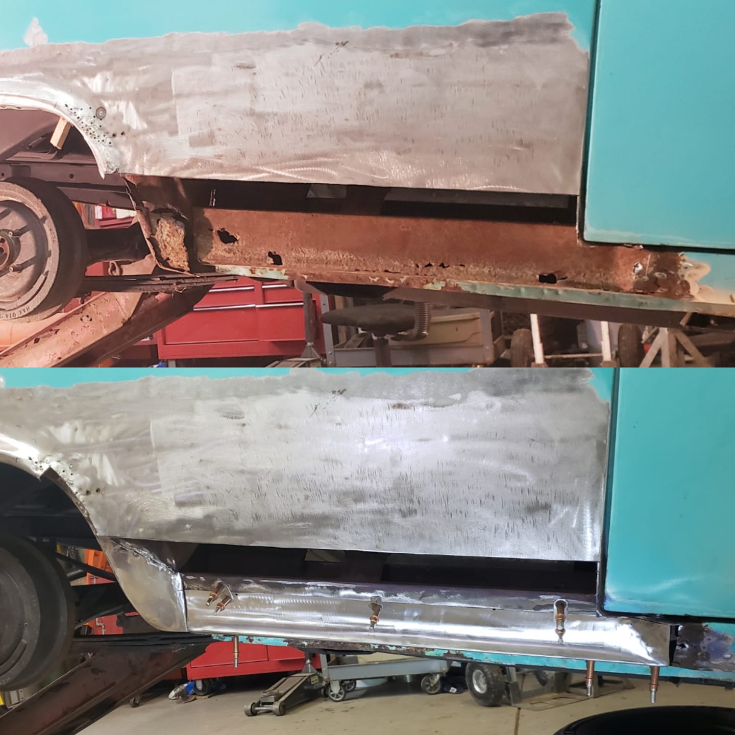 2022-04-10 Finally had some time yesterday to make one of the quarter panel patches on the Pullmax at work. The Pullmax dies worked well considering this is the first actual panel they have made. The dies left some minor imperfections, most of which was correctable. Looking forward to making the front patch panel for the quarter. It should come out even better after I make some minor adjustments to the Pullmax dies.