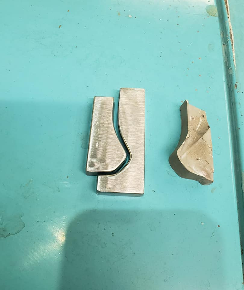 2022-02-05 Made a little more progress this morning on the Pullmax dies for the 59. Really happy with the wheel lip profile match (first and second pic). A lot of trial and error ahead with sorting out the best process and pattern but glad the dies work and make the desired profile accurately at this point.