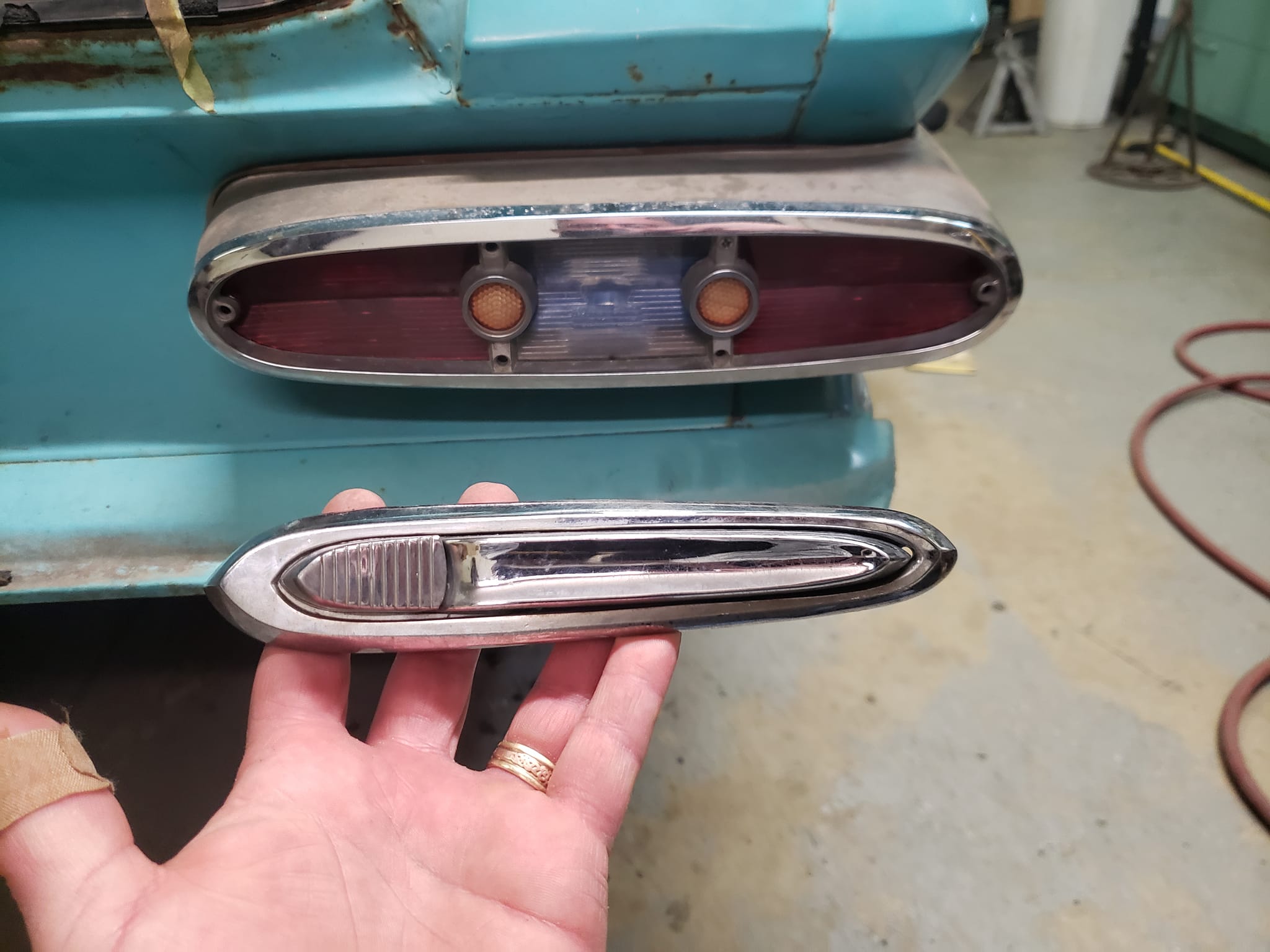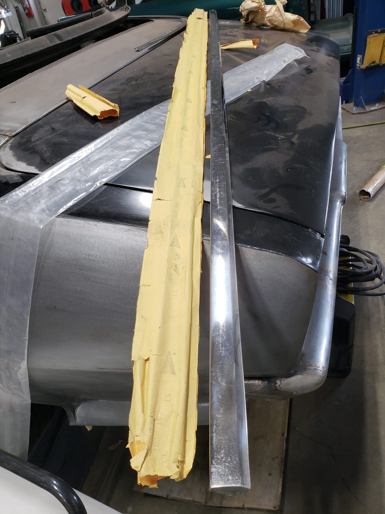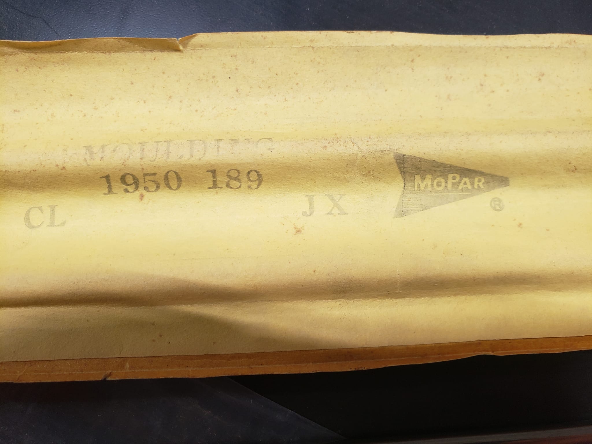 2023-01-24 Mail call. I found a New Old Stock driver side stainless quarter panel molding for the 59 Plymouth recently and it finally arrived today. It has some minor dings from being knocked around for years but I am super happy with it. Nothing like pulling the factory paper off of a car part. I already have an NOS passenger side quarter molding so that just leaves the door moldings to find in NOS or close condition.