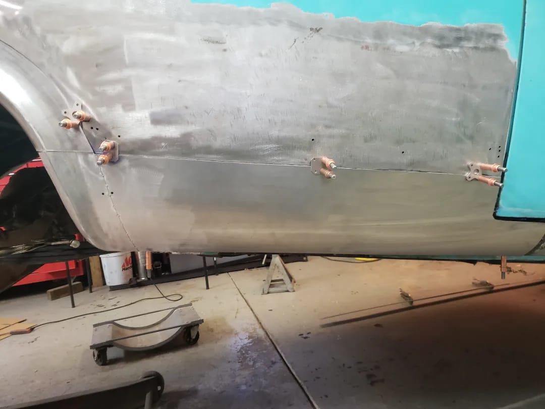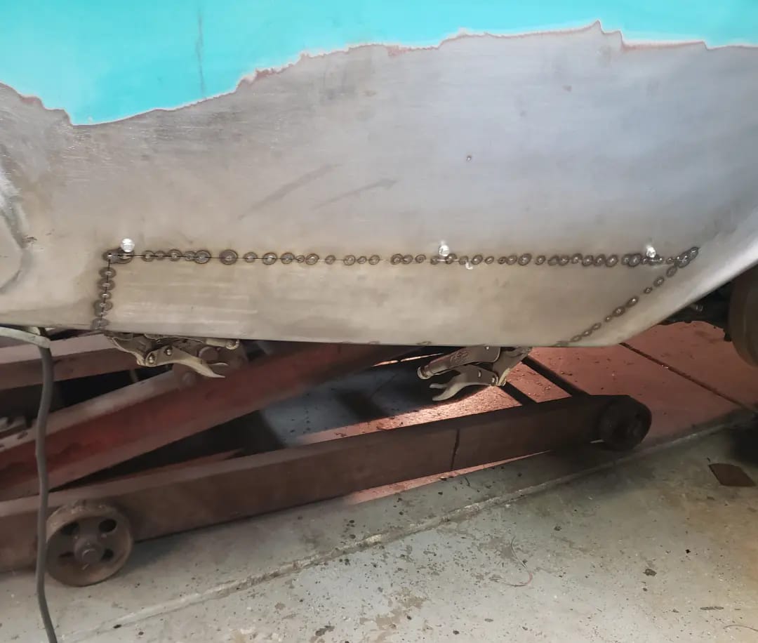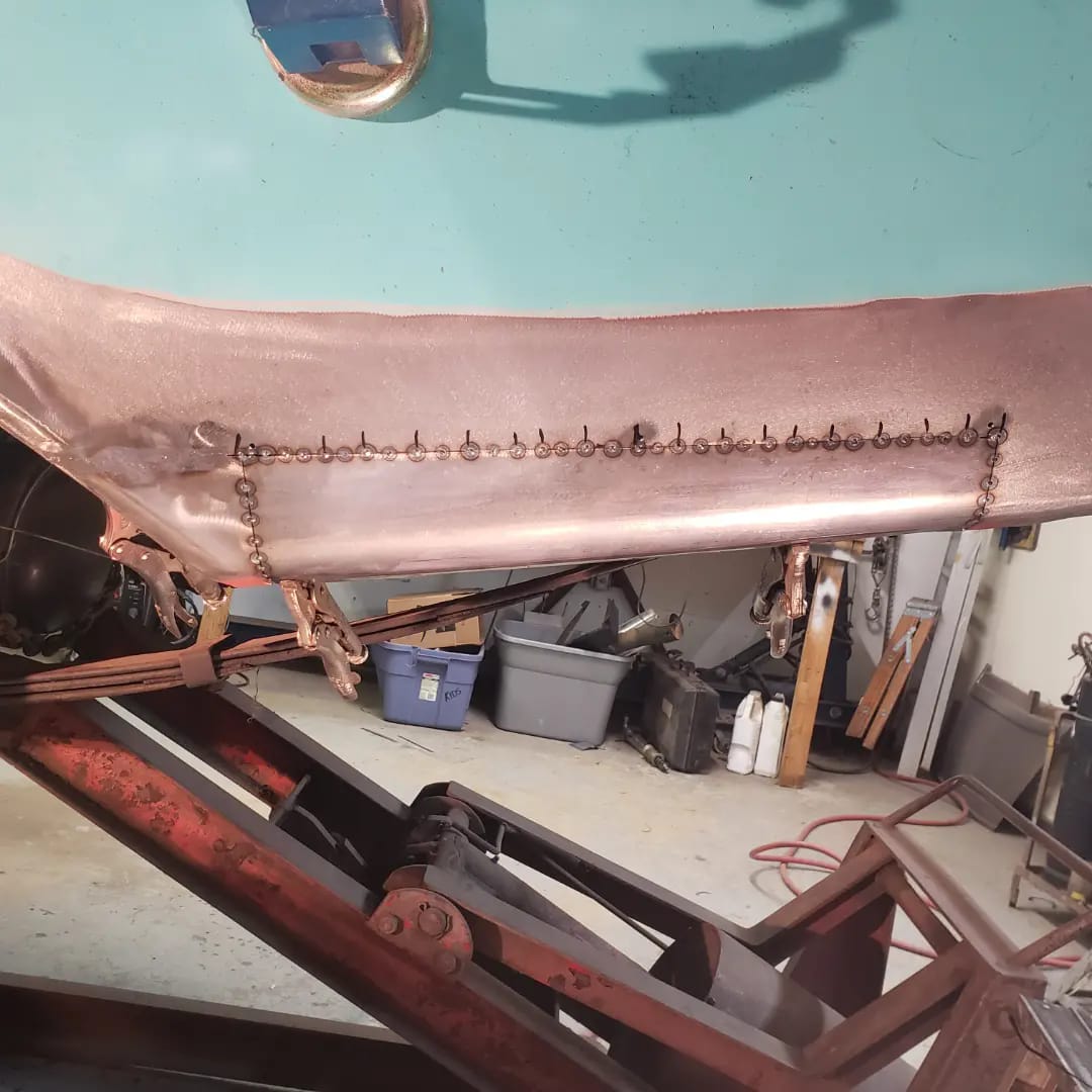 2023-01-22 I ordered a $30.00 upper forming band from Amazon for my rickety harbor freight english wheel this week. I used it to make both left and right front rear quarter panel patches and the rear drivers side quarter panel patch with it. Panels came out quite well. I was able to get both drivers side panels clecoed on this afternoon. I still need to do some more work to the front dog leg, but super pleased that I am on the home stretch on the dr side quarter.