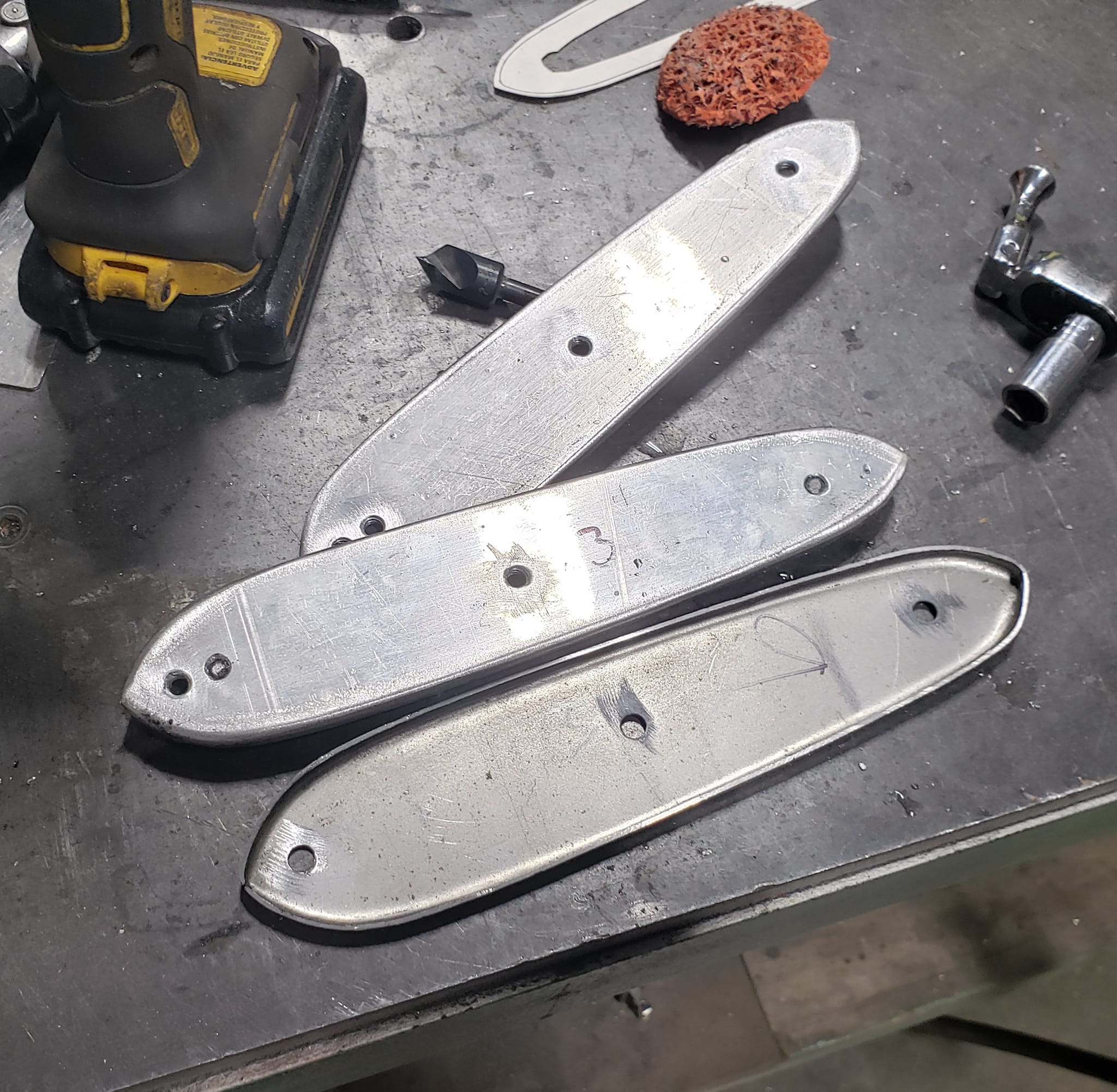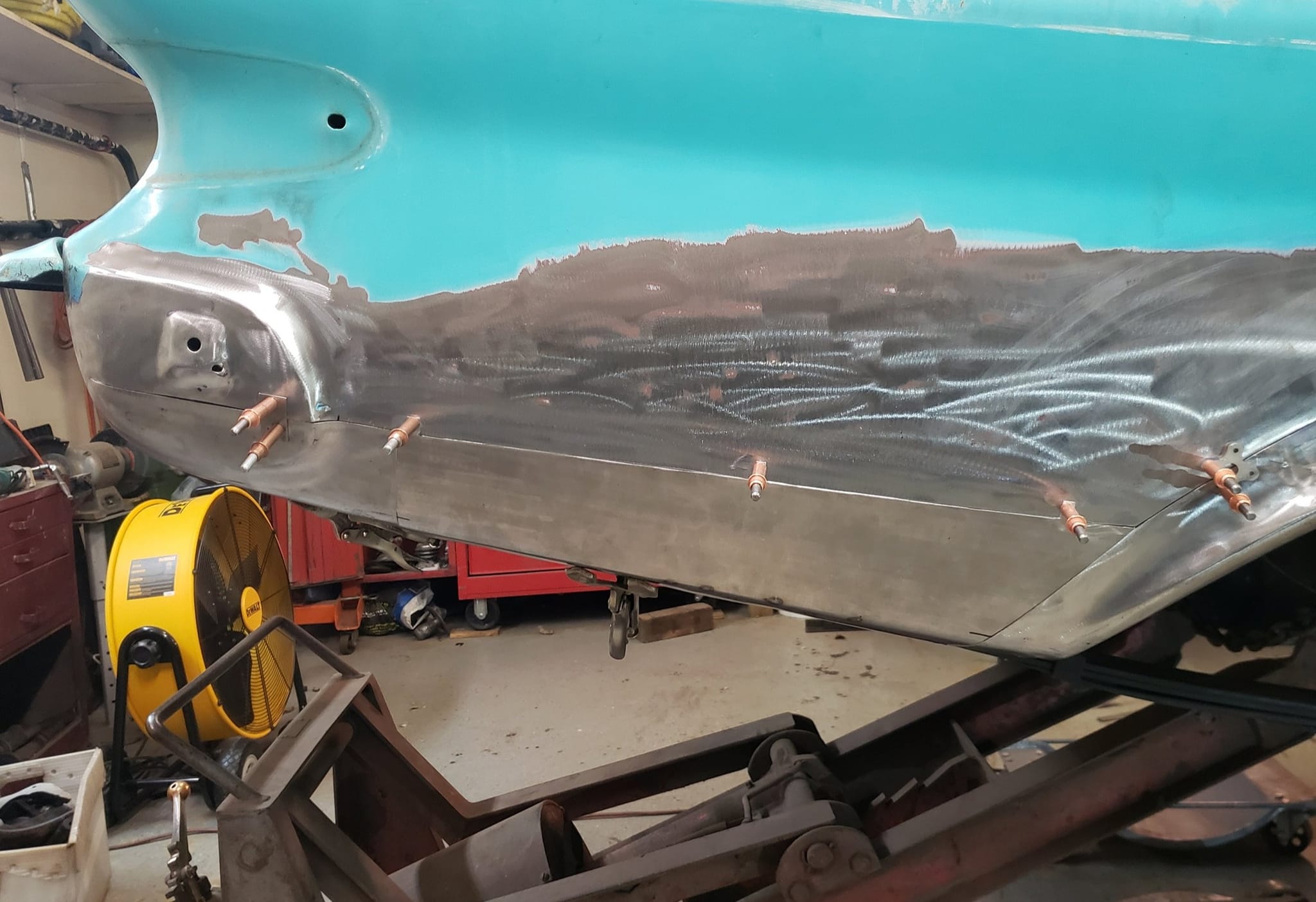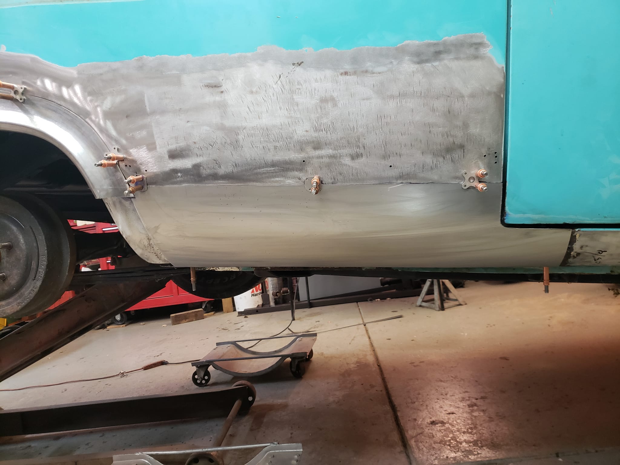 2023-01-22 I ordered a $30.00 upper forming band from Amazon for my rickety harbor freight english wheel this week. I used it to make both left and right front rear quarter panel patches and the rear drivers side quarter panel patch with it. Panels came out quite well. I was able to get both drivers side panels clecoed on this afternoon. I still need to do some more work to the front dog leg, but super pleased that I am on the home stretch on the dr side quarter.