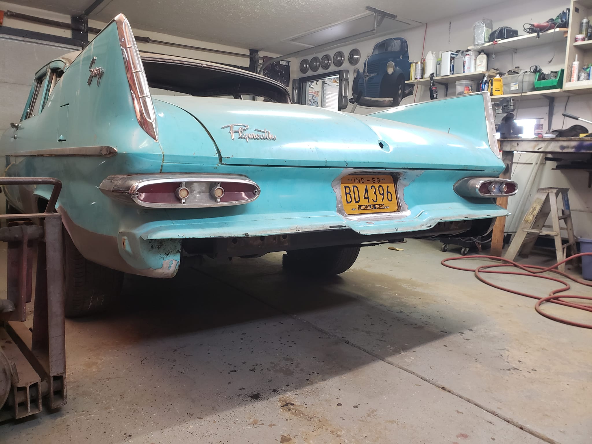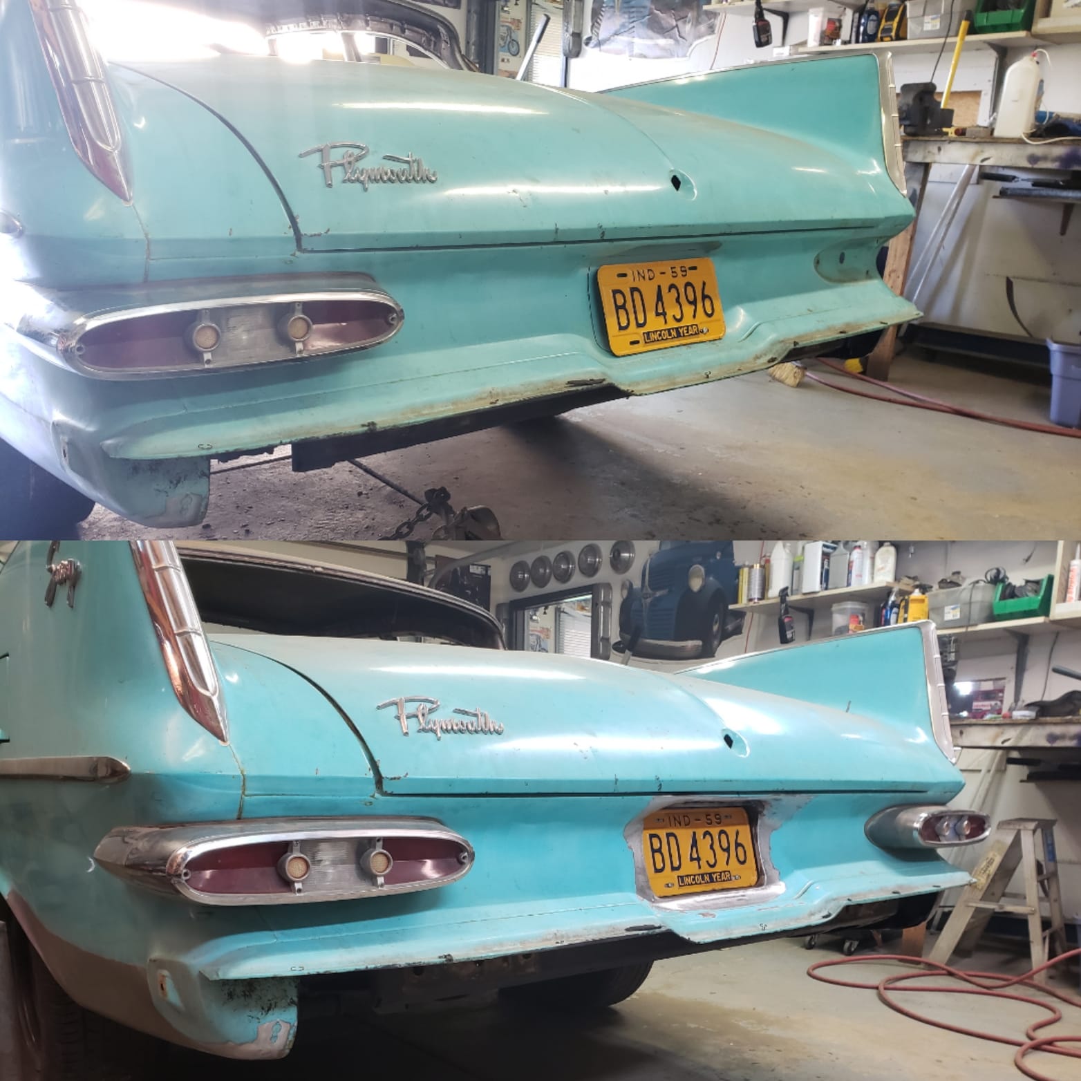 2023-04-16 The license plate mounting on my 59 Plymouth was another item I felt was overlooked by the designers. Chrysler, Desoto, and Dodge all had nicely recessed areas where the plate mounted. The Plymouths just mounted to the outside of the tail panel. This was a quick job, sinking the plate, without making it to complicated. It was nice to finally modify something on the car that only took a weekend.
