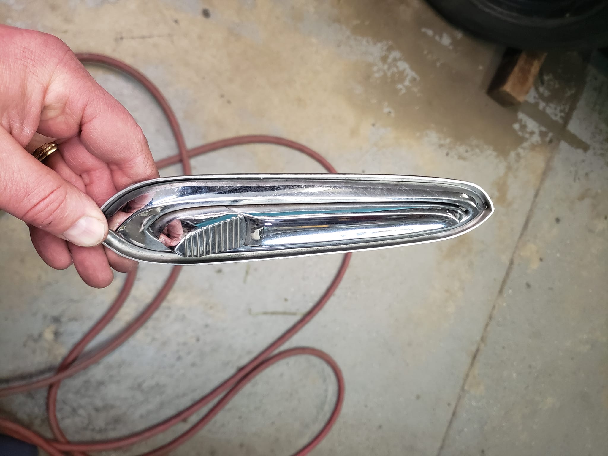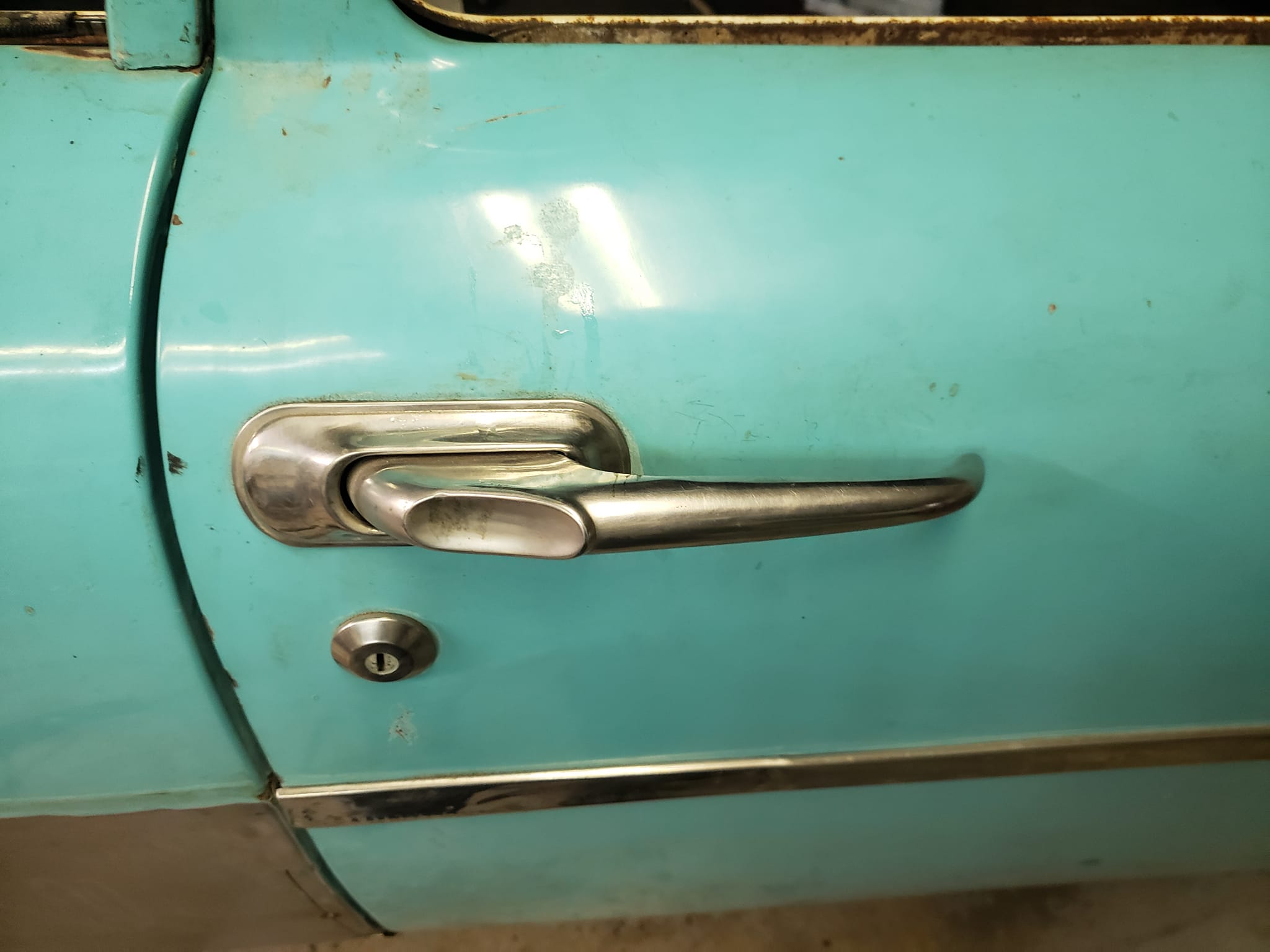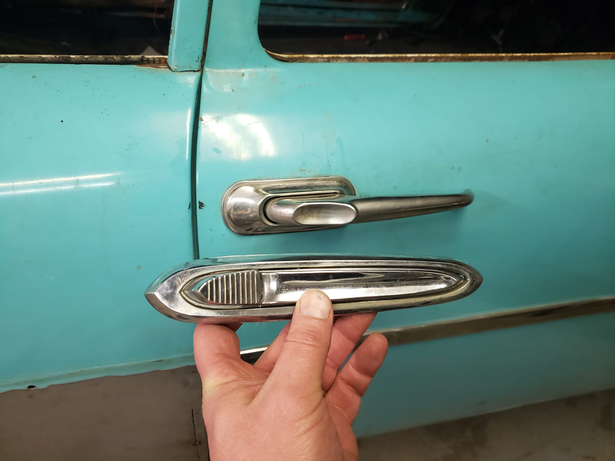 2023-03-27 I have never understood the door handles on the 57-59 Plymouths. Chrysler, Desoto, and Dodge all got very nice ornamental door handles. Plymouths basically got a huge truck door handle. Great big antique refrigerator door handles hanging out whacking small children in the forehead and catching mailboxes as they go down the road. This will be one of the last modifications I make to my 59. I am not sure how I will get them to actually work but I think cosmetically they will be a nice touch.