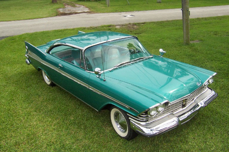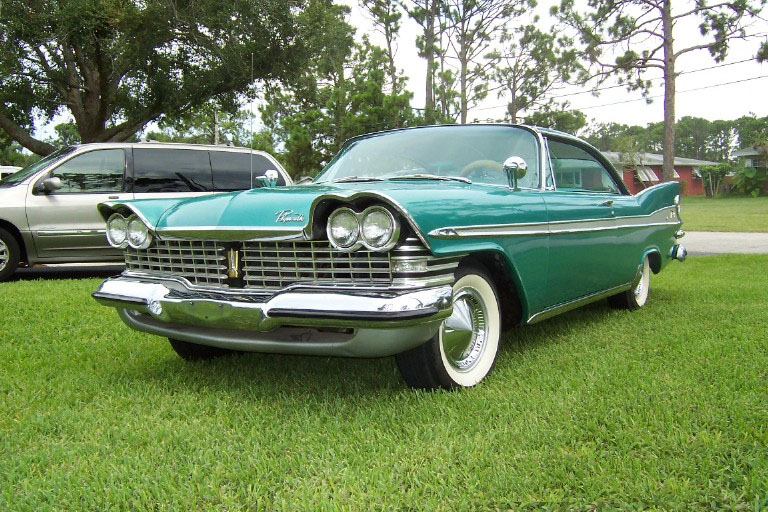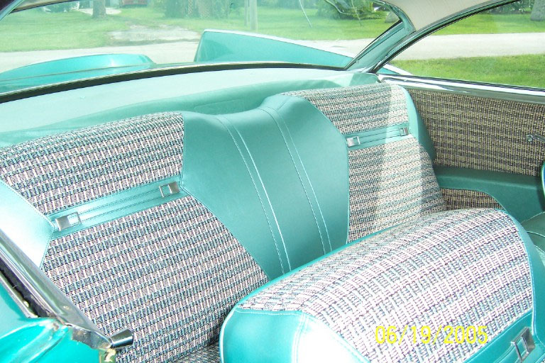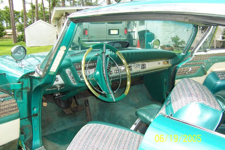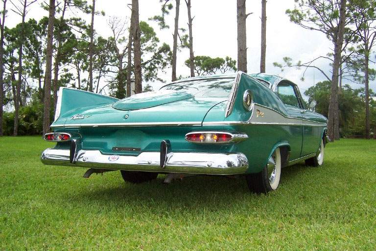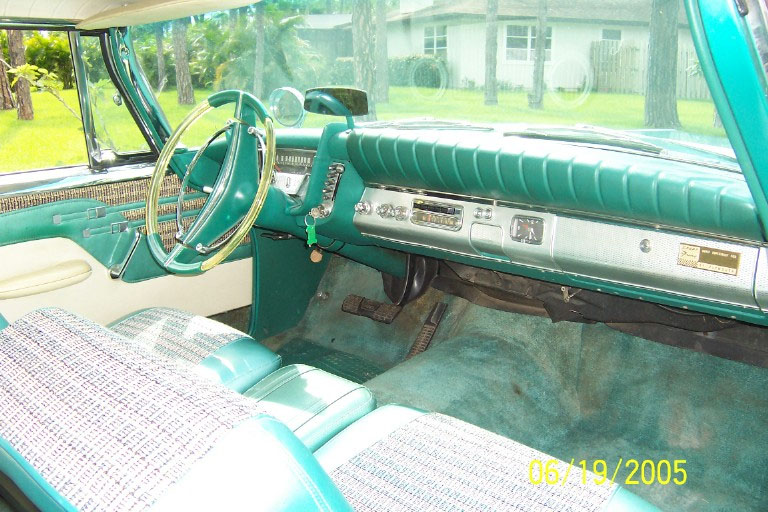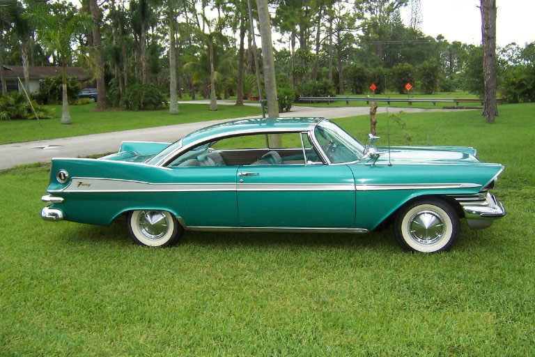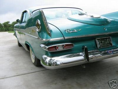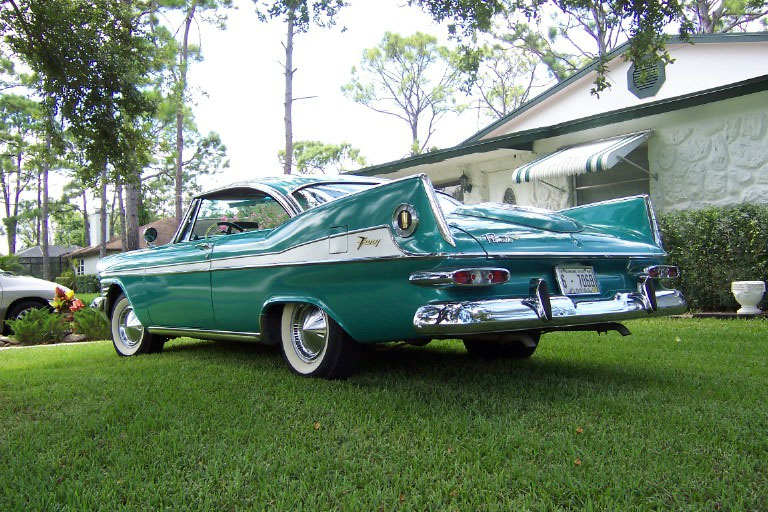 I bought the car from this gentleman in 1999 and was truly amazed at the condition it was in, especially since everything except the seat covers was original and nearly perfect. There were, of course, the original factory blemishes and a couple of light scratches/bruises to the original body and paint, but they just seemed to fit with the nature of what the car is, and that is a true survivor! After my examination, the only items that I chose to do anything at all to were the original trunk mat, and (once again) do a complete brake job. The trunk mat was completely dried out and cracked into many pieces, so I replaced it with a Gary Goers, carpeted mat which looks beautiful. The cardboard side panels were still very nice so they remained—the trunk looks beautiful! I then did a complete brake job, turning all drums, replacing all hardware, shoes, wheel and master cylinders, and installing silicon brake fluid so that the components would not rust anymore. I tuned the engine, installed new Coker WWW tires (bias ply) and then used it for show and Sunday drives, always keeping it covered and in a heated garage. VEHICLE DESCRIPTION: Again (except for the seat covers, the trunk mat, and normal service items) this car is a 1959 Plymouth Sport Fury in almost perfect, survivor condition. The car has the 361 cubic inch “Golden Commando” engine coupled to the standard Torqueflight transmission. It has the standard “swivel” front seats, dual, outside, deluxe, fender-mounted mirrors, working radio, clock (not working), Power Steering, Power Brakes, and all of the Sport Fury “special items” including an un-engraved “built especially for” plate on the glove box door. The car is painted the rare emerald green color (absolutely beautiful) and has the contrasting, multi-hued green interior. The original dash pad is in excellent condition as is the original headliner. The original steering wheel is still in near perfect shape, and all chrome and trim is in place and in great shape. The only pitting on the exterior chrome that I have noticed is a very small amount under the taillight housings that cannot be seen unless you bend over to look at it. Also, the chrome trim around the window openings in the interior shows a very slight accumulation of a surface stain/rust that polishes right off—I just have not gotten to it!