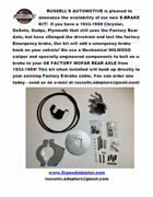 Why didn’t I think of this?!? What a clever idea - an emergency brake kit that uses the factory rear axle, and connects to your existing E-brake cable. An elegant solution to a nagging problem for many MoPar enthusiasts. Read all about it in the attached brochure!