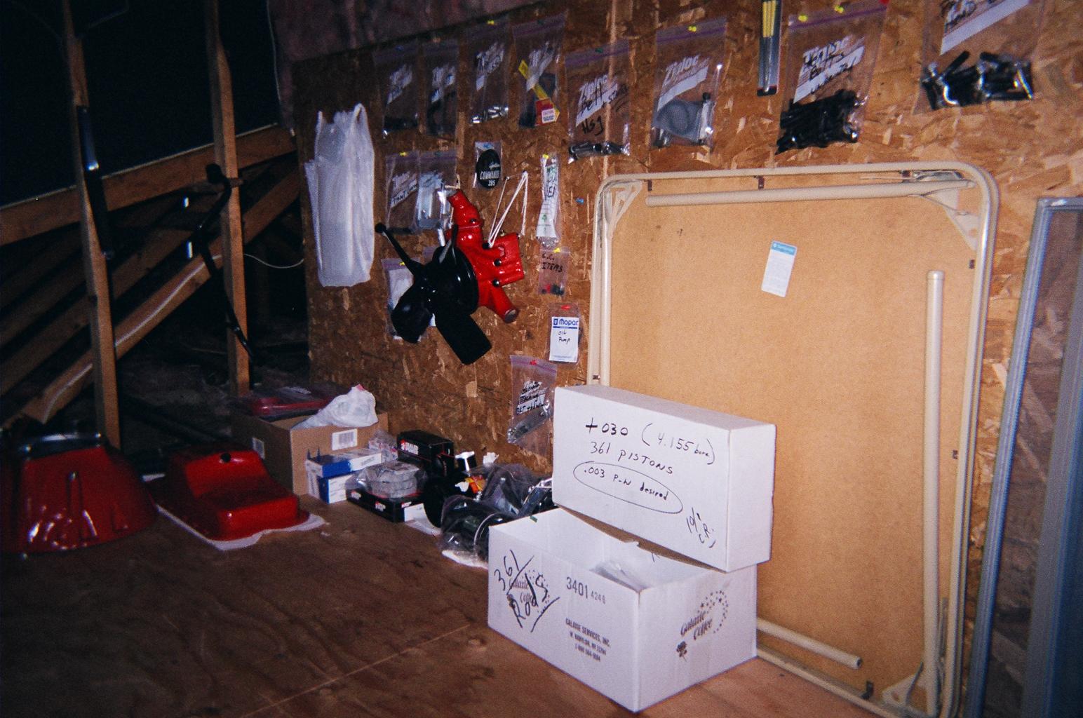 The heads and manifold are just held in place by a few bolts. I decided not to totally assemble it because of the weight involved in moving it sooner or later. The carbs will be rebuilt when I find a host – I did not want fresh carbs to sit dry if things extend for a while. All of the accessories are put away as there is minimal room where I am keeping it and no sense of hanging everything just to take it off again.