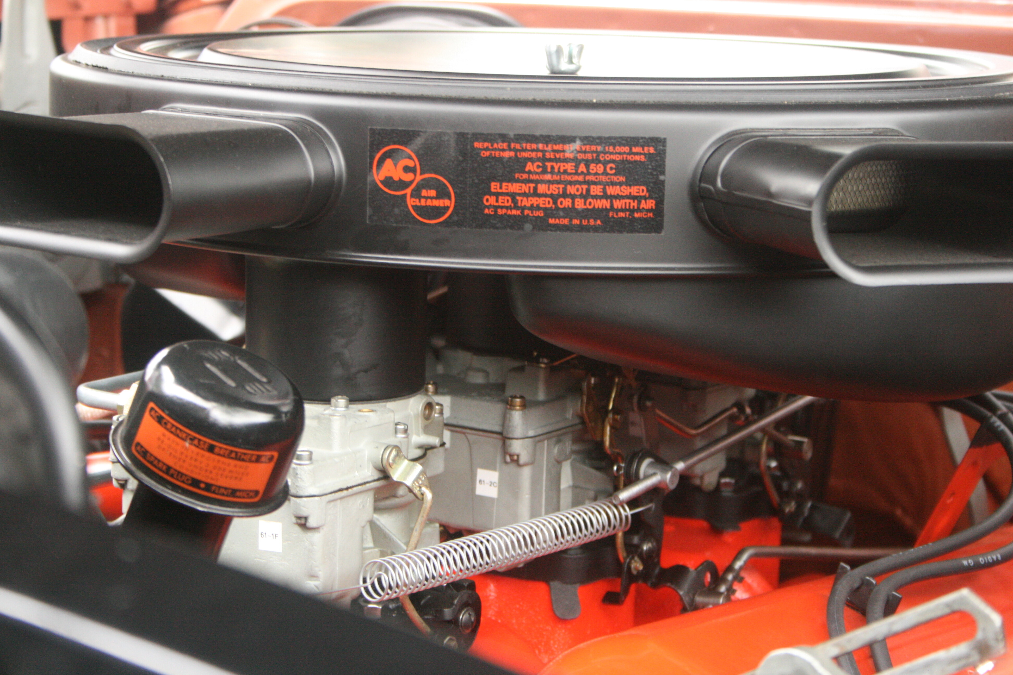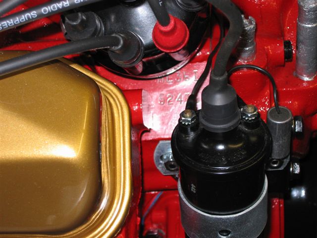 What makes this side interesting: 1) ULTRA RARE exhaust manifold with heat tube 2) WHAT A B**CH, but choke heat tube from manifold is correctly routed 3) Coil mounting bracket MOST RARE of all items! 4) Nice correct little red boot on #1 plug wire