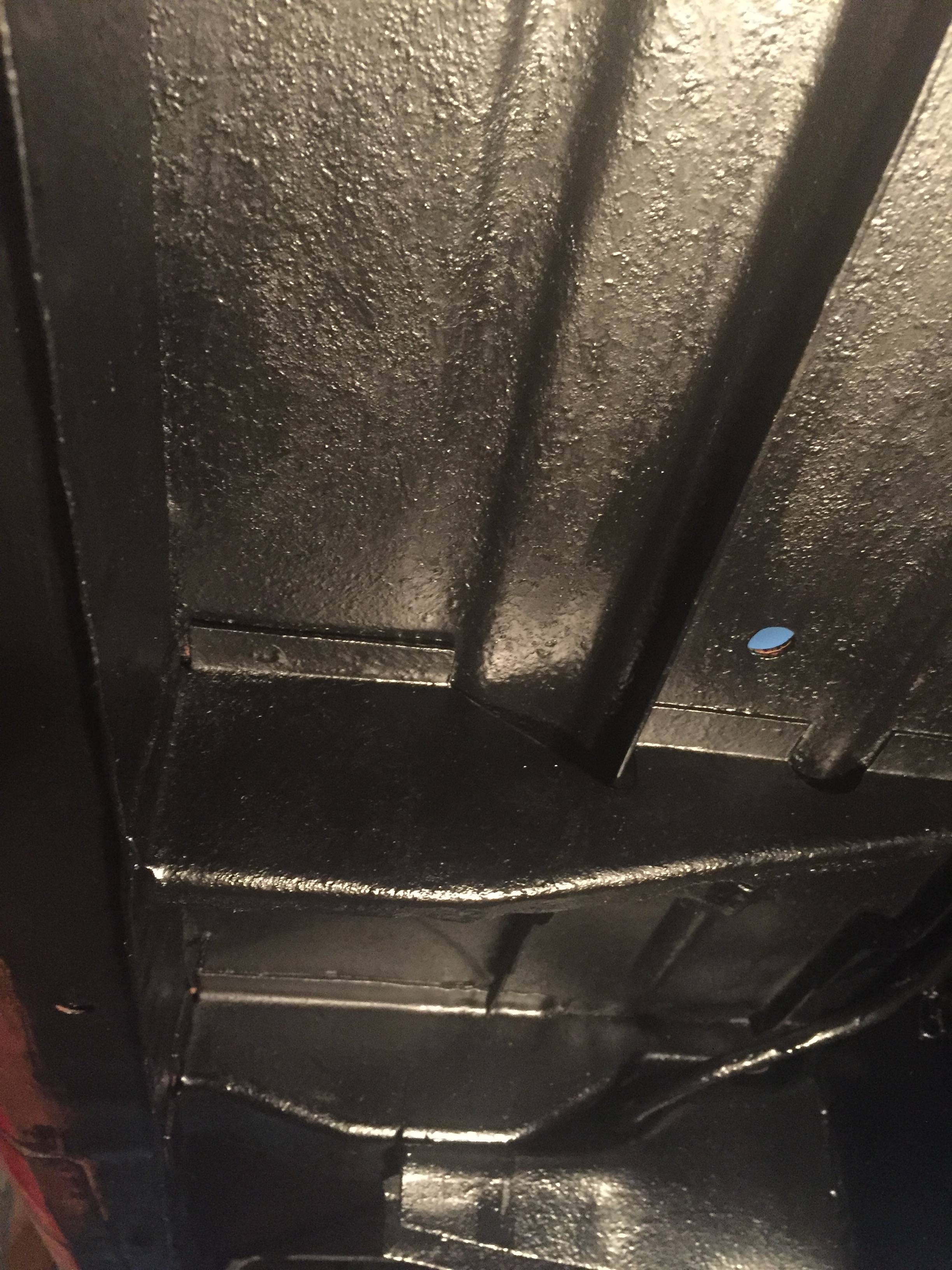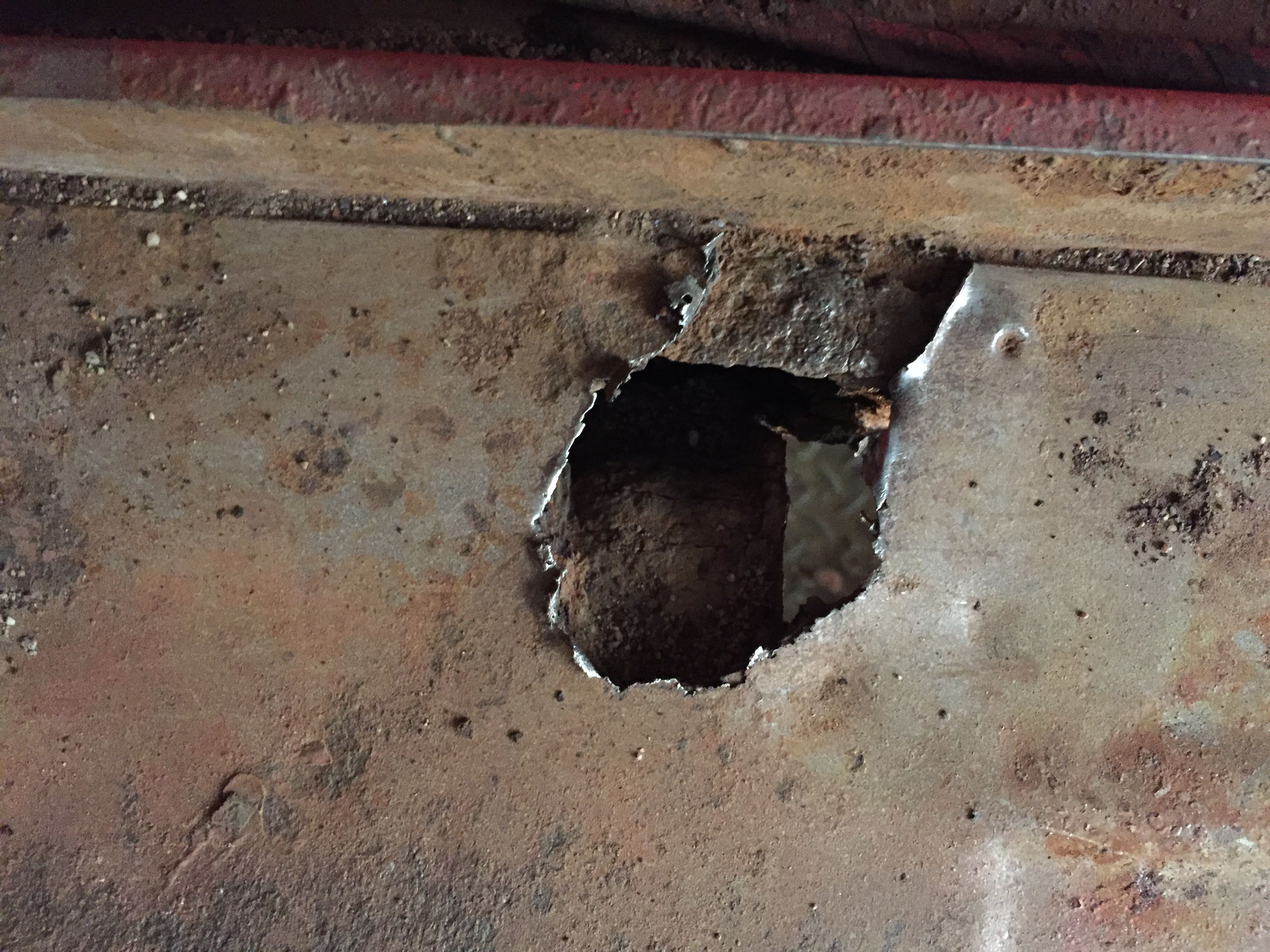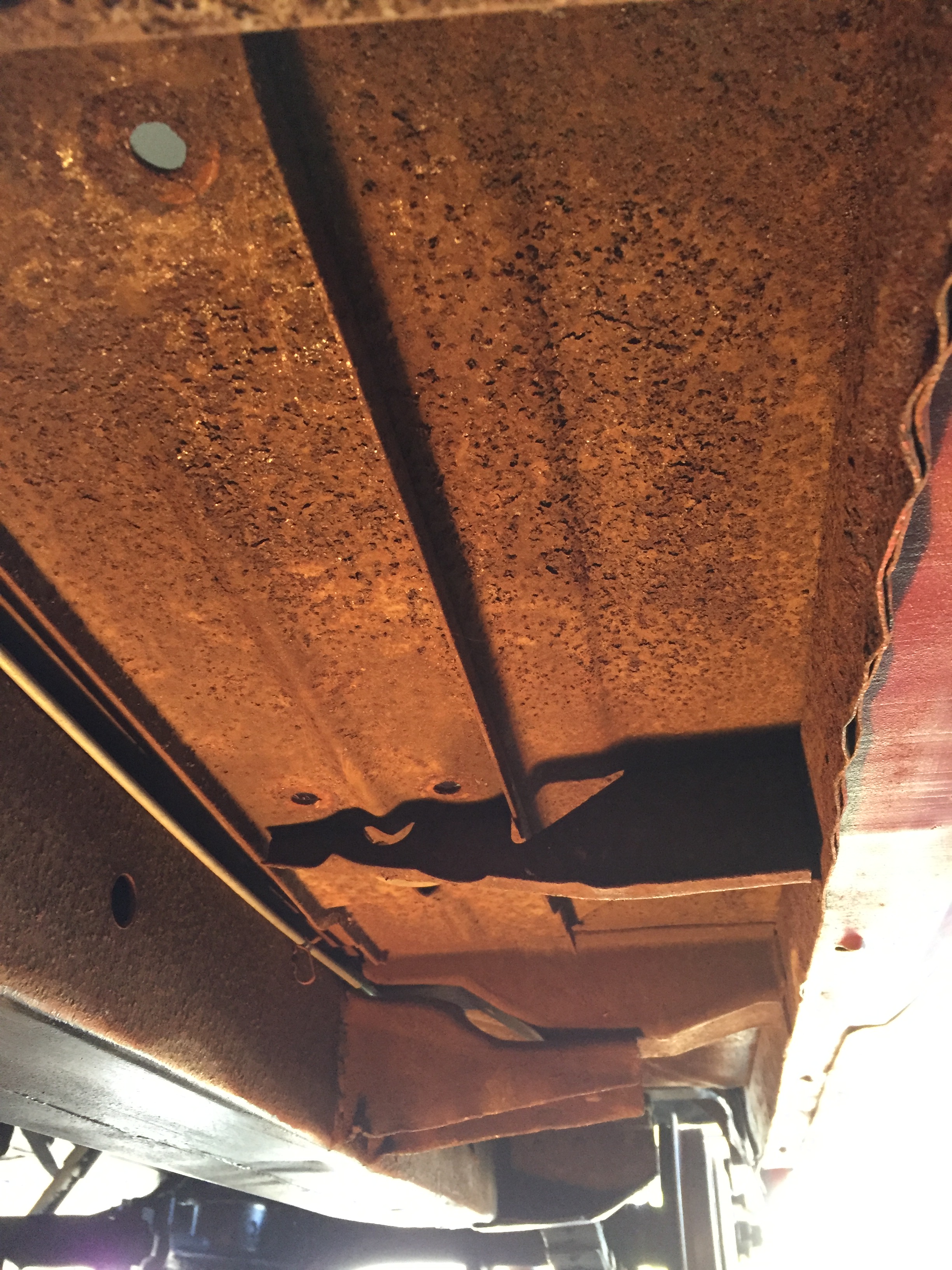 Two silver dollar sized holes in the floorboards, each side, right above the reinforcement brackets underneath. Everything else seems very solid. I’m thinking about cleaning up the perimeter, rustproofing some shim stock, and JB Welding to the floorboards. Other ideas?