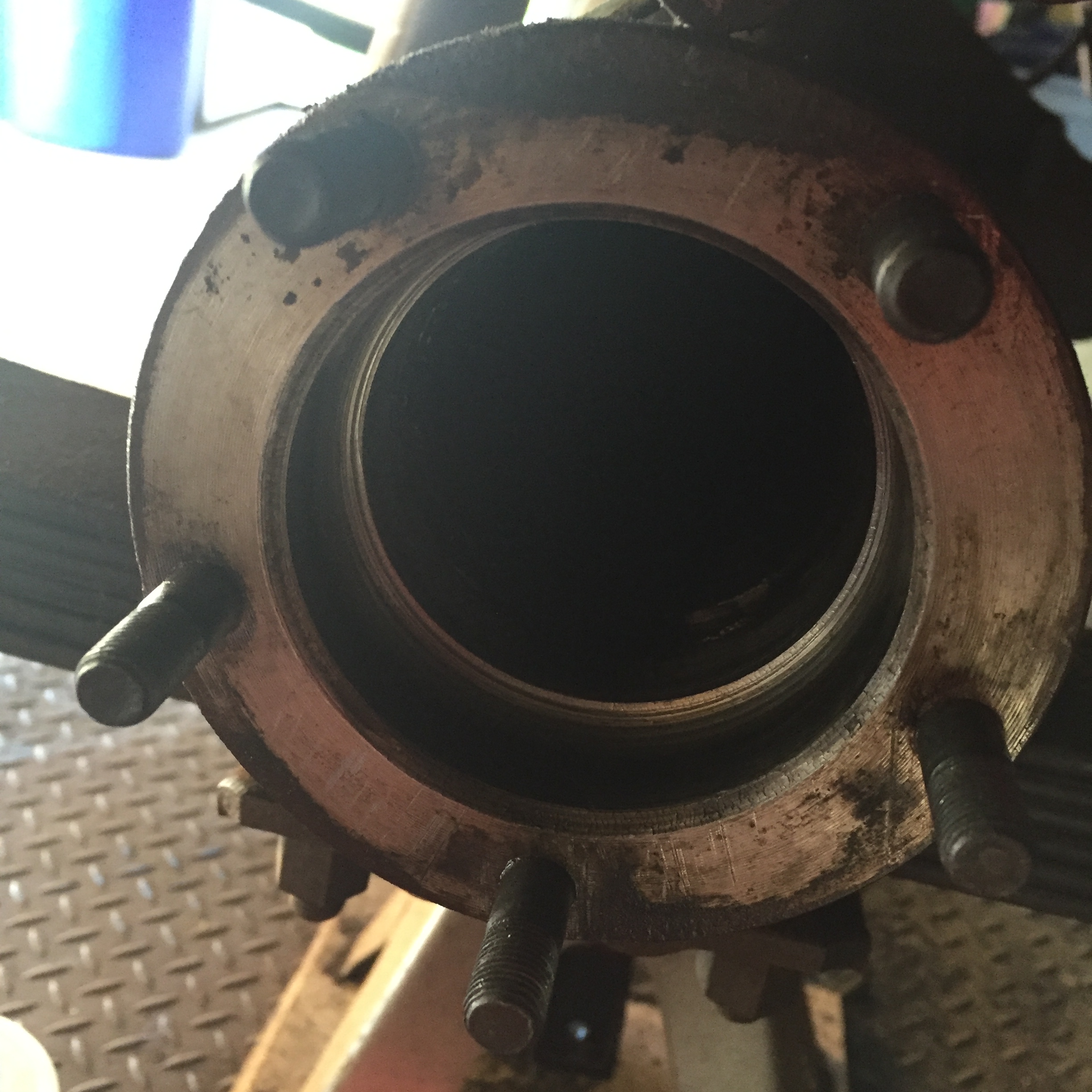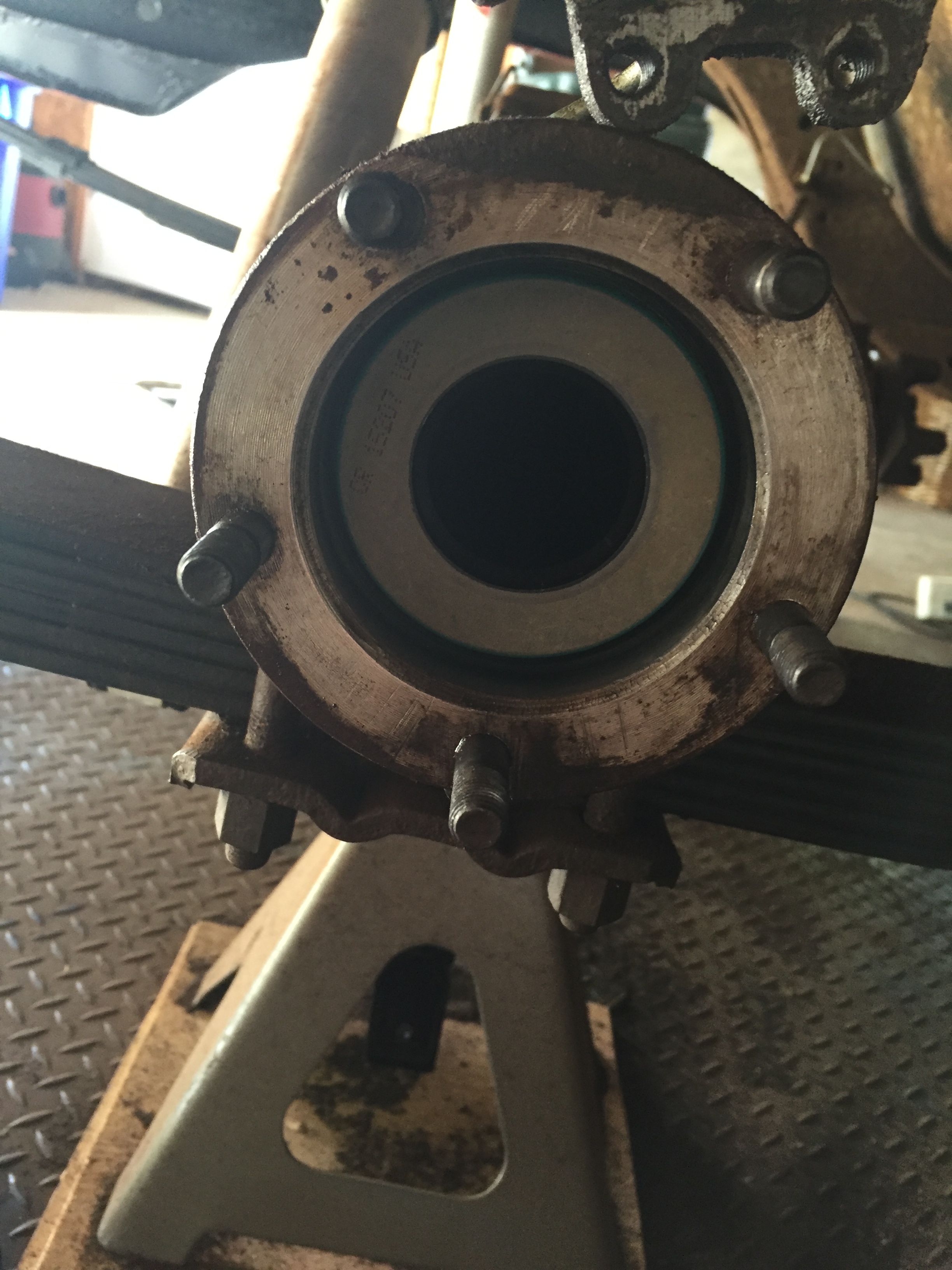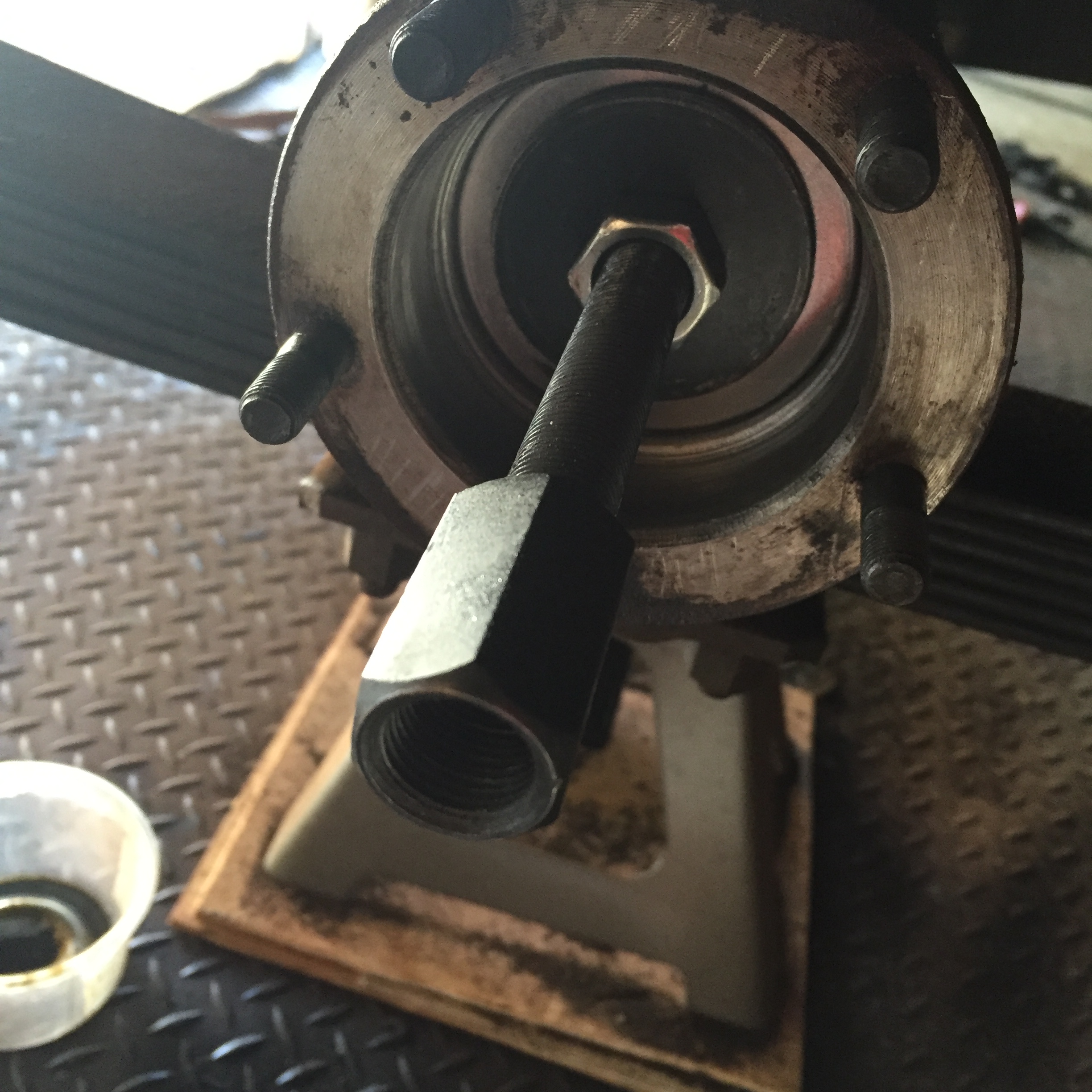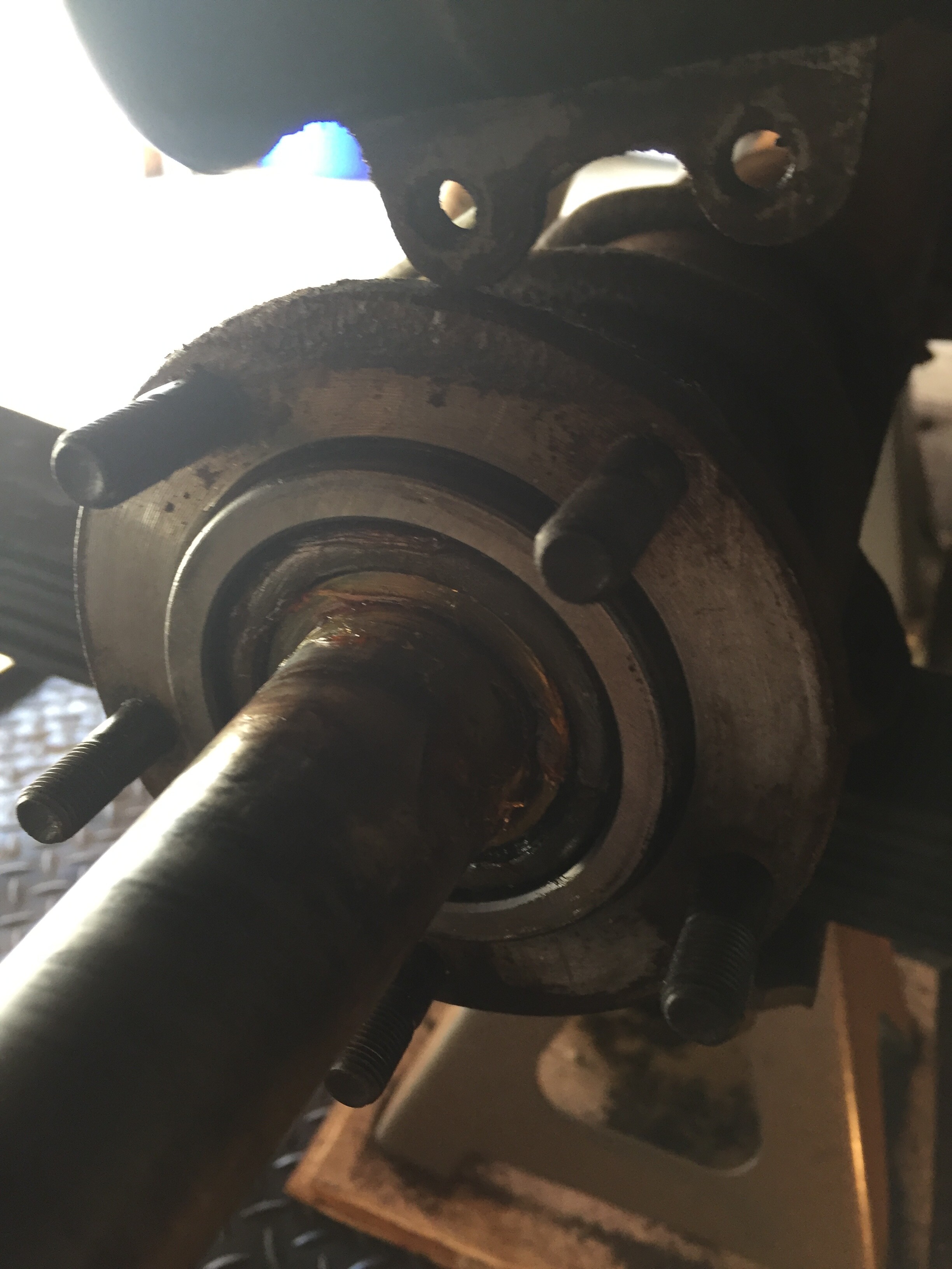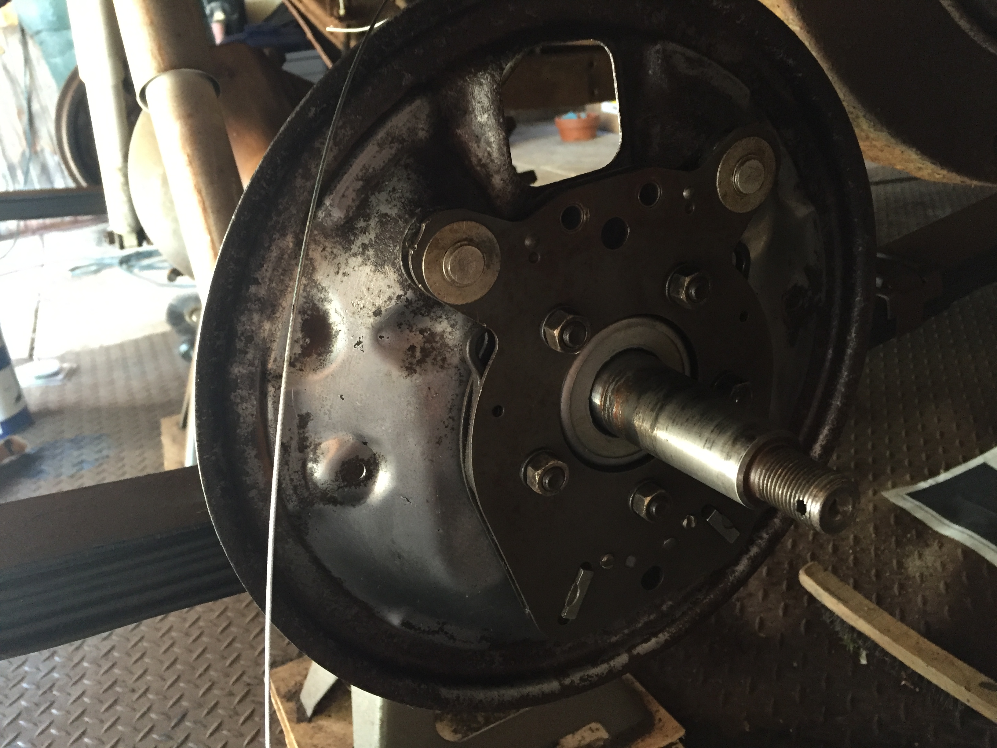 Backing plate and shims in place, i went every other nut around the axle, giving a turn with the socket wrench, and snugged up the nuts. The axle turns freely, with no perceptible end play. Noice!