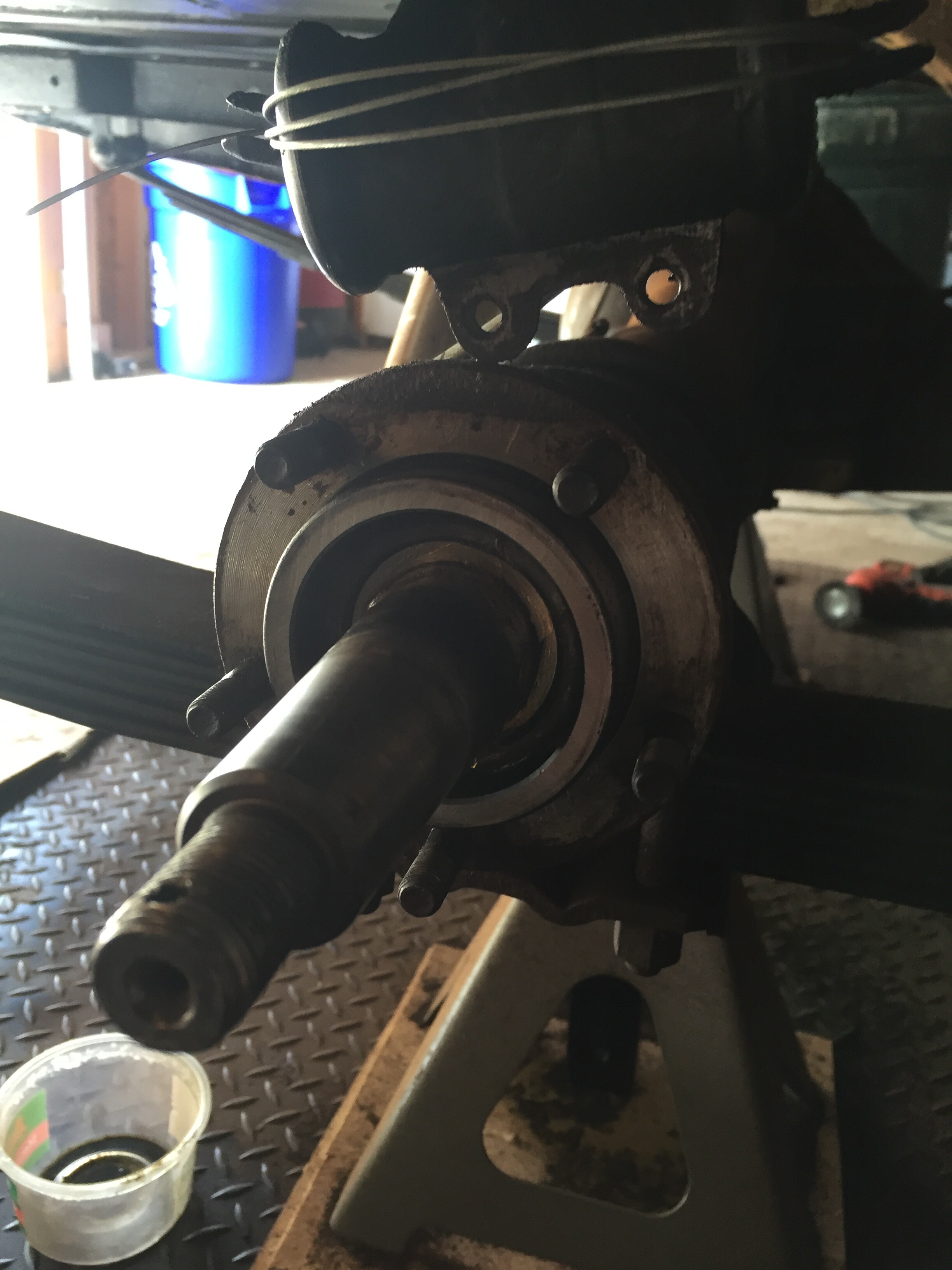 I decided that the bearing was OK, I packed it real well and set the axle back in place. And if it ever fails, it will be documented in this thread that Dr. 59 recommended I replace it. I put the race in place, and with light taps, set the race partially in. As suggested in the article, I would let the backing plate with the shims push it in to the right depth.