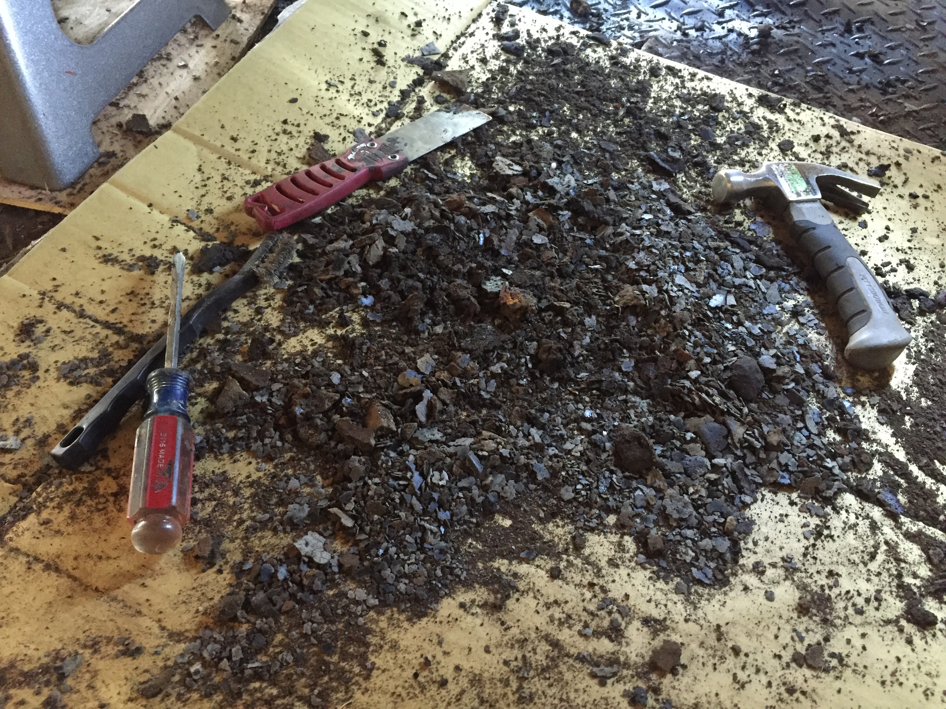 Here’s the pile of crud that came raining down. This is not all of it - some remained on me
