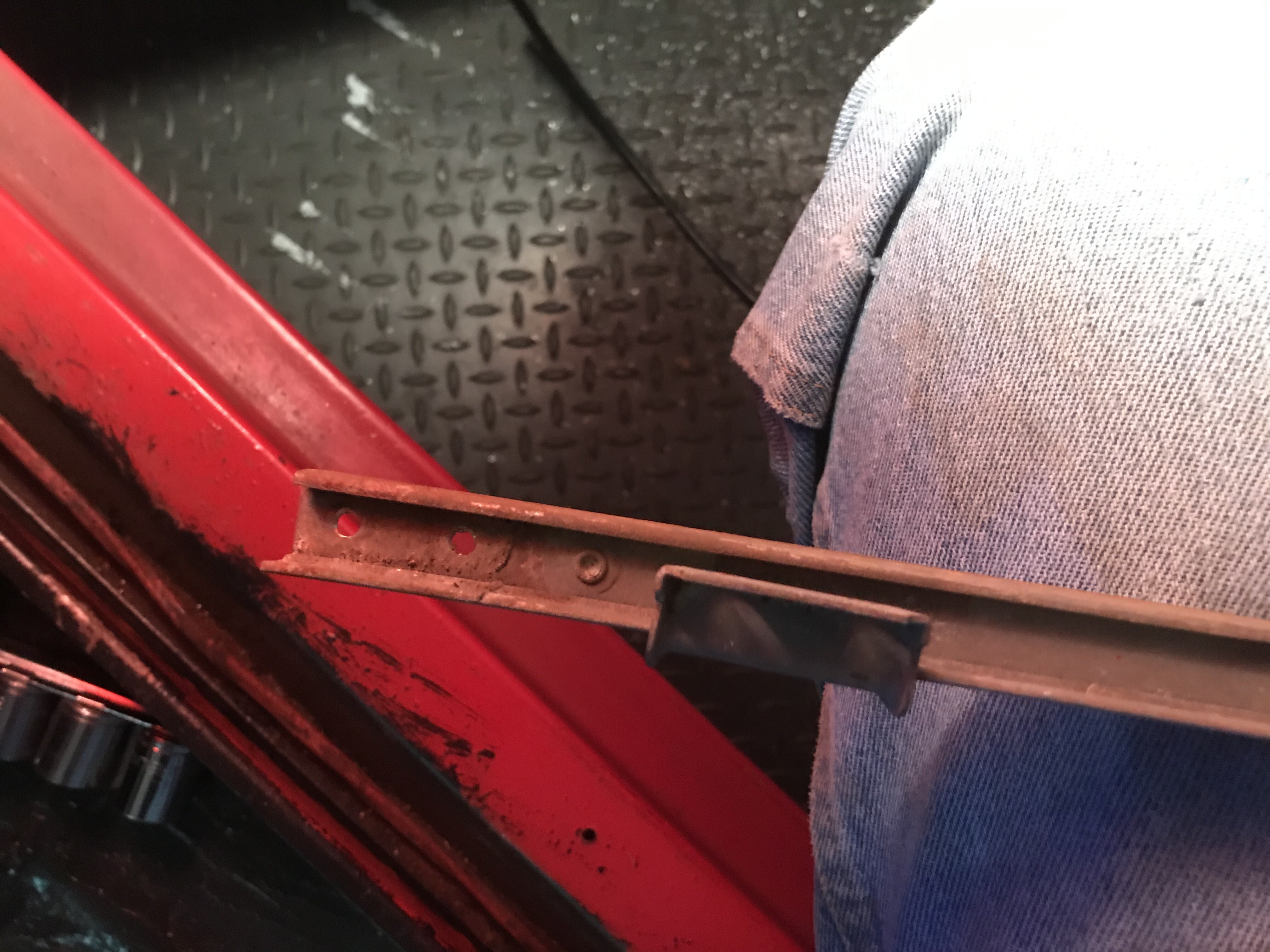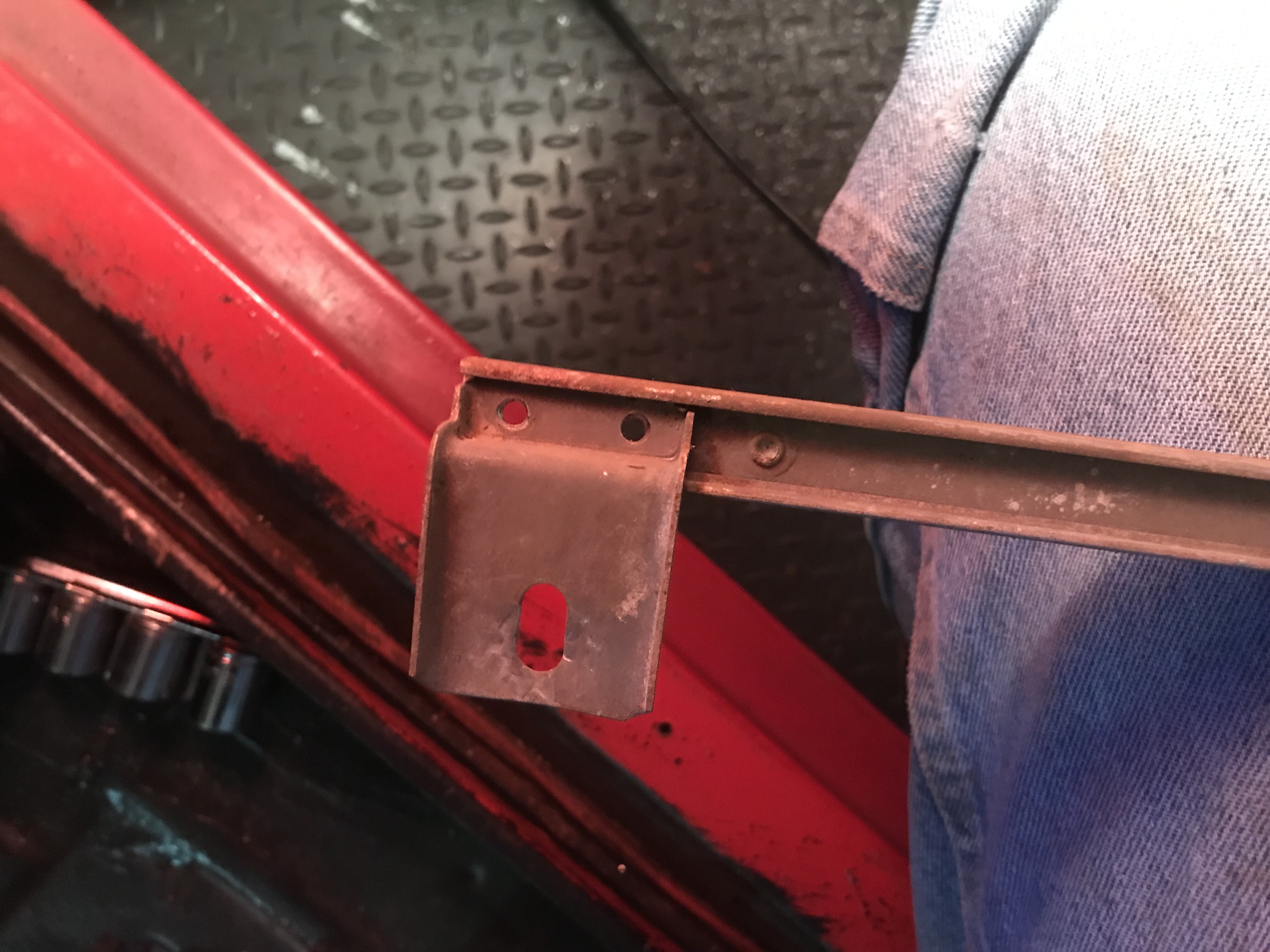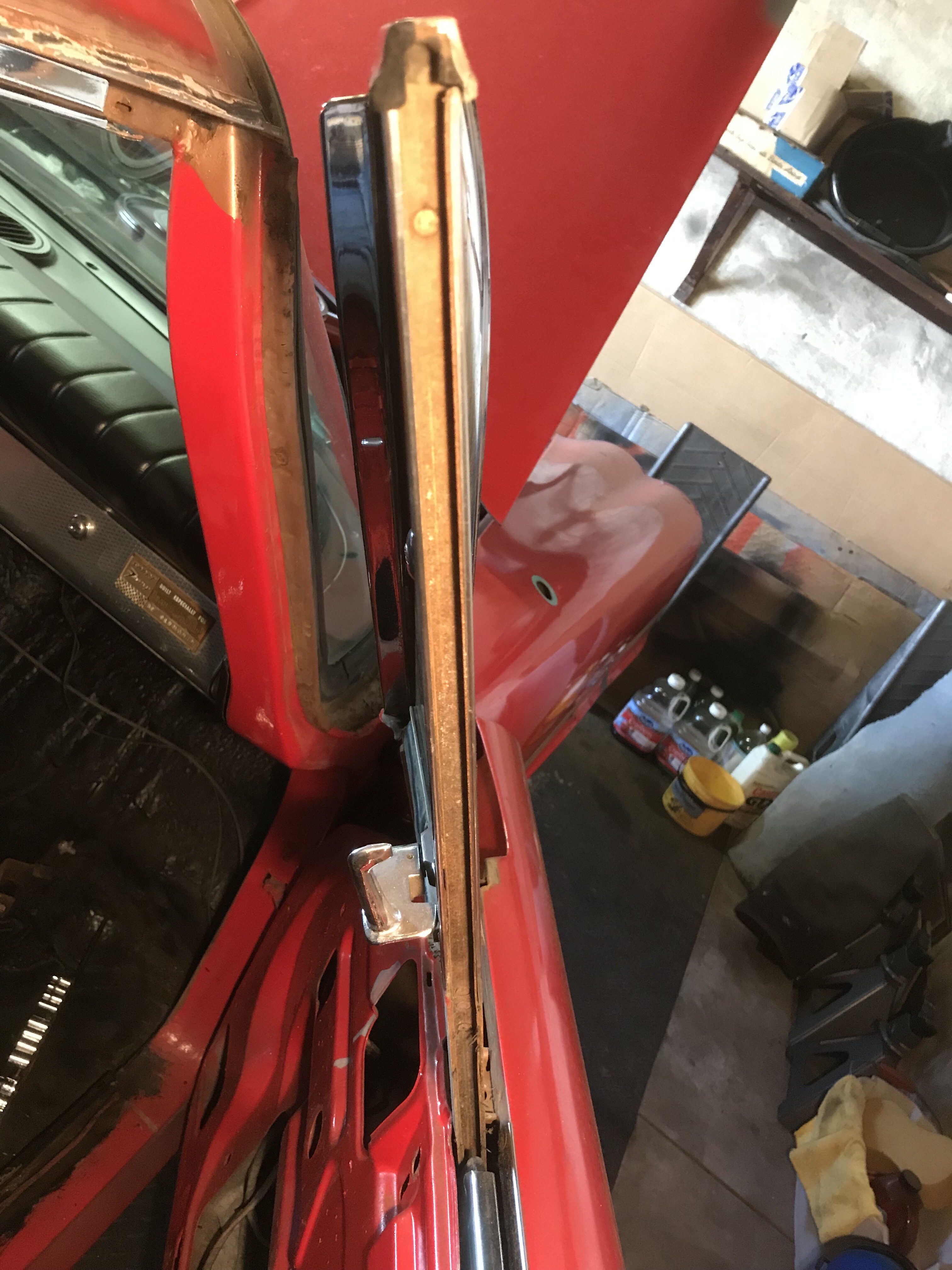 That’s the ticket. I was able to fenagle the strut to an opening in the door where I could drill the pop rivets out - the bracket actually slides into the strut. Vent window out, channel in, and that doo-hickie for the very top of the channel that I bought 15 years ago from Gary Goers is now in place.