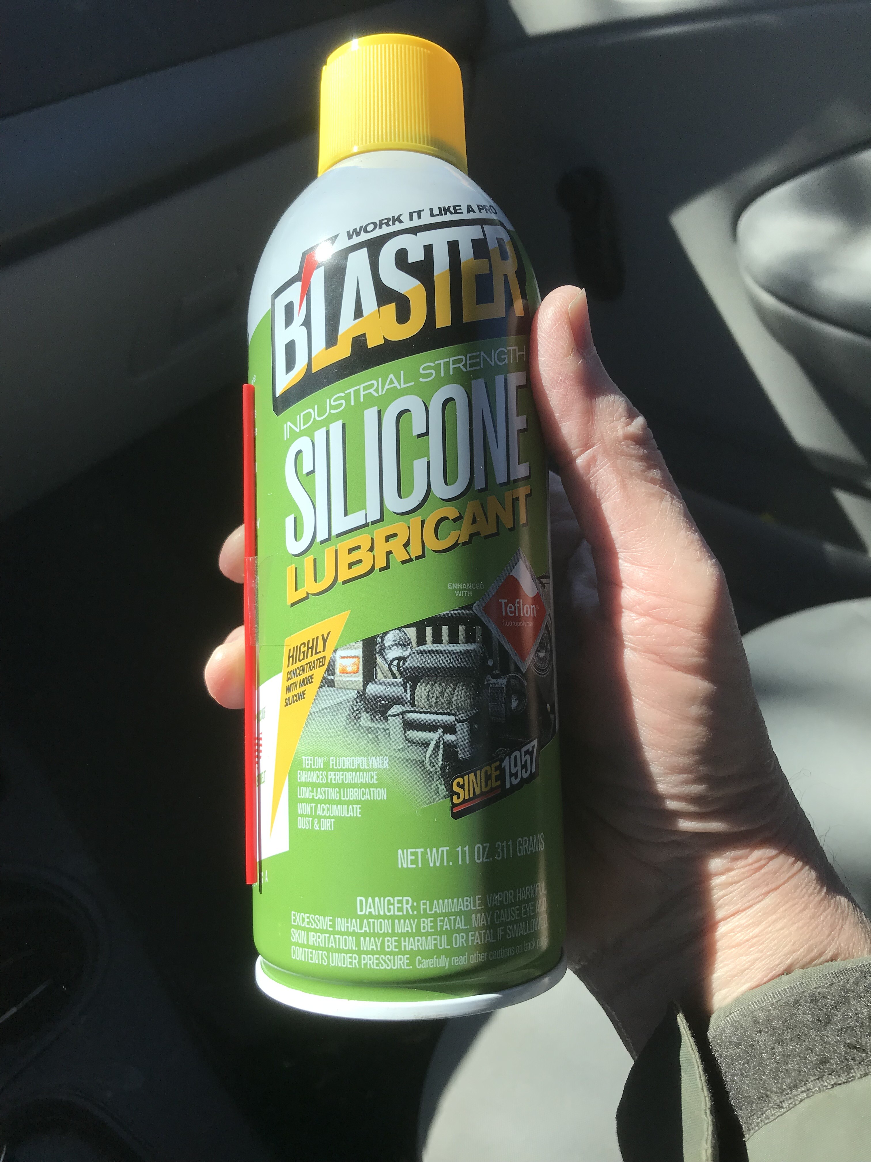 See, this is why I do everything Dick tells me to do. I used this stuff - it foams up so it doesn’t spray everywhere, then quickly de-foamed and soaked in. Now the window goes up and down like a charm! (I fumbled the video, I’ll take another one and post here.)