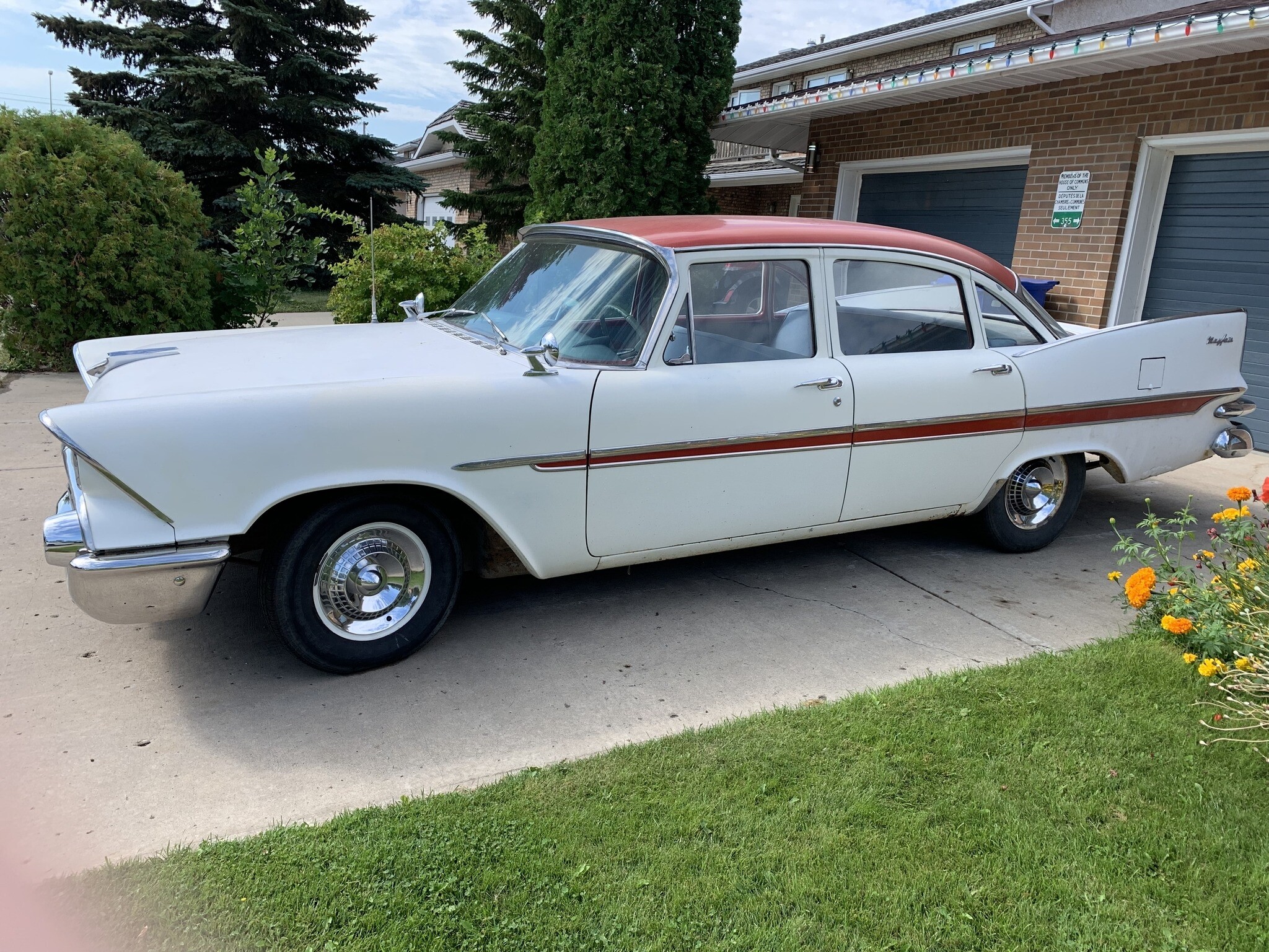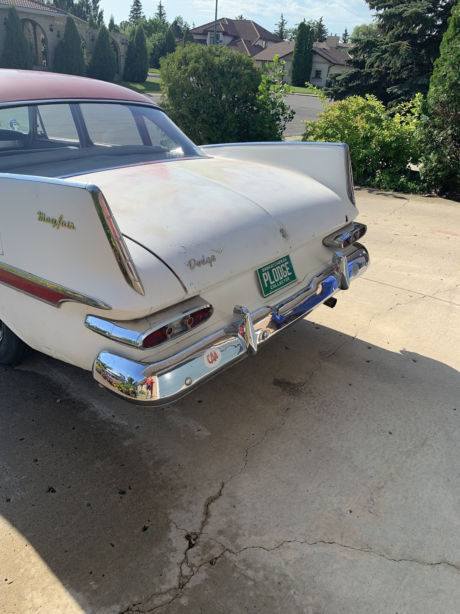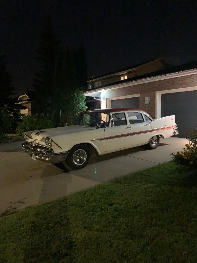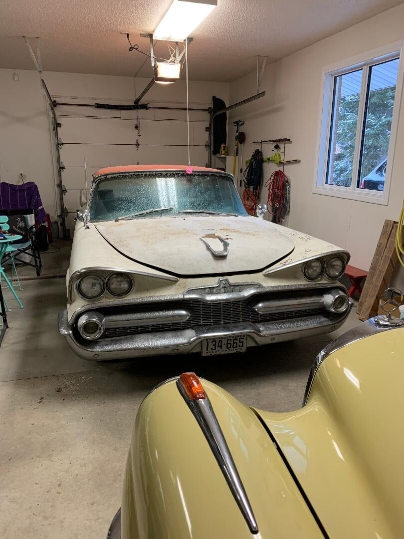 It’s a Canadian model 1959 Dodge Mayfair. If Batman had kids and lived in the 'burbs, this is how he would roll. Anna won’t let me paint it Black and put bats on the door 8^(
