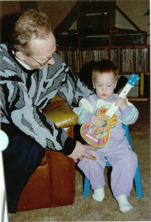 Wow! Another Birthday? It seems only the other day he was in his Lavender Jammies and playing guitar like a mad man…In fact here is a recent photo from today recreating that same moment in time! ![]()