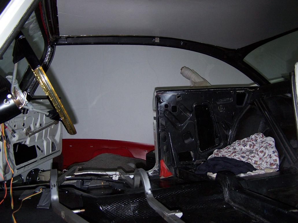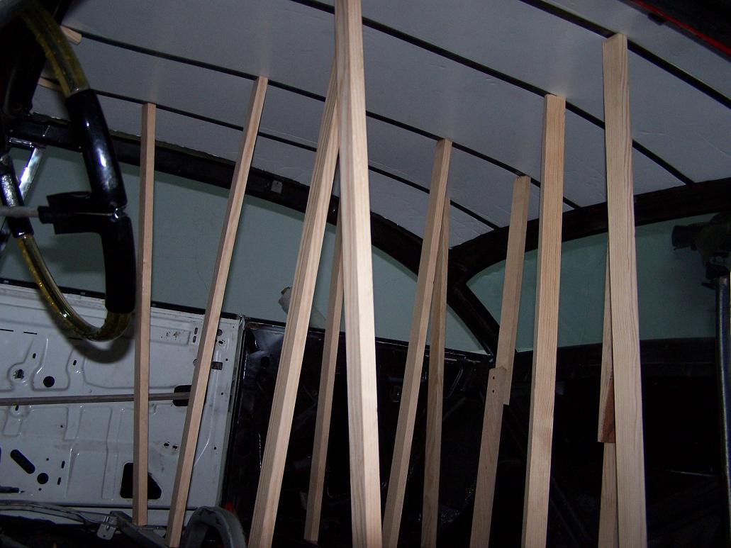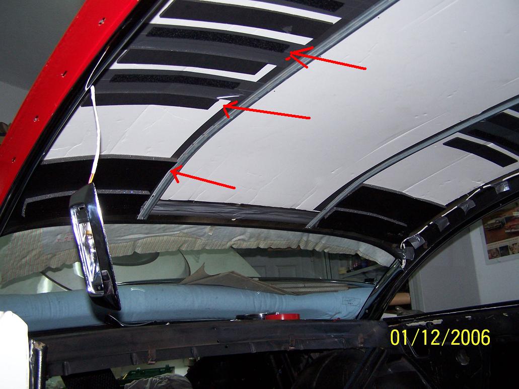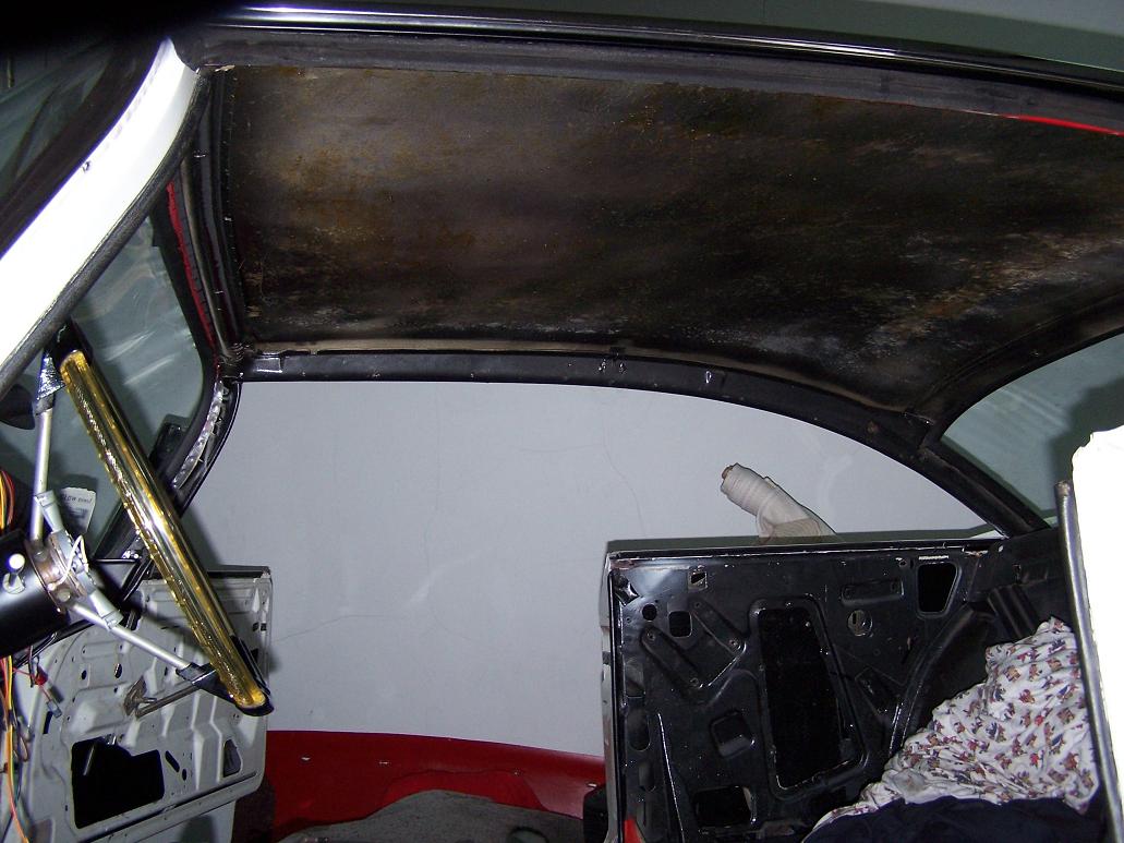 I called a headliner guy that was recommended to me. He told me to put the headliner back in! He wants to see how it comes apart. I told him, it was never in right to begin with… Back to wondering if I shouldn’t get some ABS panels and redo it myself; I have the material I want to use. But I think I’m going to leave it to the experts, and put it back together as he asked – using the rechromed siderails, of course.