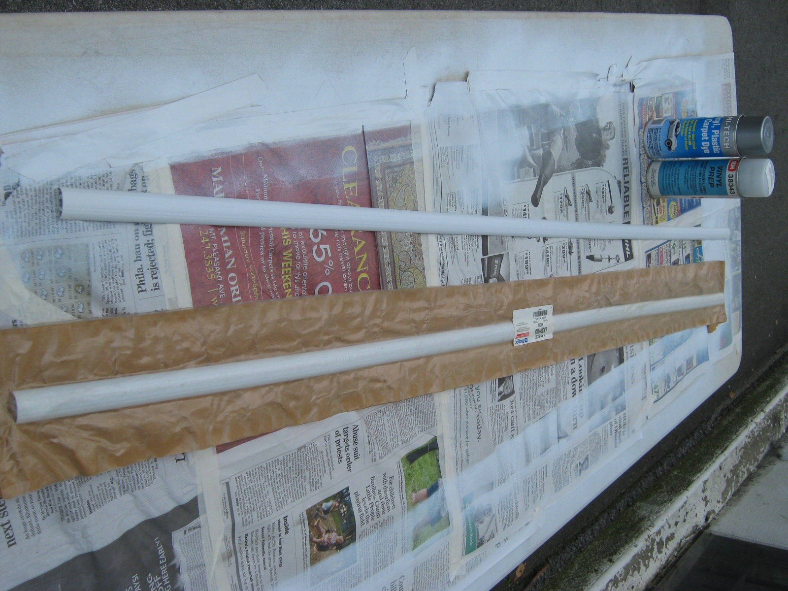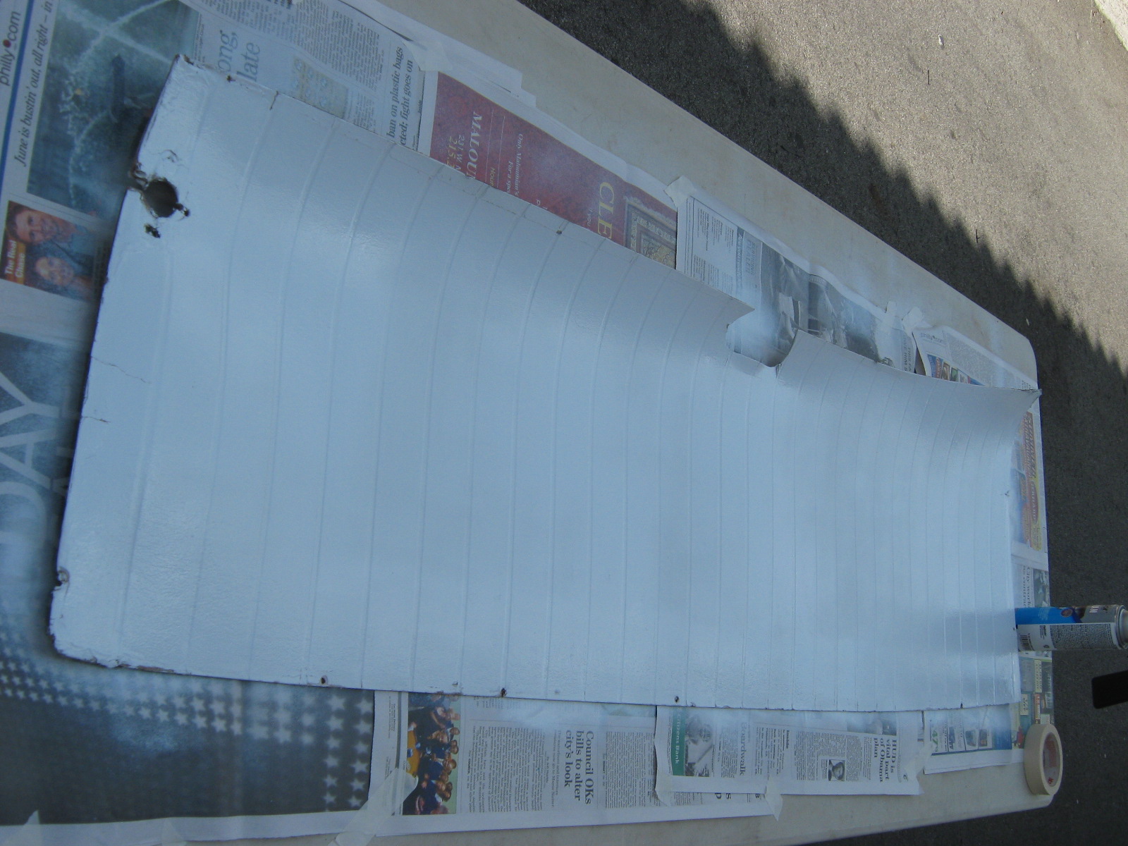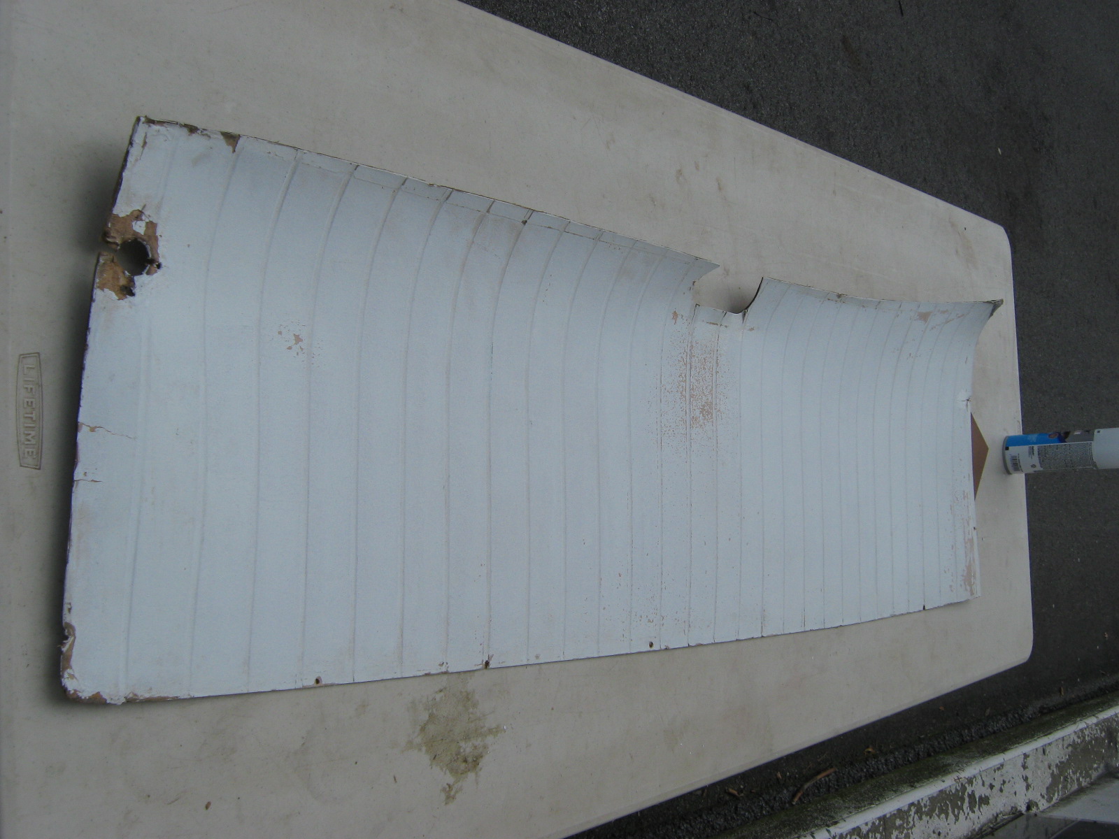 The panels cleaned up very nicely – here are some pix. All told, it took 4 cans of white spray paint – one for each of Ed’s panels, and two to cover the black ABS center panel. No need to cover anything with fabric – the ABS has a nice pebbled texture, it will do just fine until a perforated panel finds its way to me. (Anyone looking for some perforated headliner fabric, let me know – oh yeah, I got ABS too!)