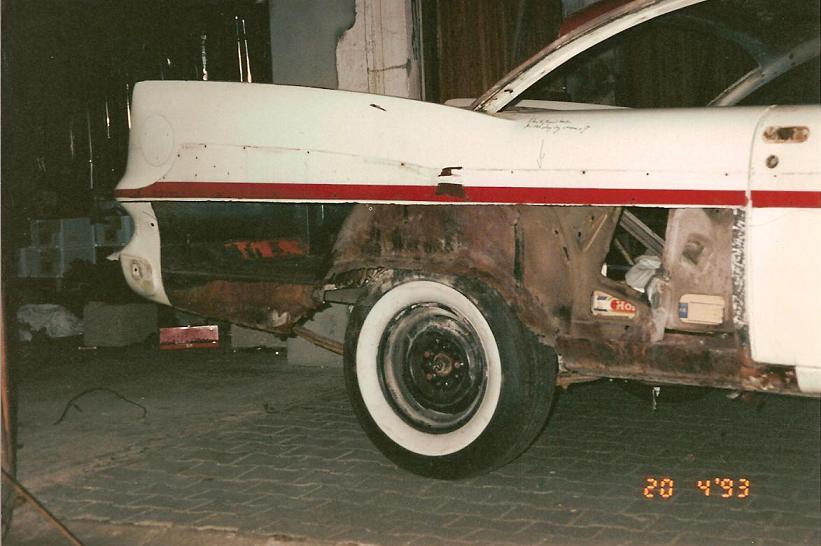 Here is a pic of my nearly completed chassis, along with five years or so of dust. Also, a pic of the donor body for the convertible where I have stored it. —John