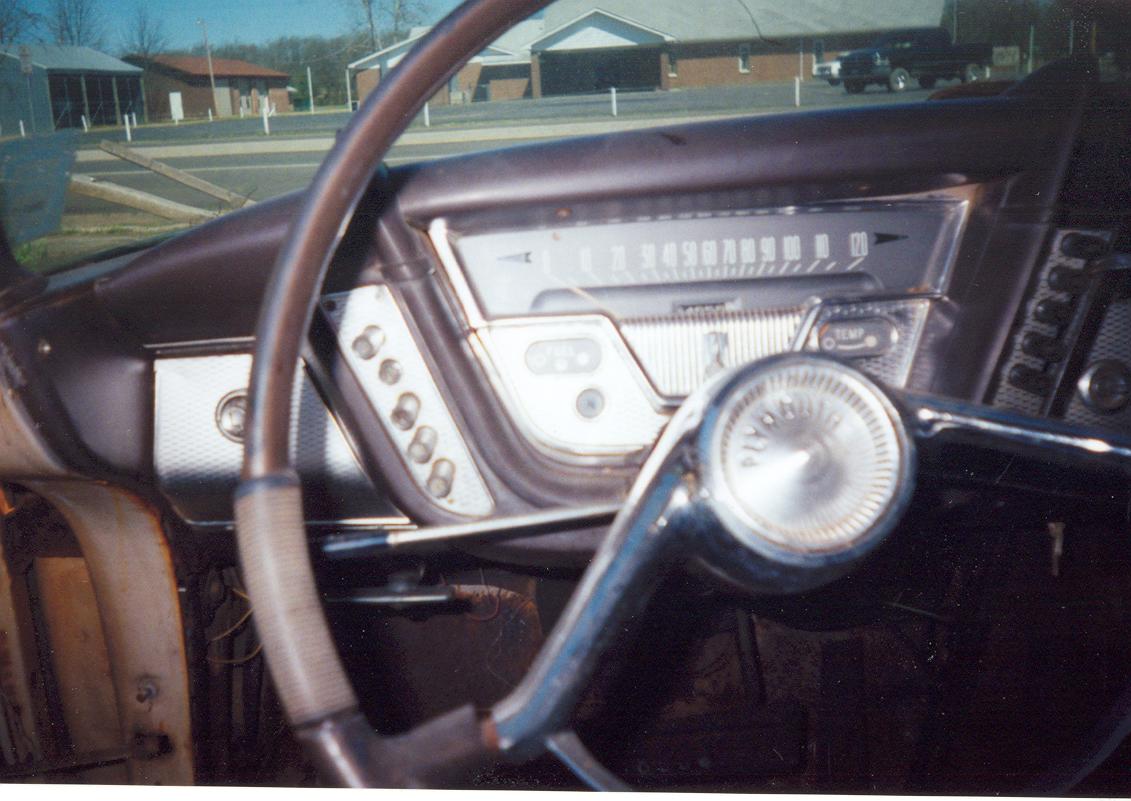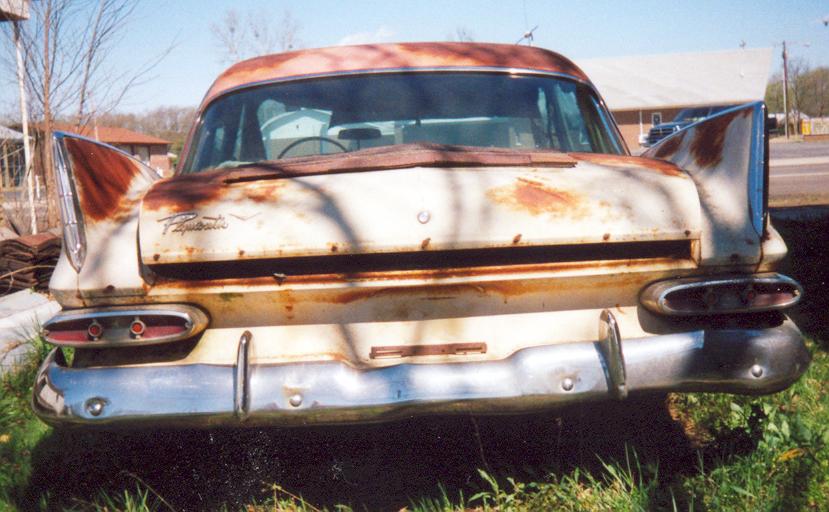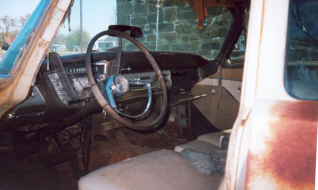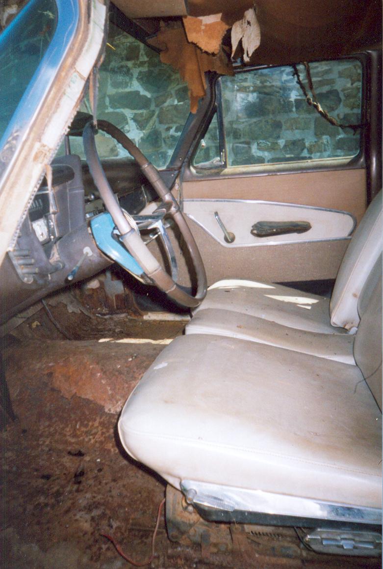“My Fury was delivered on Wednesday (4/13/05), the same day I received the pictures. I’m real happy about fixing her up. The Fury had originally come from Oklahoma and had been in Arkansas since at least 1973. What amazes me about it is that most all the engine and tranny parts are still on the car. The interior is pretty good for a car that hasn’t exactly been the center of attention. Last but not least is the fact that all the glass is in great condition, no smoking or cracks. In the picture the engine looks incomplete, but some of it was in the trunk. The engine is a 318. This is definitely a fixer-upper and I’ve already become attached to her. I have a 72 chevy short wide truck and thought nothing could compare, well I was wrong. Finally a 59 Fury, a four door but that’s more room for my family to enjoy the fine craftsmanship of Plymouth with me.”