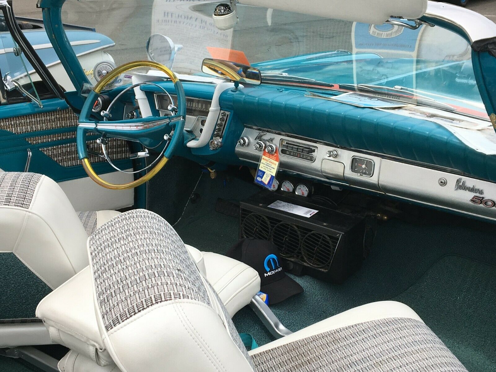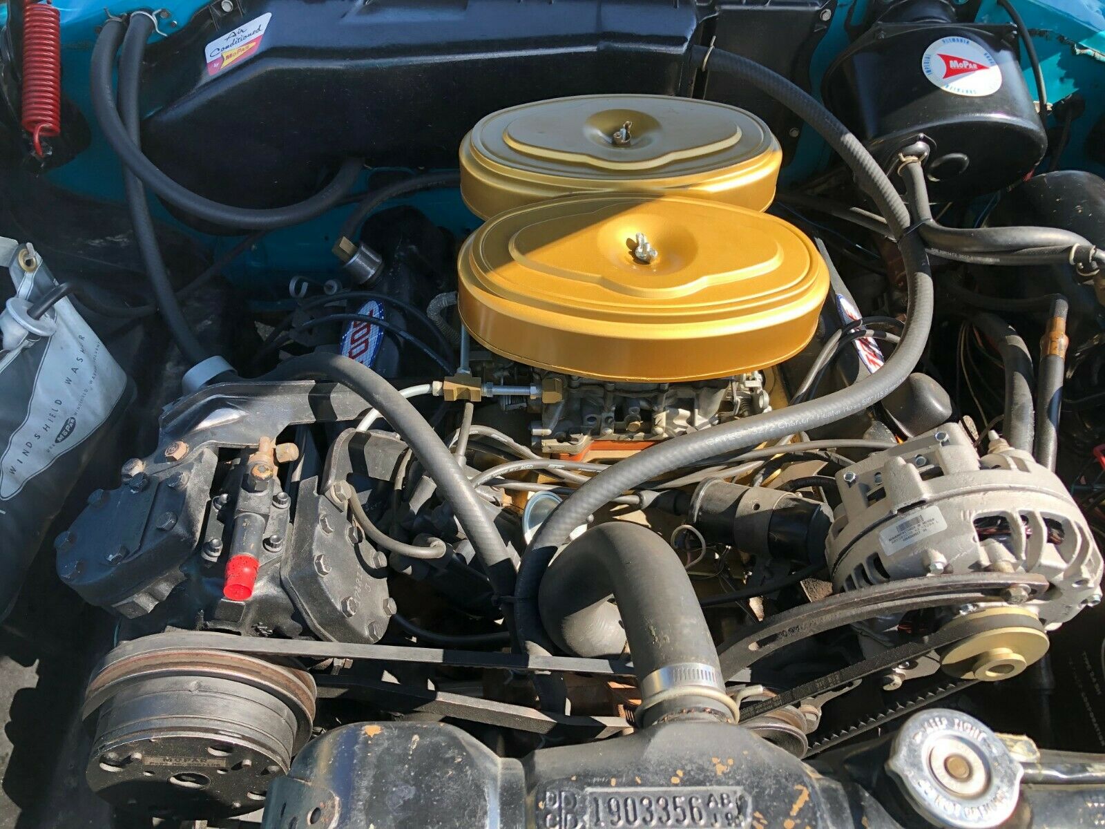 The Belvedere was my first attempt in restoring a car and is far from being a #1 car, I would say it is a strong #3 car. I was going to do a repaint of the car this past winter but a foot surgery kept me off my feet all winter. I do have and will come with the car a gallon of Turquoise base coat paint. The car has been up and running fine for 7 years now. Normal weepage of engine oil and Transmission fluid is there, that is typical of 60 year old cars. The car shows well at car shows and local cruises mostly due to the Fins and the Unique color of Turquoise is an attention-getter. Please call or email if you have any questions or would like more pictures of the car. PN3038 1555 60. Car is located in Arvada, Colo (NW Denver metro area) I just took first place in my class at the big Mega Mopar show here is Denver last weekend and took the car to Van Nuys, CA for annual Spring Fling show. So if you were there you wold have seen the car in person.