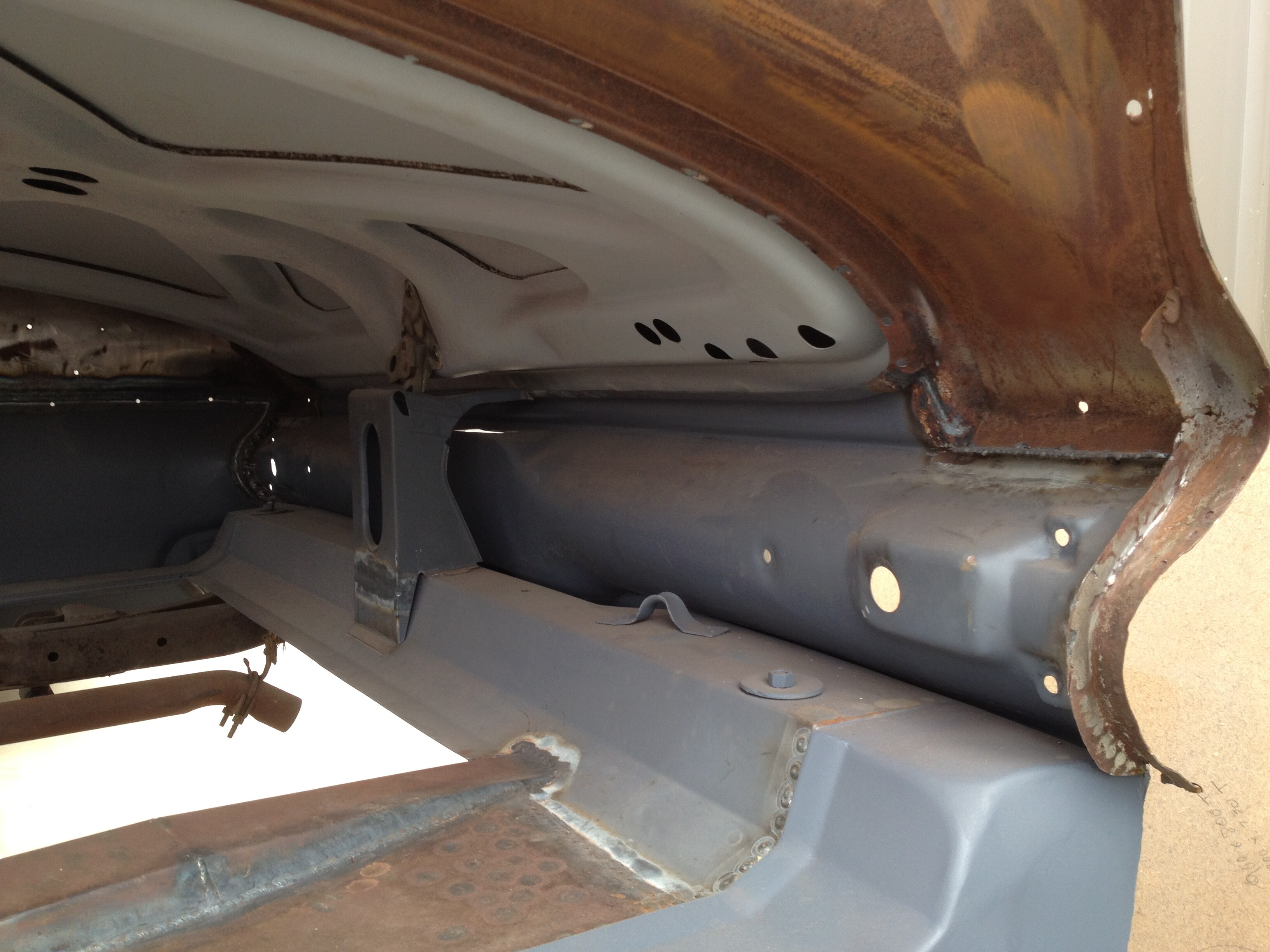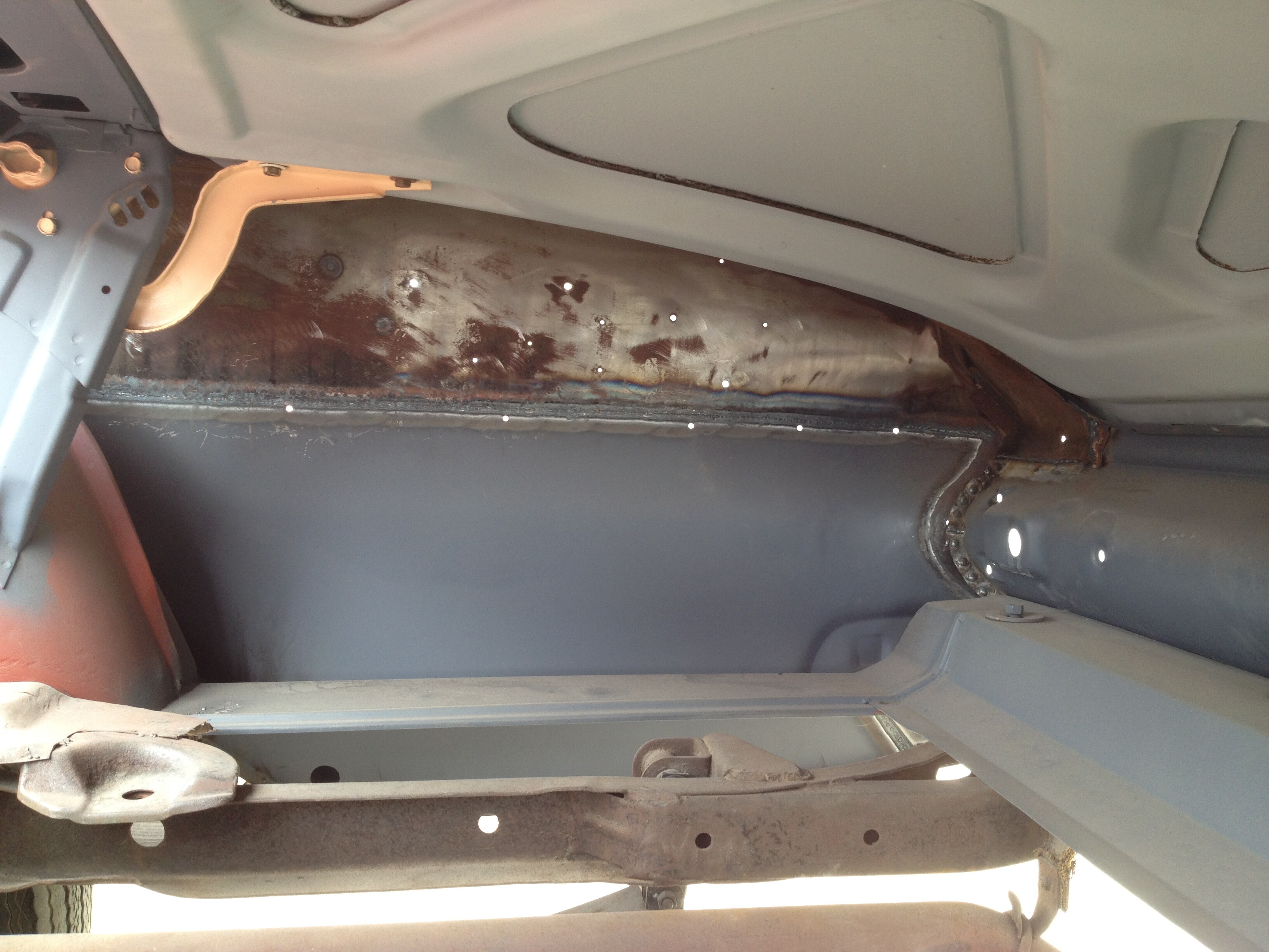 Victor - Great pictures of things to come for me on my Belvie Convertible. I love the detail, I hope you send a lot more pictures of the floor replacement expecially the brackets under the seat panels. Beautiful work.