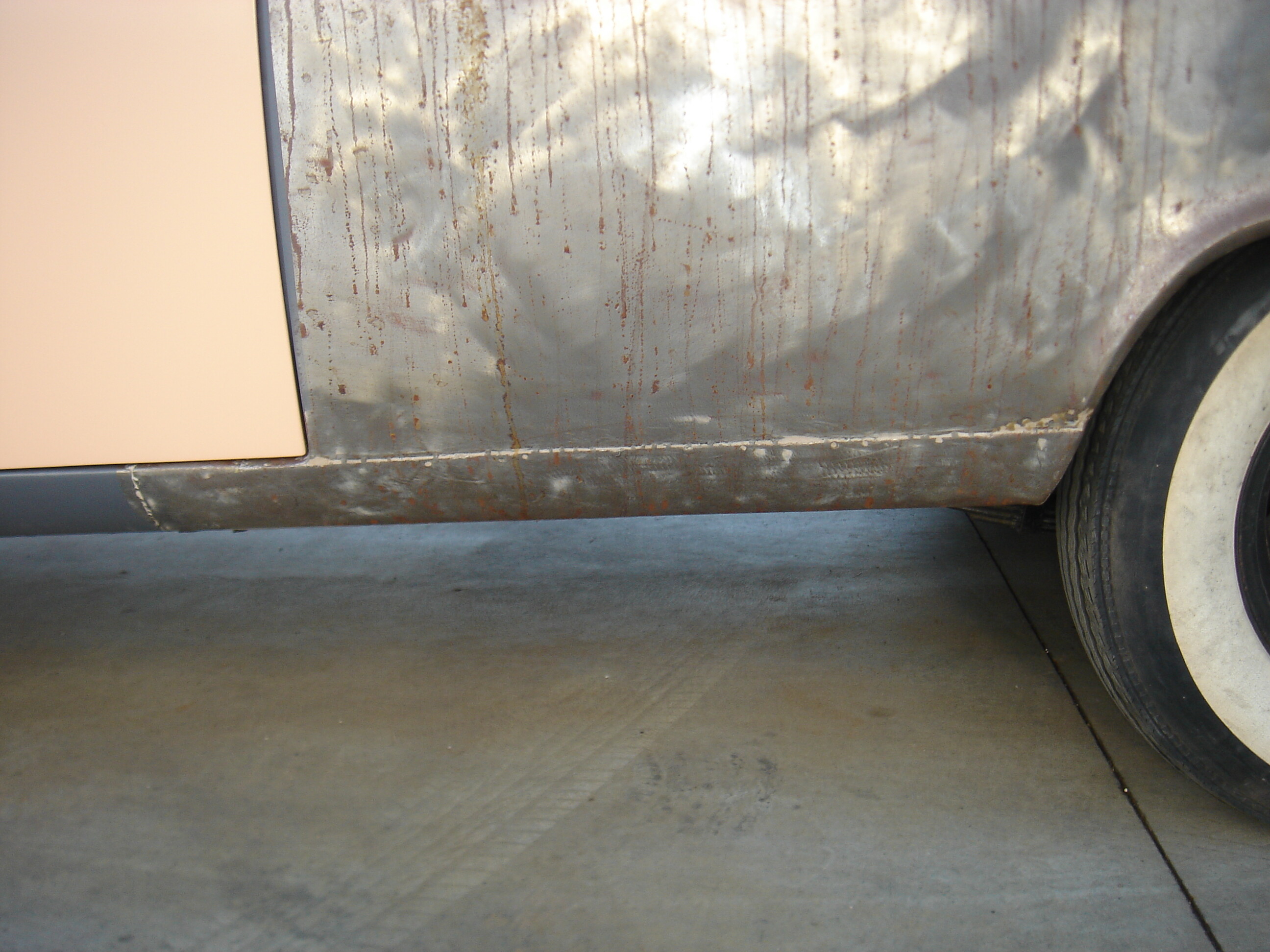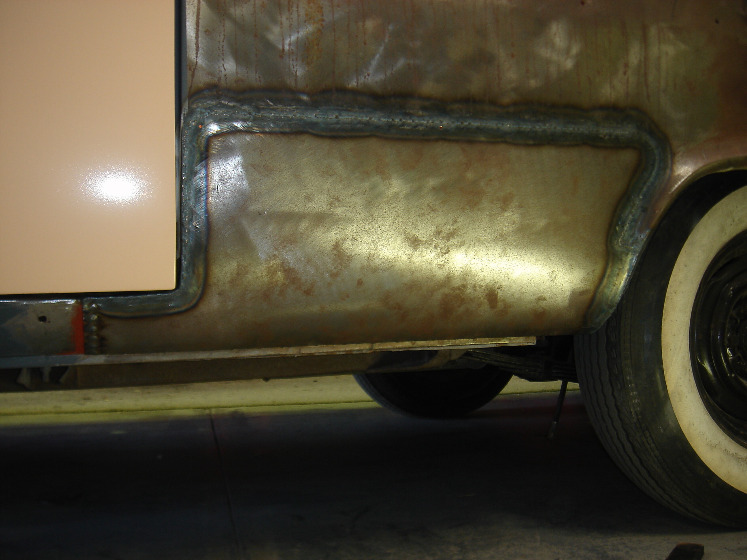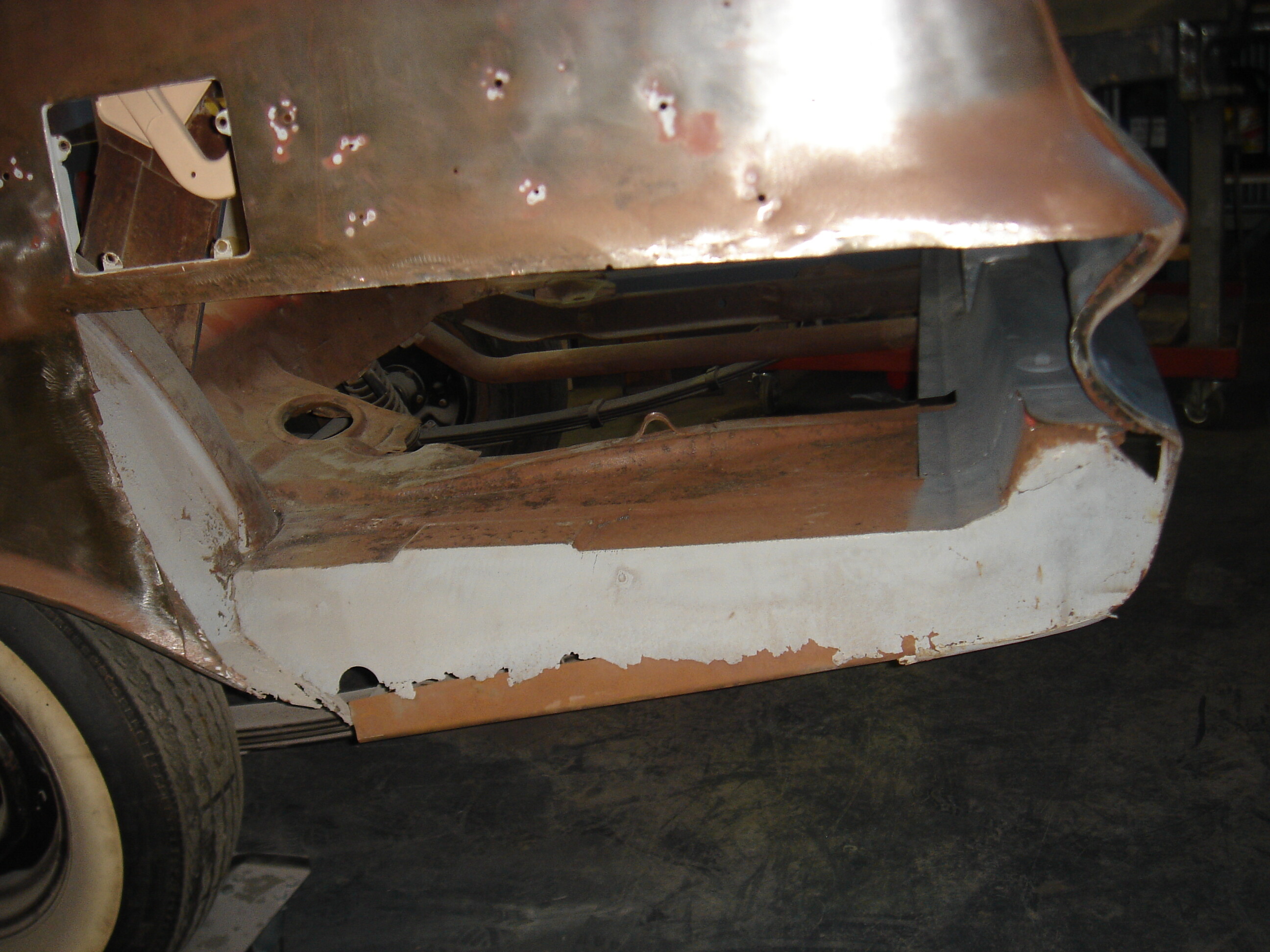 Wow Vic - I thought my 59 had rust problems. Your work is far more detailed than mine, an excellent job. These pictures will be most helpful when I get started on My Belvie Cvt. Could you possible get and send a picture of the inside drain holes at the bottom where the rear windows are. I went a little crazy with the seam sealer (DUH) and used it where the drain holes are, and I’m sure I filled them. My options are to try and dig the seam sealer out or drill new drain holes but I’m leary of drilling not knowing where they will come out at. One last question, where did you find your convertible.