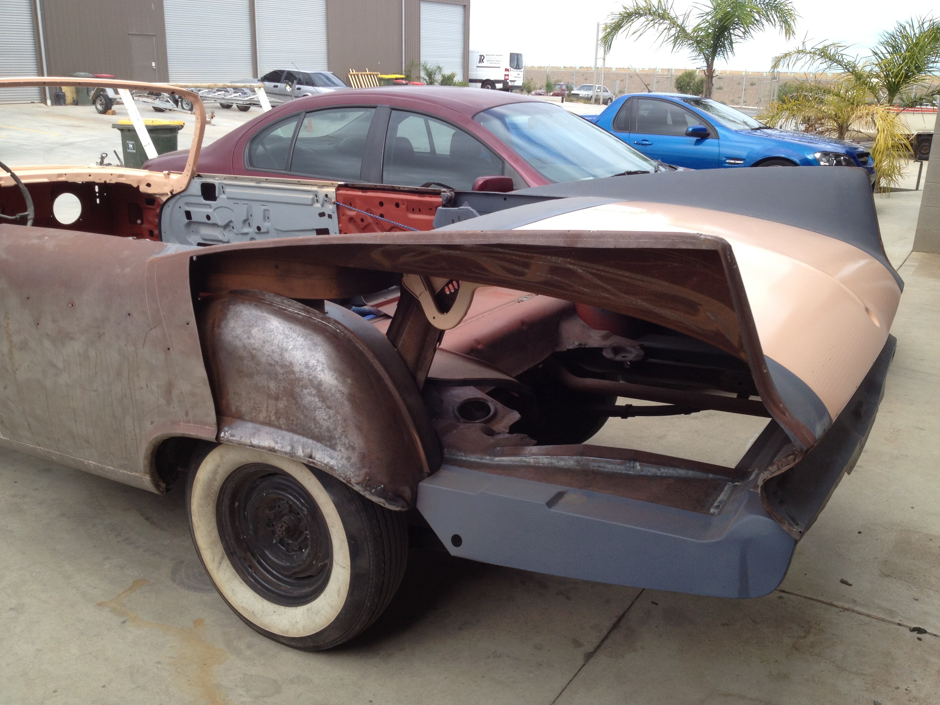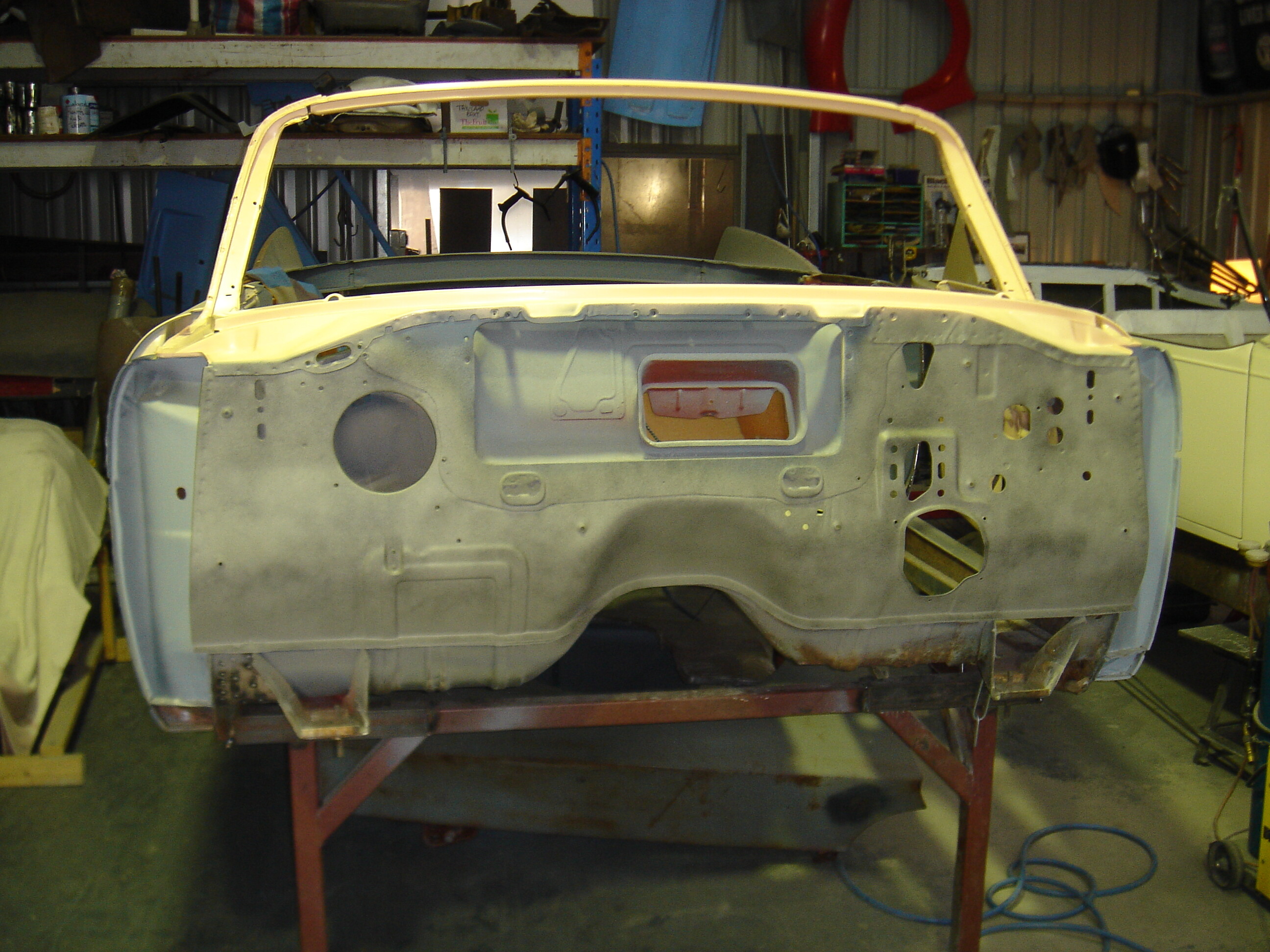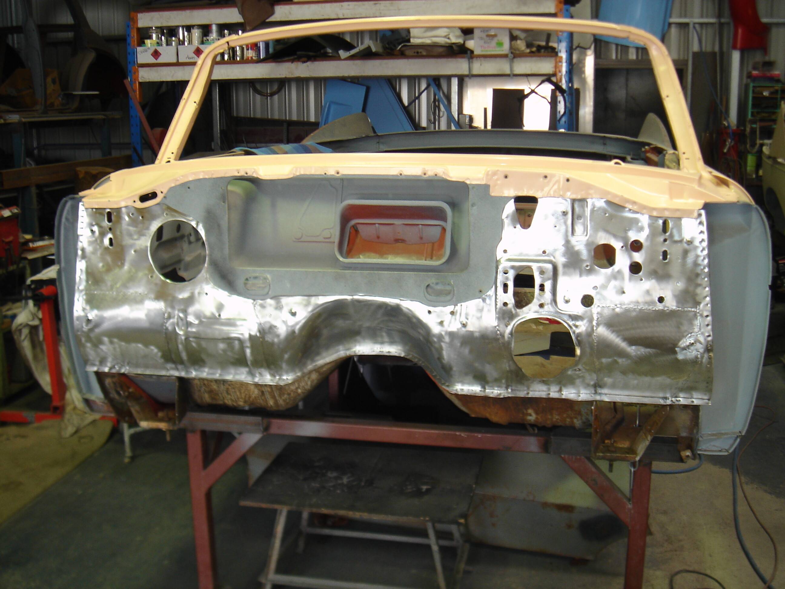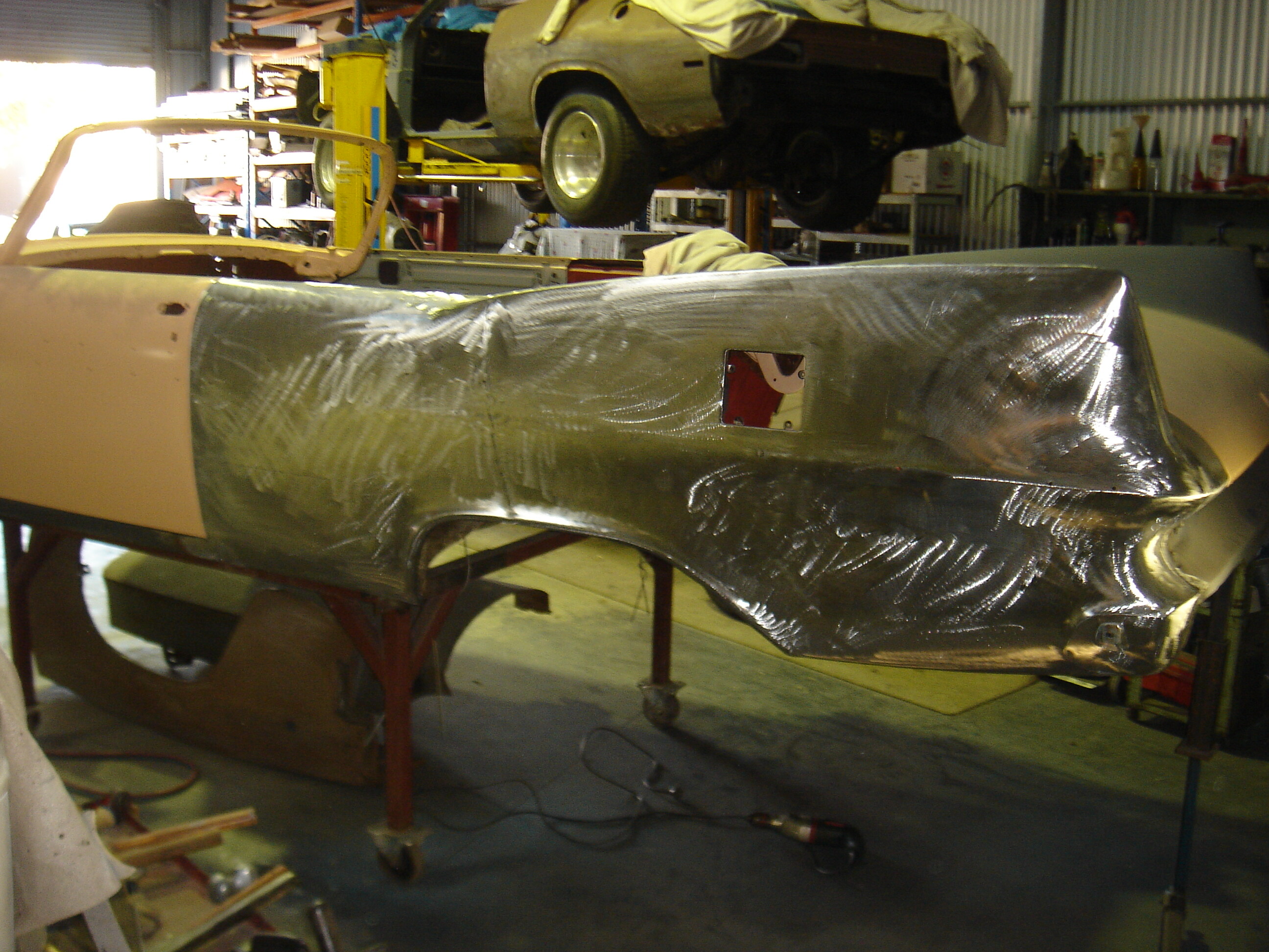 I aim to have a rolling chassis with motor and trans rebuilt and then brought back to the workshop to have the body lowered onto it
