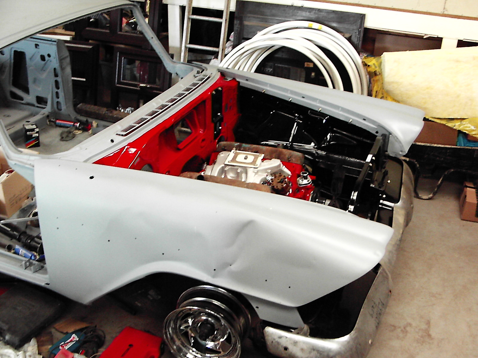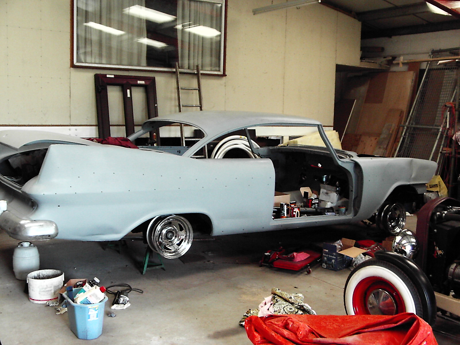 All the interior has been reupholstered and put into storage until it can be installed. As you can see my wife Lisa and I have a lot of work to do but it will be well worth it when it’s done. There are a few parts missing which will be difficult to find but with help from you and other enthusiasts I’m sure I will find them."