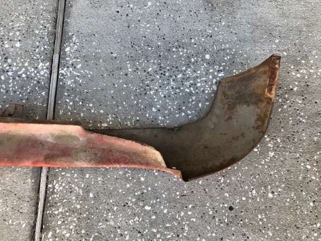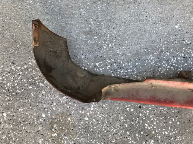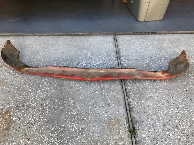 There is definitely enough left of that valance to work with. Much better shape then some of them out there. Being that low they tend to always be dented / Smashed. Wonder what the story is on it being red? From a donor car maybe? I believe they were all argent silver from factory… either way with a little hammer and patch work I’m sure it can be saved. Also, fully agree on your taste in color!