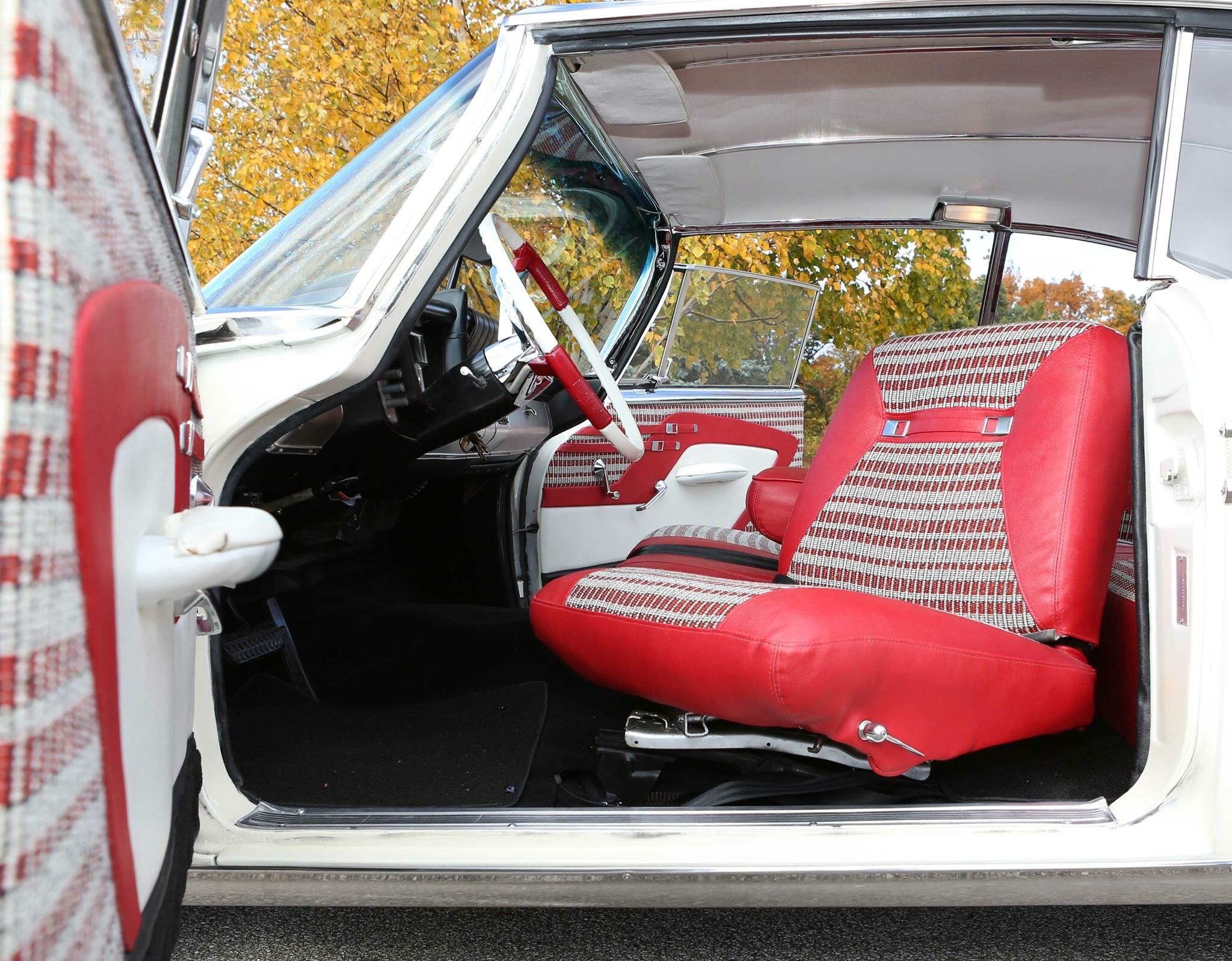 It’s powered by a Golden Commando 395, “B” block V-8 at 361 cubic inches and includes a rare dual 4-barrel carburetor system, with a high performance camshaft and intake manifold. For 1959 this slightly larger bore engine was rated at 305hp at 4600rpm, doing 0-60mph in just 8 seconds. A 10:1 compression ratio creates 395lb-ft of torque at 3000rpm, hence the nickname “395”.