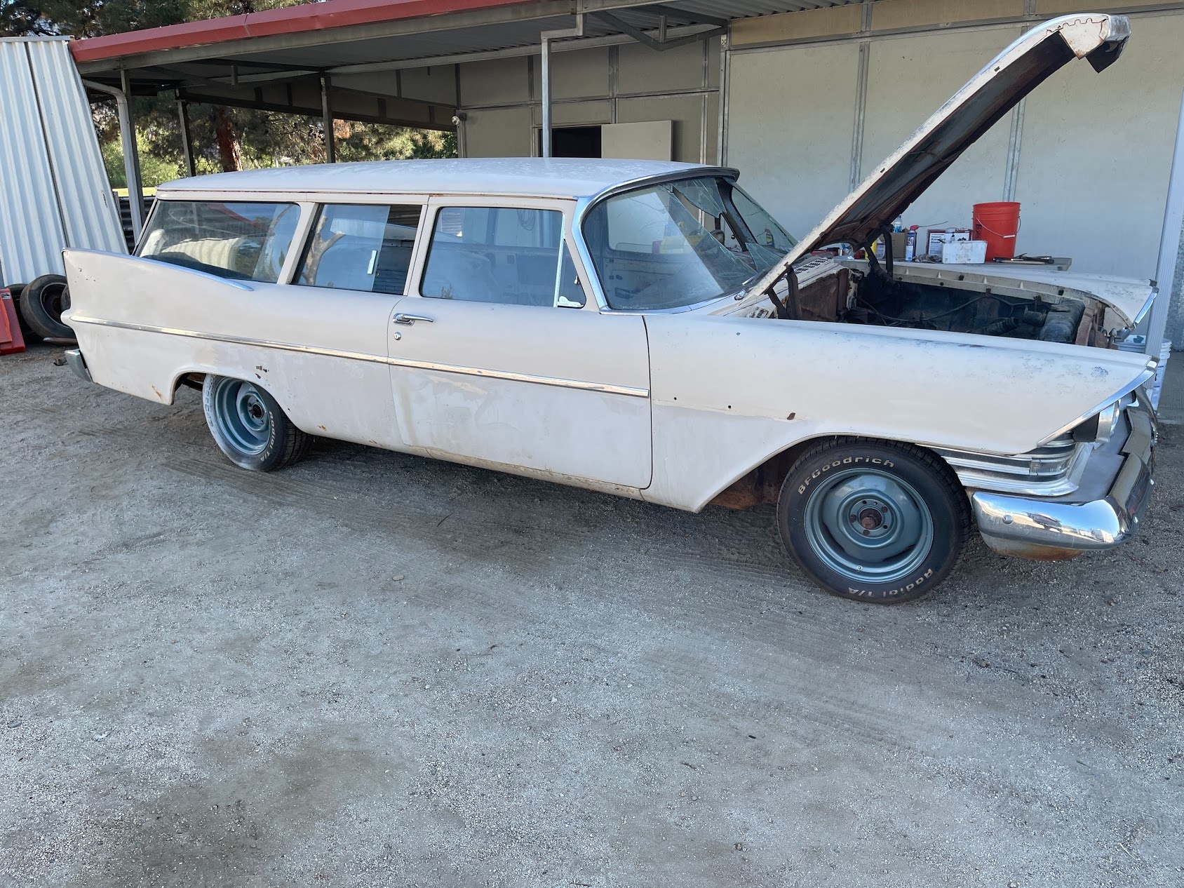 Hey, thanks for letting me join! Just picked up a 59 2 door wagon, shes a bit of a basket case been sitting since about 1981 and has spent its whole life in Fresno ca until now, needs a bunch of work think the 230 has a broken rod on #4 and sat in mud for most of that time so the floors are gone but the body and frame are just about immaculate. Still has most of her original paint. Just going to clean it up, get it running and enjoy it, keep it simple no need for crazy restoration.
