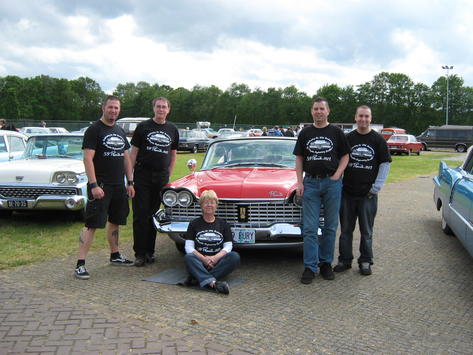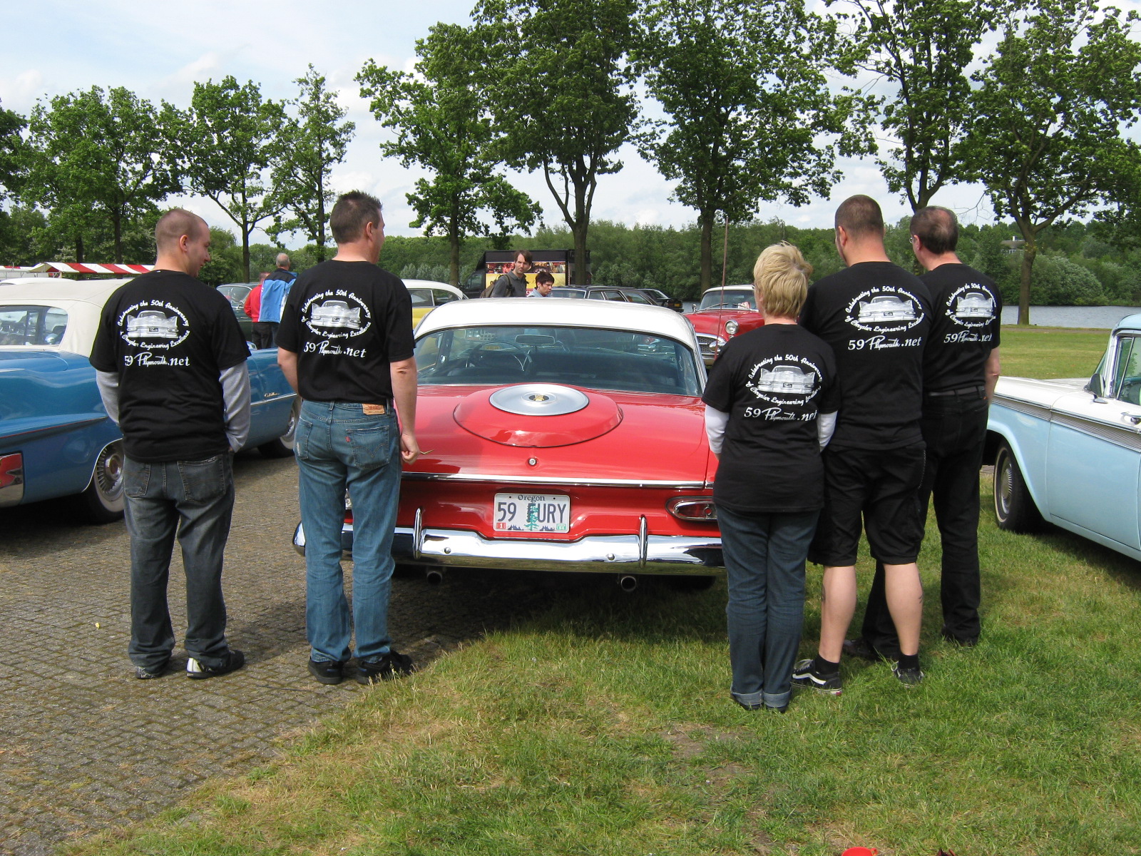 Dan has left Barcelona and he is here right now. We went to the Jukebix Fair/car show today and had a great time! Here are some pictures that show my car and the 50th anniversary T-shirt: